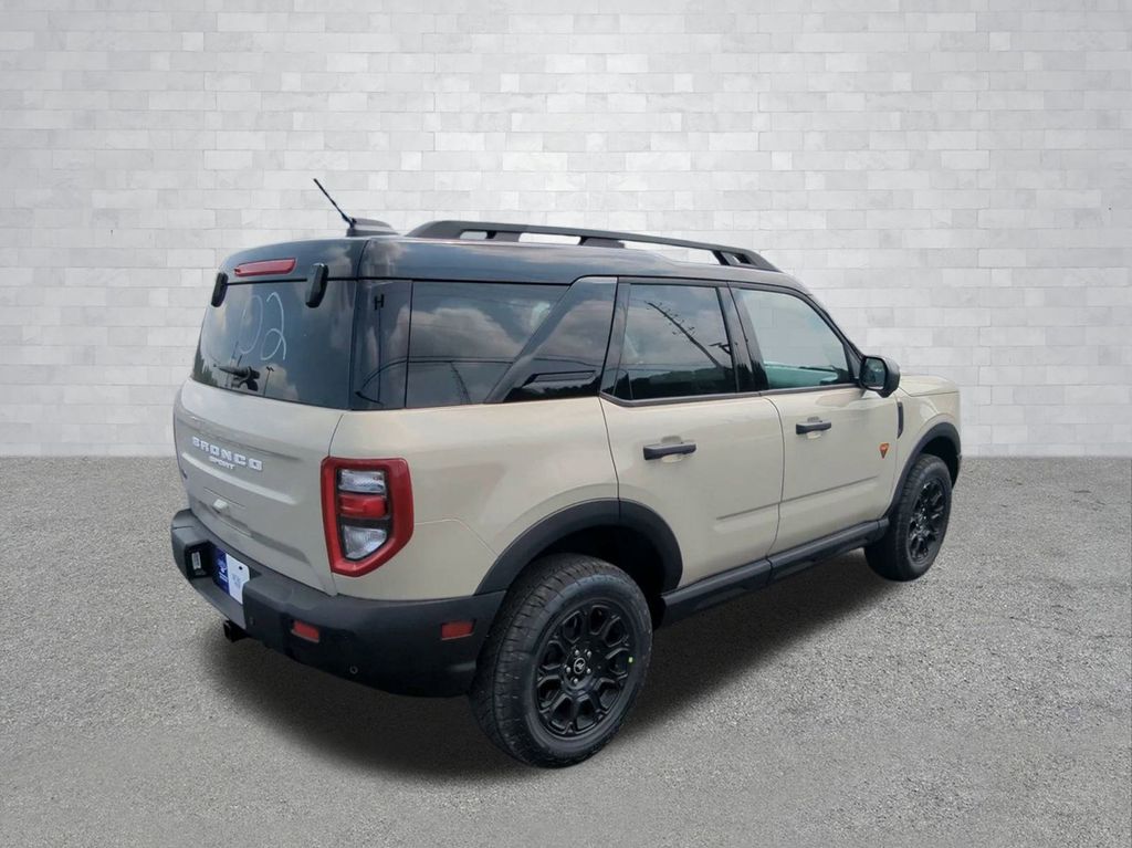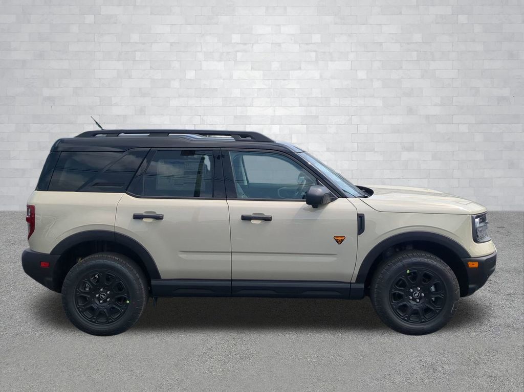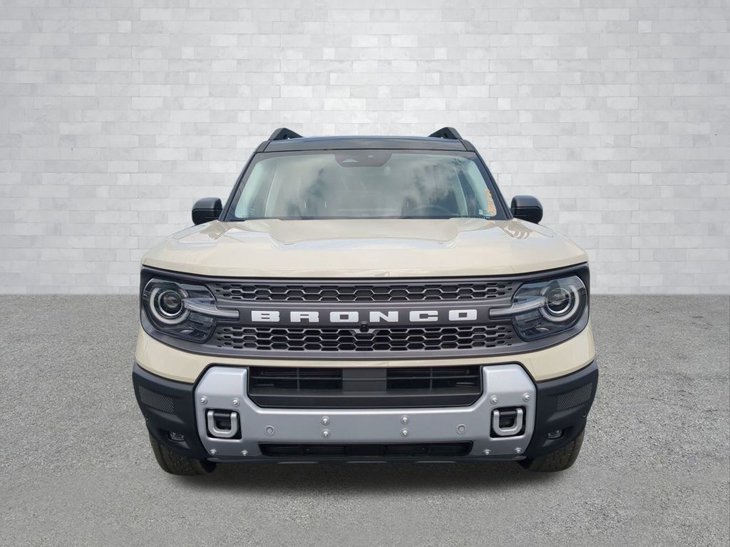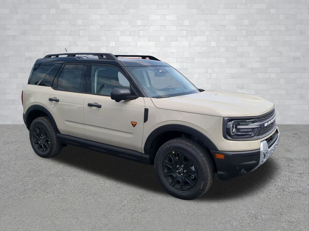 2025 Desert Sand 2025 Ford Bronco Sport Badlands 4WD EcoBoost 2.0L I4 GTDi DOHC Turbocharged VCT 13.2" LCD Centerstack Touchscreen, Auto LED Headlights, Backup Camera, Premium Sound Package, 4D Sport Utility, EcoBoost 2.0L I4 GTDi DOHC Turbocharged VCT, 8-Speed Automatic, 4WD, B&O Sound System by Bang & Olufsen, Badlands Tech Package, Connected Navigation, Equipment Group 400A, HD Radio. Badlands Tech Package (B&O Sound System by Bang & Olufsen, Connected Navigation, and HD Radio), Equipment Group 400A, 4D Sport Utility, EcoBoost 2.0L I4 GTDi DOHC Turbocharged VCT, 8-Speed Automatic, 4WD, 4-Wheel Disc Brakes, 6 Speakers, ABS brakes, Air Conditioning, Alloy wheels, AM/FM radio: SiriusXM, AM/FM Stereo, Auto High-beam Headlights, Auto-dimming Rear-View mirror, Automatic temperature control, Brake assist, Compass, Delay-off headlights, Driver door bin, Driver vanity mirror, Dual front impact airbags, Dual front side impact airbags, Electronic Stability Control, Emergency communication system: SYNC 4 911 Assist, Four wheel independent suspension, Front anti-roll bar, Front Bucket Seats, Front Center Armrest, Front fog lights, Front reading lights, Fully automatic headlights, Garage door transmitter, Heated door mirrors, Heated front seats, Heated steering wheel, Illuminated entry, Knee airbag, Leather Trimmed Front Bucket Seats, Low tire pressure warning, Memory seat, Occupant sensing airbag, Outside temperature display, Overhead airbag, Overhead console, Panic alarm, Passenger door bin, Passenger vanity mirror, Power door mirrors, Power driver seat, Power passenger seat, Power steering, Power windows, Radio data system, Rear anti-roll bar, Rear reading lights, Rear seat center armrest, Rear window defroster, Rear window wiper, Remote keyless entry, Security system, SiriusXM, Speed control, Speed-sensing steering, Speed-Sensitive Wipers, Split folding rear seat, Steering wheel mounted audio controls, SYNC 4 w/Enhanced Voice Recognition, Tachometer, Telescoping steering wheel, Tilt steering wheel, Traction control, Trip computer, Variably intermittent wipers, and Wheels: 17" Matte Black-Painted Aluminum Courtesy Ford and Lincoln of Rome 101 Hwy 411 E Rome, Ga 30161 ROMEFORDLINC.COM 706.235.4453.