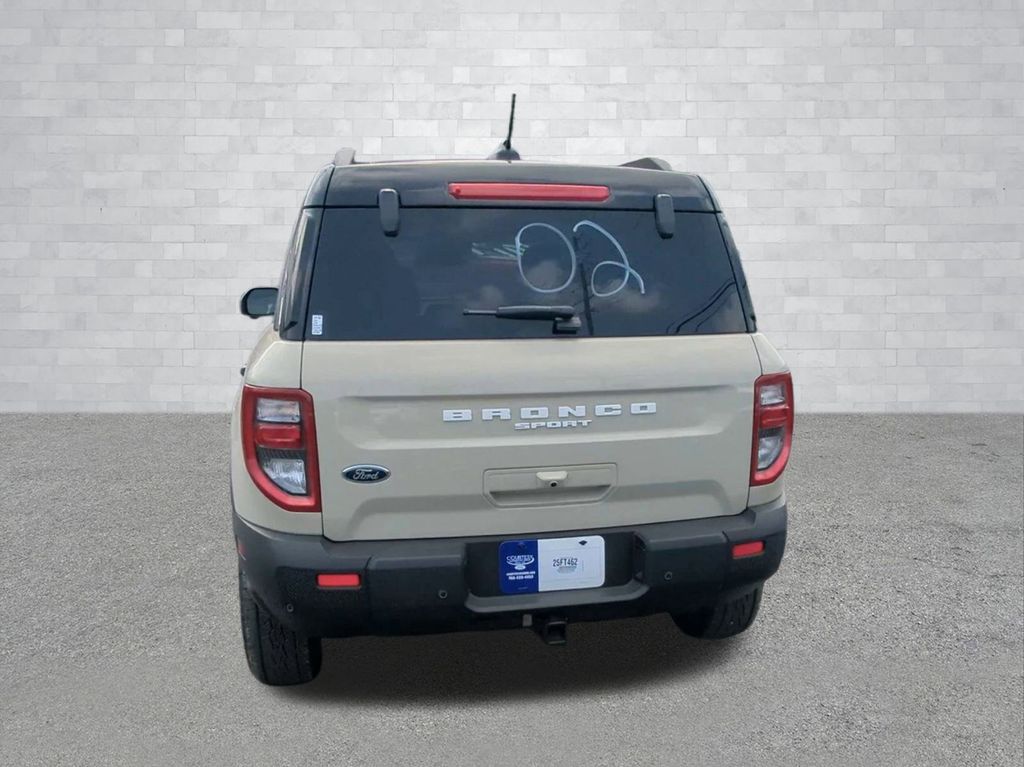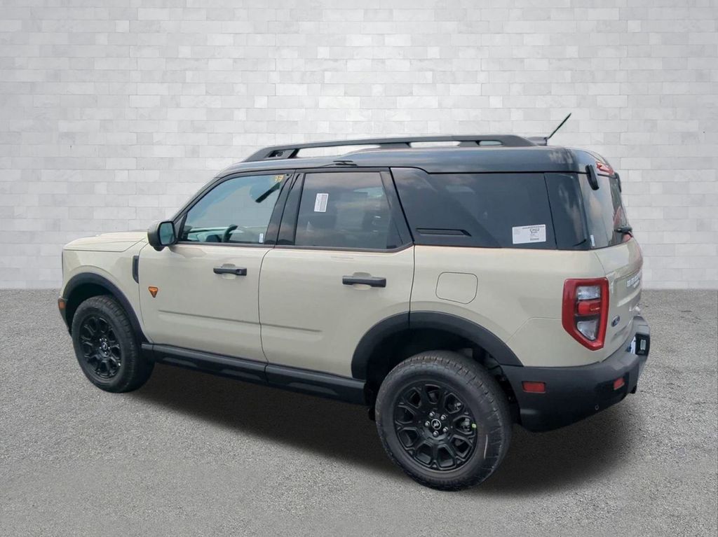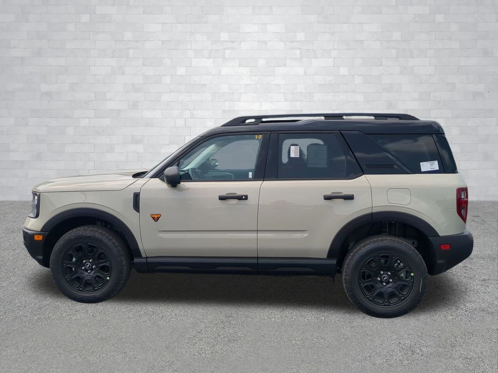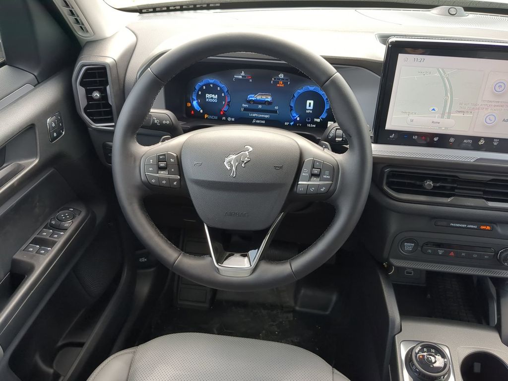 2025 Desert Sand 2025 Ford Bronco Sport Badlands 4WD EcoBoost 2.0L I4 GTDi DOHC Turbocharged VCT 13.2" LCD Centerstack Touchscreen, Auto LED Headlights, Backup Camera, Premium Sound Package, 4D Sport Utility, EcoBoost 2.0L I4 GTDi DOHC Turbocharged VCT, 8-Speed Automatic, 4WD, B&O Sound System by Bang & Olufsen, Badlands Tech Package, Connected Navigation, Equipment Group 400A, HD Radio. Badlands Tech Package (B&O Sound System by Bang & Olufsen, Connected Navigation, and HD Radio), Equipment Group 400A, 4D Sport Utility, EcoBoost 2.0L I4 GTDi DOHC Turbocharged VCT, 8-Speed Automatic, 4WD, 4-Wheel Disc Brakes, 6 Speakers, ABS brakes, Air Conditioning, Alloy wheels, AM/FM radio: SiriusXM, AM/FM Stereo, Auto High-beam Headlights, Auto-dimming Rear-View mirror, Automatic temperature control, Brake assist, Compass, Delay-off headlights, Driver door bin, Driver vanity mirror, Dual front impact airbags, Dual front side impact airbags, Electronic Stability Control, Emergency communication system: SYNC 4 911 Assist, Four wheel independent suspension, Front anti-roll bar, Front Bucket Seats, Front Center Armrest, Front fog lights, Front reading lights, Fully automatic headlights, Garage door transmitter, Heated door mirrors, Heated front seats, Heated steering wheel, Illuminated entry, Knee airbag, Leather Trimmed Front Bucket Seats, Low tire pressure warning, Memory seat, Occupant sensing airbag, Outside temperature display, Overhead airbag, Overhead console, Panic alarm, Passenger door bin, Passenger vanity mirror, Power door mirrors, Power driver seat, Power passenger seat, Power steering, Power windows, Radio data system, Rear anti-roll bar, Rear reading lights, Rear seat center armrest, Rear window defroster, Rear window wiper, Remote keyless entry, Security system, SiriusXM, Speed control, Speed-sensing steering, Speed-Sensitive Wipers, Split folding rear seat, Steering wheel mounted audio controls, SYNC 4 w/Enhanced Voice Recognition, Tachometer, Telescoping steering wheel, Tilt steering wheel, Traction control, Trip computer, Variably intermittent wipers, and Wheels: 17" Matte Black-Painted Aluminum Courtesy Ford and Lincoln of Rome 101 Hwy 411 E Rome, Ga 30161 ROMEFORDLINC.COM 706.235.4453.
