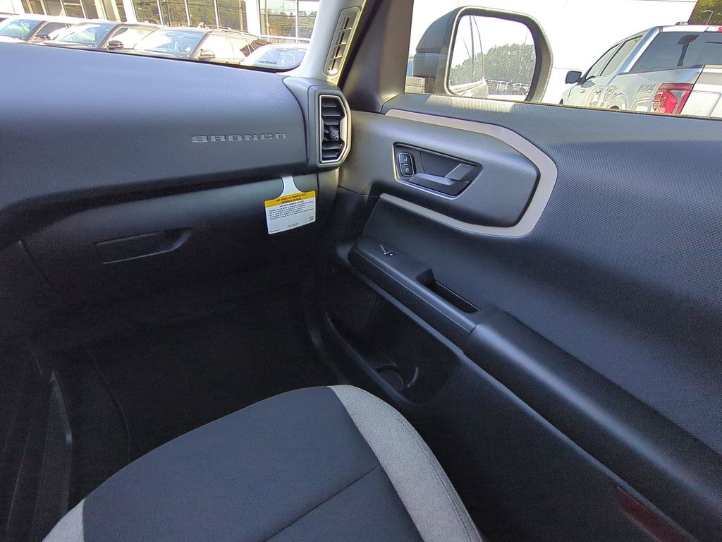 2025 Shadow Black 2025 Ford Bronco Sport Big Bend 4WD 1.5L EcoBoost Equipment Group 200A, 4-Wheel Disc Brakes, 6 Speakers, ABS brakes, Air Conditioning, Alloy wheels, AM/FM radio: SiriusXM, AM/FM Stereo, Auto High-beam Headlights, Automatic temperature control, Brake assist, Cloth w/Easy-to-Clean Front Bucket Seats, Compass, Delay-off headlights, Driver door bin, Driver vanity mirror, Dual front impact airbags, Dual front side impact airbags, Electronic Stability Control, Emergency communication system: SYNC 4 911 Assist, Four wheel independent suspension, Front anti-roll bar, Front Bucket Seats, Front Center Armrest, Front reading lights, Fully automatic headlights, Heated door mirrors, Illuminated entry, Knee airbag, Low tire pressure warning, Occupant sensing airbag, Outside temperature display, Overhead airbag, Overhead console, Panic alarm, Passenger door bin, Passenger vanity mirror, Power door mirrors, Power steering, Power windows, Radio data system, Rear anti-roll bar, Rear Parking Sensors, Rear reading lights, Rear seat center armrest, Rear window defroster, Rear window wiper, Remote keyless entry, Security system, SiriusXM, Speed control, Speed-sensing steering, Speed-Sensitive Wipers, Split folding rear seat, Steering wheel mounted audio controls, SYNC 4 w/Enhanced Voice Recognition, Tachometer, Telescoping steering wheel, Tilt steering wheel, Traction control, Trip computer, Variably intermittent wipers, and Wheels: 17" Carbonized Gray-Painted Aluminum Courtesy Ford and Lincoln of Rome 101 Hwy 411 E Rome, Ga 30161 ROMEFORDLINC.COM 706.235.4453.