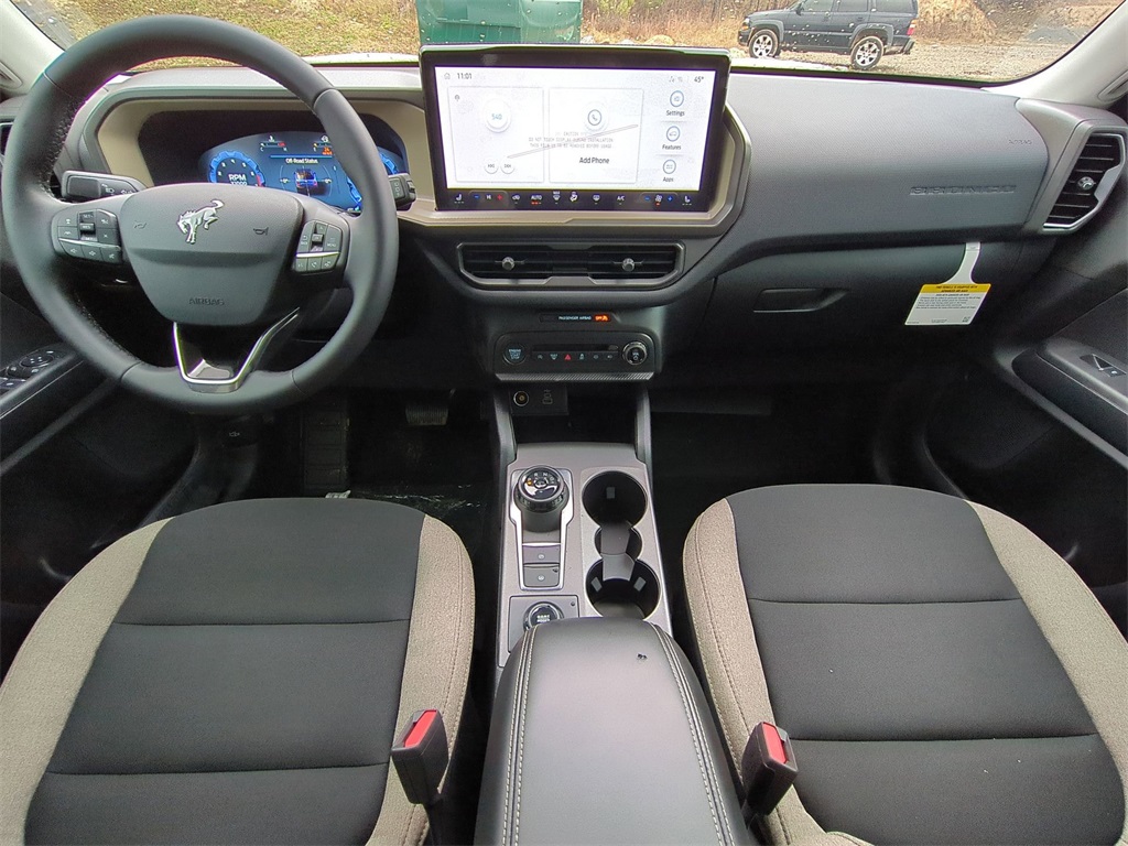 2025 Desert Sand 2025 Ford Bronco Sport Big Bend 4WD 1.5L EcoBoost 13.2" LCD Centerstack Touchscreen, Auto LED Headlights, Backup Camera, LED Foglights, Off Road Package, 4D Sport Utility, 1.5L EcoBoost, 8-Speed Automatic, 4WD, Convenience Package, Equipment Group 200A, Front Driver/Passenger Seat Back Map Pockets, Heated 8-Way Power Driver's Seat, LED Fog Lamps, Premium Wrapped Steering Wheel, Universal Garage Door Opener (UGDO). Convenience Package (Front Driver/Passenger Seat Back Map Pockets, Heated 8-Way Power Driver's Seat, LED Fog Lamps, Premium Wrapped Steering Wheel, and Universal Garage Door Opener (UGDO)), Equipment Group 200A, 4D Sport Utility, 1.5L EcoBoost, 8-Speed Automatic, 4WD, 4-Wheel Disc Brakes, 6 Speakers, ABS brakes, Air Conditioning, Alloy wheels, AM/FM radio: SiriusXM, AM/FM Stereo, Auto High-beam Headlights, Automatic temperature control, Brake assist, Cloth w/Easy-to-Clean Front Bucket Seats, Compass, Delay-off headlights, Driver door bin, Driver vanity mirror, Dual front impact airbags, Dual front side impact airbags, Electronic Stability Control, Emergency communication system: SYNC 4 911 Assist, Four wheel independent suspension, Front anti-roll bar, Front Bucket Seats, Front Center Armrest, Front reading lights, Fully automatic headlights, Heated door mirrors, Illuminated entry, Knee airbag, Low tire pressure warning, Occupant sensing airbag, Outside temperature display, Overhead airbag, Overhead console, Panic alarm, Passenger door bin, Passenger vanity mirror, Power door mirrors, Power steering, Power windows, Radio data system, Rear anti-roll bar, Rear Parking Sensors, Rear reading lights, Rear seat center armrest, Rear window defroster, Rear window wiper, Remote keyless entry, Security system, SiriusXM, Speed control, Speed-sensing steering, Speed-Sensitive Wipers, Split folding rear seat, Steering wheel mounted audio controls, SYNC 4 w/Enhanced Voice Recognition, Tachometer, Telescoping steering wheel, Tilt steering wheel, Traction control, Trip computer, Variably intermittent wipers, and Wheels: 17" Carbonized Gray-Painted Aluminum Courtesy Ford and Lincoln of Rome 101 Hwy 411 E Rome, Ga 30161 ROMEFORDLINC.COM 706.235.4453.