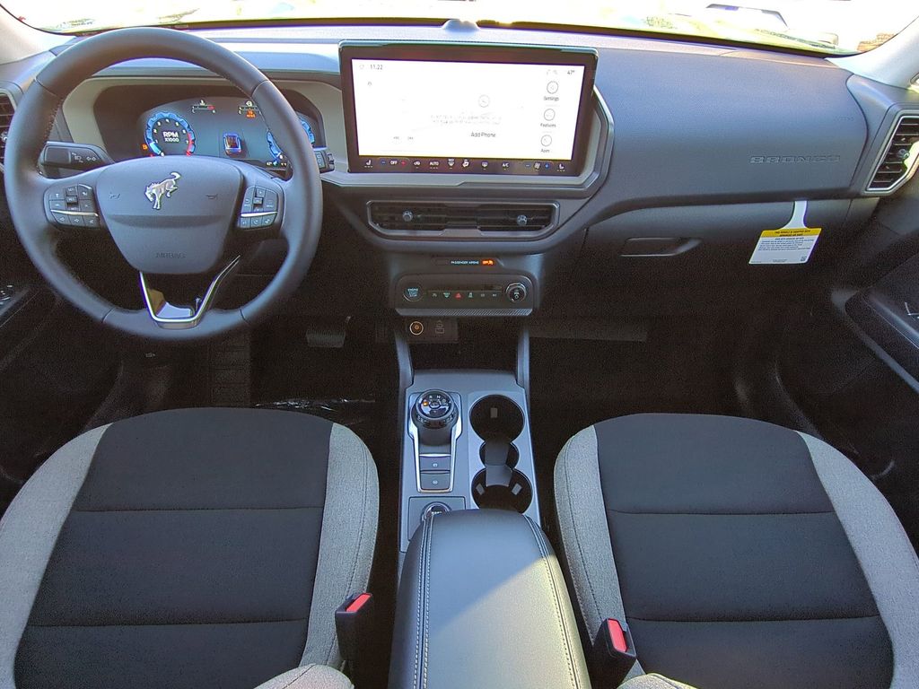 2025 Eruption Green Metallic 2025 Ford Bronco Sport Big Bend 4WD 1.5L EcoBoost 13.2" LCD Centerstack Touchscreen, Auto LED Headlights, Backup Camera, LED Foglights, Off Road Package, 4D Sport Utility, 1.5L EcoBoost, 8-Speed Automatic, 4WD, Convenience Package, Equipment Group 200A, Front Driver/Passenger Seat Back Map Pockets, Heated 8-Way Power Driver's Seat, LED Fog Lamps, Premium Wrapped Steering Wheel, Universal Garage Door Opener (UGDO). Convenience Package (Front Driver/Passenger Seat Back Map Pockets, Heated 8-Way Power Driver's Seat, LED Fog Lamps, Premium Wrapped Steering Wheel, and Universal Garage Door Opener (UGDO)), Equipment Group 200A, 4D Sport Utility, 1.5L EcoBoost, 8-Speed Automatic, 4WD, 4-Wheel Disc Brakes, 6 Speakers, ABS brakes, Air Conditioning, Alloy wheels, AM/FM radio: SiriusXM, AM/FM Stereo, Auto High-beam Headlights, Automatic temperature control, Brake assist, Cloth w/Easy-to-Clean Front Bucket Seats, Compass, Delay-off headlights, Driver door bin, Driver vanity mirror, Dual front impact airbags, Dual front side impact airbags, Electronic Stability Control, Emergency communication system: SYNC 4 911 Assist, Four wheel independent suspension, Front anti-roll bar, Front Bucket Seats, Front Center Armrest, Front reading lights, Fully automatic headlights, Heated door mirrors, Illuminated entry, Knee airbag, Low tire pressure warning, Occupant sensing airbag, Outside temperature display, Overhead airbag, Overhead console, Panic alarm, Passenger door bin, Passenger vanity mirror, Power door mirrors, Power steering, Power windows, Radio data system, Rear anti-roll bar, Rear Parking Sensors, Rear reading lights, Rear seat center armrest, Rear window defroster, Rear window wiper, Remote keyless entry, Security system, SiriusXM, Speed control, Speed-sensing steering, Speed-Sensitive Wipers, Split folding rear seat, Steering wheel mounted audio controls, SYNC 4 w/Enhanced Voice Recognition, Tachometer, Telescoping steering wheel, Tilt steering wheel, Traction control, Trip computer, Variably intermittent wipers, and Wheels: 17" Carbonized Gray-Painted Aluminum Courtesy Ford and Lincoln of Rome 101 Hwy 411 E Rome, Ga 30161 ROMEFORDLINC.COM 706.235.4453.