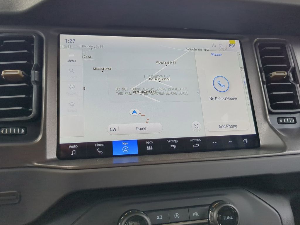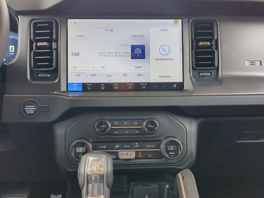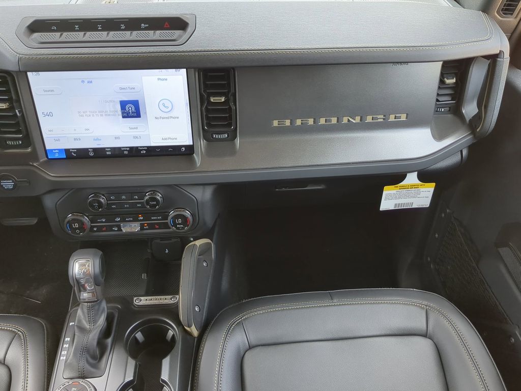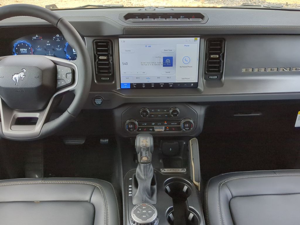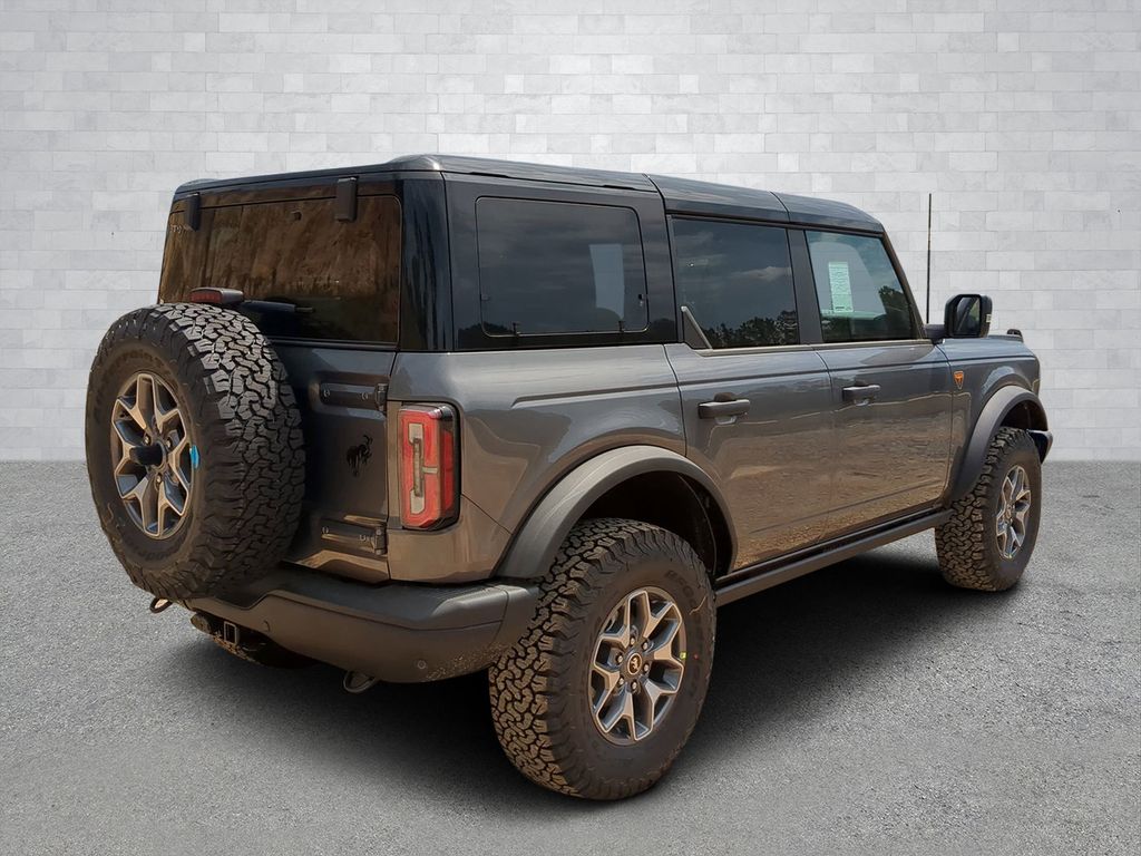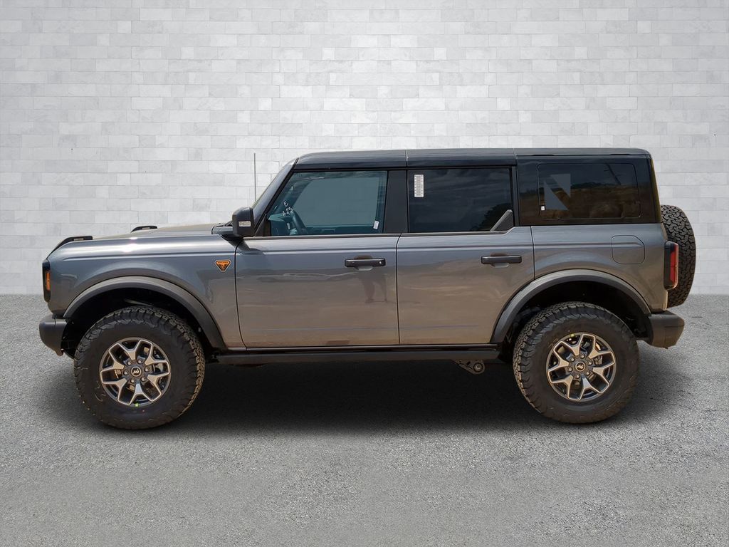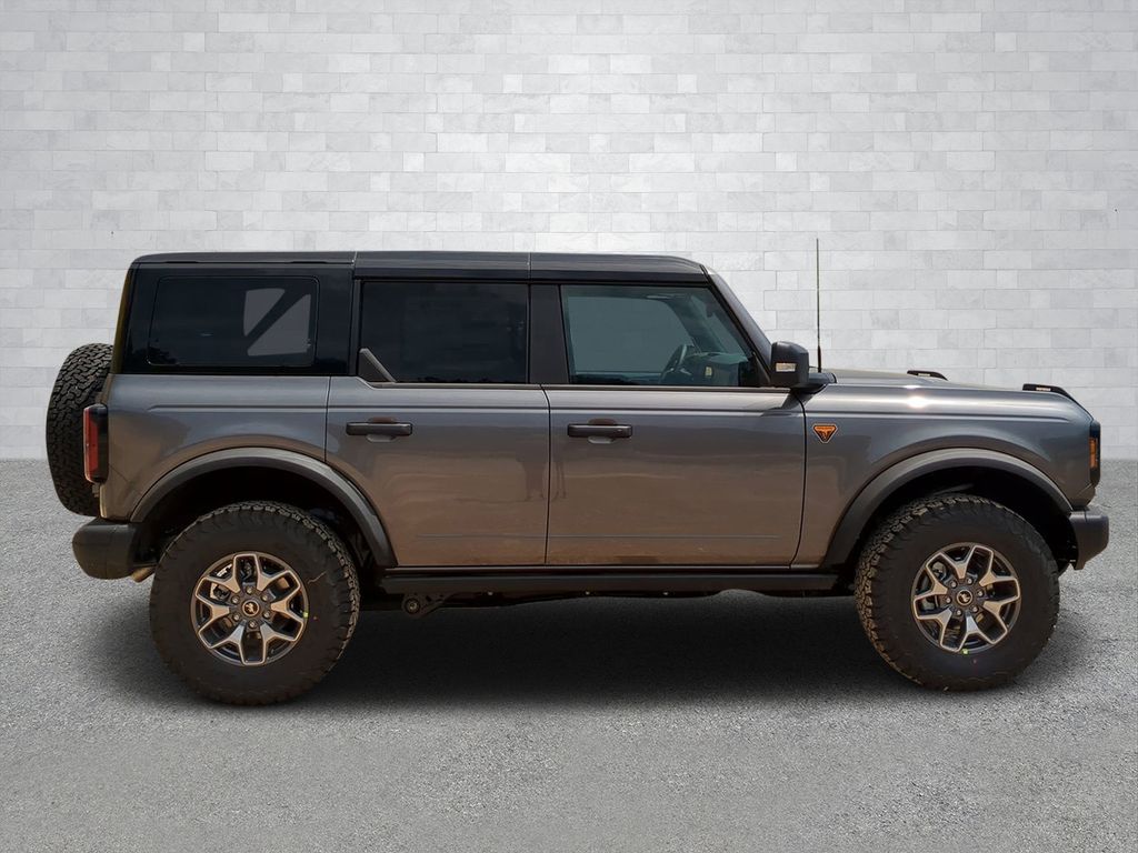 2025 Gray Metallic 2025 Ford Bronco Badlands 4WD 2.7L EcoBoost V6 12" LCD Productivity Touchscreen, 360-Degree Camera, Adaptive Cruise Control, Auto Emergency Braking, Auto LED Headlights, Backup Camera, Leather Seats, Luxury Package, Power Mirror Package, Power Package, Push Button Start, Remote Start, 4D Sport Utility, 2.7L EcoBoost V6, 10-Speed Automatic, 4WD, 360-Degree Camera, Adaptive Cruise Control, Black Appearance Package, Black Molded-In-Color Door Handles, Black Molded-In-Color Fender Flares, Black Molded-In-Color Sideview Mirror Caps, Black-Painted Molded-In-Color Grille, Equipment Group 334A Lux Package, Evasive Steering Assist, Front Parking Sensors, Information on Demand Panel, Radio: B&O Sound System by Bang & Olufsen, Sideview Mirrors, Trailer Tow Package (DIO), Universal Garage Door Opener. Black Appearance Package (Black Molded-In-Color Door Handles, Black Molded-In-Color Fender Flares, Black Molded-In-Color Sideview Mirror Caps, and Black-Painted Molded-In-Color Grille), Equipment Group 334A Lux Package (360-Degree Camera, Adaptive Cruise Control, Evasive Steering Assist, Front Parking Sensors, Information on Demand Panel, Radio: B&O Sound System by Bang & Olufsen, Sideview Mirrors, Universal Garage Door Opener, and Connected Navigation), Trailer Tow Package (DIO), 4D Sport Utility, 2.7L EcoBoost V6, 10-Speed Automatic, 4WD, 4-Wheel Disc Brakes, 4.7 Axle Ratio, 7 Speakers, ABS brakes, Air Conditioning, Alloy wheels, AM/FM radio: SiriusXM with 360L, AM/FM Stereo, Auto High-beam Headlights, Auto-dimming Rear-View mirror, Brake assist, Compass, Delay-off headlights, Driver door bin, Driver vanity mirror, Dual front impact airbags, Dual front side impact airbags, Electronic Stability Control, Emergency communication system: 911 Assist, Exterior Parking Camera Rear, Front anti-roll bar, Front Bucket Seats, Front Center Armrest, Front reading lights, Front wheel independent suspension, Fully automatic headlights, Heated door mirrors, Heated front seats, Heated steering wheel, Illuminated entry, Integrated roll-over protection, Leather Shift Knob, Low tire pressure warning, Marine Grade Vinyl Heated Bucket Seats, Occupant sensing airbag, Outside temperature display, Overhead airbag, Overhead console, Panic alarm, Passenger door bin, Passenger vanity mirror, Power door mirrors, Power steering, Power windows, Radio data system, Remote keyless entry, Security system, SiriusXM w/360L, Speed control, Split folding rear seat, Steering wheel mounted audio controls, SYNC 4, Tachometer, Telescoping steering wheel, Tilt steering wheel, Traction control, Trip computer, Variably intermittent wipers, and Voltmeter Courtesy Ford and Lincoln of Rome 101 Hwy 411 E Rome, Ga 30161 ROMEFORDLINC.COM 706.235.4453.