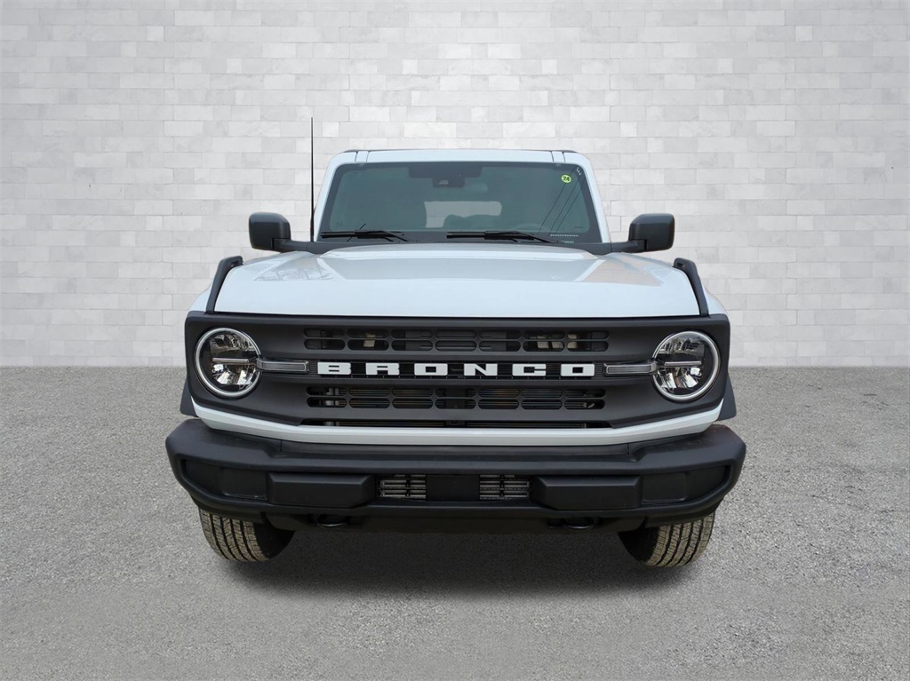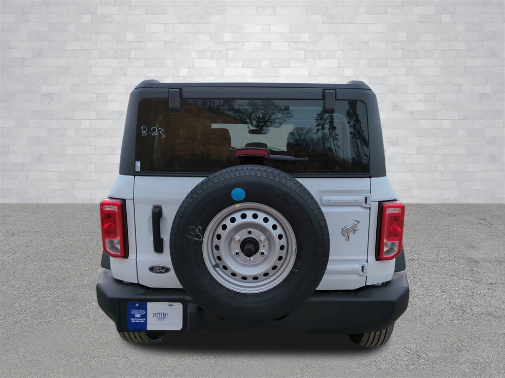 2025 Oxford White 2025 Ford Bronco Base 4WD 2.3L EcoBoost I-4 4-Wheel Disc Brakes, 4.46 Axle Ratio, 7 Speakers, ABS brakes, Air Conditioning, AM/FM radio: SiriusXM with 360L, AM/FM Stereo, Auto High-beam Headlights, Brake assist, Cloth Bucket Seats, Compass, Delay-off headlights, Driver door bin, Driver vanity mirror, Dual front impact airbags, Dual front side impact airbags, Electronic Stability Control, Emergency communication system: 911 Assist, Exterior Parking Camera Rear, Front anti-roll bar, Front Bucket Seats, Front Center Armrest, Front reading lights, Front wheel independent suspension, Fully automatic headlights, Heated door mirrors, Illuminated entry, Integrated roll-over protection, Internet access capable: FordPass Connect, Low tire pressure warning, Occupant sensing airbag, Outside temperature display, Overhead airbag, Overhead console, Panic alarm, Passenger door bin, Passenger vanity mirror, Power door mirrors, Power steering, Power windows, Radio data system, Remote keyless entry, Security system, SiriusXM w/360L, Speed control, Split folding rear seat, Steering wheel mounted audio controls, SYNC 4, Tachometer, Telescoping steering wheel, Tilt steering wheel, Traction control, Trip computer, Variably intermittent wipers, and Wheels: 16" Bright Polished Silver-Painted Steel Courtesy Ford and Lincoln of Rome 101 Hwy 411 E Rome, Ga 30161 ROMEFORDLINC.COM 706.235.4453.