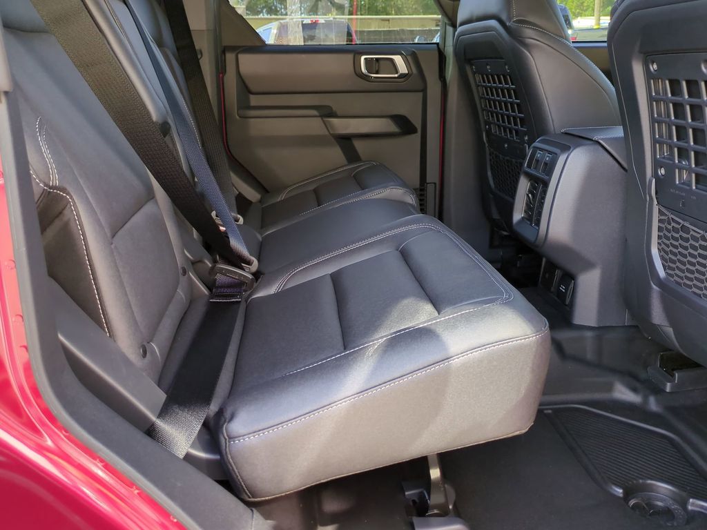 2025 Ruby Red Metallic Tinted Clearcoat 2025 Ford Bronco Big Bend 4WD 2.3L EcoBoost I-4 12" LCD Productivity Touchscreen, Auto Emergency Braking, Auto LED Headlights, Backup Camera, Pre Collision Assist w/ AEB, Push Button Start, Remote Start, Bronco Big Bend, 4D Sport Utility, 4WD, Carbonized Gray Molded-In-Color Hard Top, Equipment Group 222A Mid Package, Hard Top Sound Deadening Headliner, Rear-Window Defroster & Washer. Equipment Group 222A Mid Package (Connected Navigation), Bronco Big Bend, 4D Sport Utility, 4WD, Carbonized Gray Molded-In-Color Hard Top, Hard Top Sound Deadening Headliner, Rear-Window Defroster & Washer, 4-Wheel Disc Brakes, 4.46 Axle Ratio, 7 Speakers, ABS brakes, Air Conditioning, Alloy wheels, AM/FM radio: SiriusXM with 360L, AM/FM Stereo, Auto High-beam Headlights, Brake assist, Cloth Bucket Seats, Compass, Delay-off headlights, Driver door bin, Driver vanity mirror, Dual front impact airbags, Dual front side impact airbags, Electronic Stability Control, Emergency communication system: 911 Assist, Exterior Parking Camera Rear, Front anti-roll bar, Front Bucket Seats, Front Center Armrest, Front reading lights, Front wheel independent suspension, Fully automatic headlights, Heated door mirrors, Illuminated entry, Integrated roll-over protection, Leather Shift Knob, Low tire pressure warning, Occupant sensing airbag, Outside temperature display, Overhead airbag, Overhead console, Panic alarm, Passenger door bin, Passenger vanity mirror, Power door mirrors, Power steering, Power windows, Radio data system, Remote keyless entry, Security system, SiriusXM w/360L, Speed control, Split folding rear seat, Steering wheel mounted audio controls, SYNC 4, Tachometer, Telescoping steering wheel, Tilt steering wheel, Traction control, Trip computer, Variably intermittent wipers, and Wheels: 17" Carbonized Gray-Painted Aluminum Courtesy Ford and Lincoln of Rome 101 Hwy 411 E Rome, Ga 30161 ROMEFORDLINC.COM 706.235.4453.