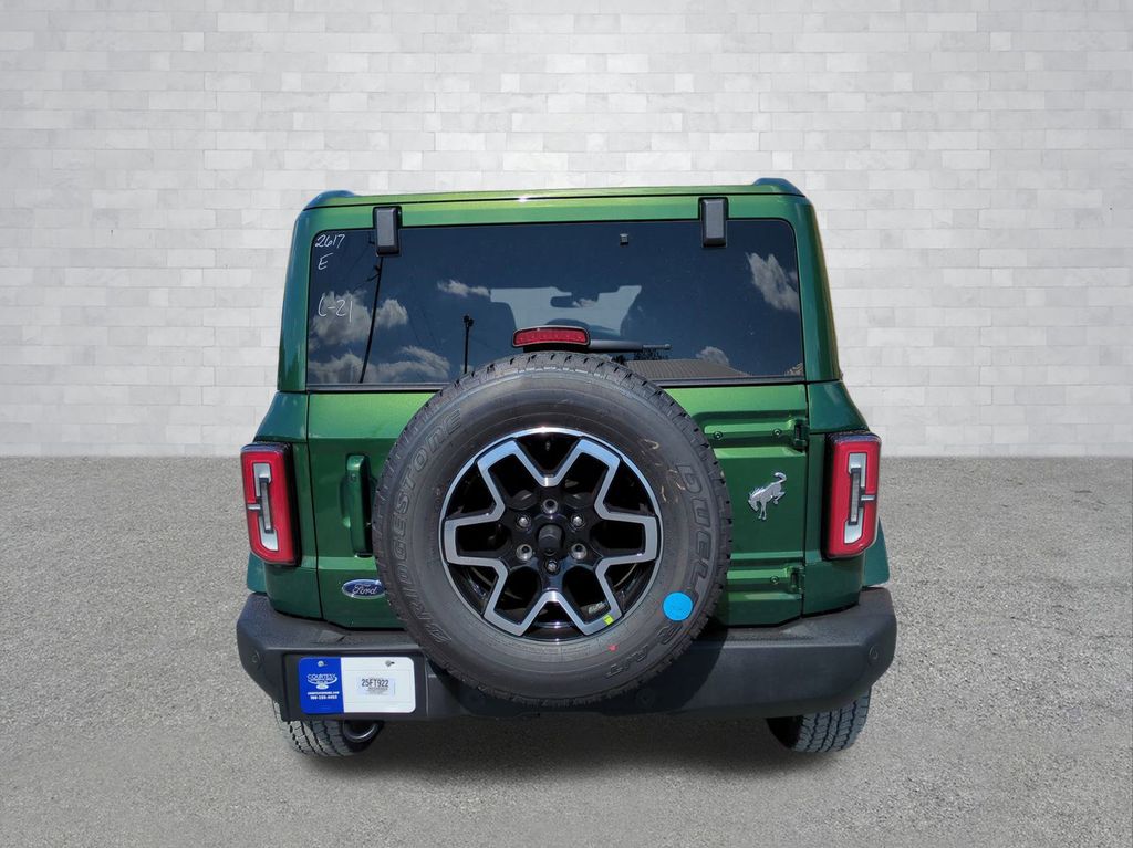 2025 Eruption Green Metallic 2025 Ford Bronco Outer Banks 4WD 2.7L EcoBoost V6 Equipment Group 314A Lux Package (360-Degree Camera, Adaptive Cruise Control, Evasive Steering Assist, Front Parking Sensors, Information on Demand Panel, Radio: B&O Sound System by Bang & Olufsen, Sideview Mirrors, and Universal Garage Door Opener), 18" Bright Machined Aluminum Wheels, 3.73 Axle Ratio, 4-Wheel Disc Brakes, 7 Speakers, ABS brakes, Air Conditioning, Alloy wheels, AM/FM radio: SiriusXM with 360L, AM/FM Stereo, Auto High-beam Headlights, Auto-dimming Rear-View mirror, Automatic temperature control, Brake assist, Compass, Connected Navigation, Delay-off headlights, Driver door bin, Driver vanity mirror, Dual front impact airbags, Dual front side impact airbags, Electronic Stability Control, Emergency communication system: 911 Assist, Exterior Parking Camera Rear, Front anti-roll bar, Front Bucket Seats, Front Center Armrest, Front dual zone A/C, Front fog lights, Front reading lights, Front wheel independent suspension, Fully automatic headlights, Hard Top Sound Deadening Headliner, Heated door mirrors, Heated front seats, Heated Leather-Trimmed/Vinyl Bucket Seats, Heated steering wheel, Illuminated entry, Integrated roll-over protection, Internet access capable: FordPass Connect, Leather Shift Knob, Low tire pressure warning, Navigation system: Connected Navigation, Occupant sensing airbag, Outside temperature display, Overhead airbag, Overhead console, Painted Hard Top, Panic alarm, Passenger door bin, Passenger vanity mirror, Power door mirrors, Power driver seat, Power passenger seat, Power steering, Power windows, Radio data system, Rear seat center armrest, Rear-Window Defroster & Washer, Remote keyless entry, Security system, SiriusXM w/360L, Speed control, Split folding rear seat, Steering wheel mounted audio controls, SYNC 4, Tachometer, Telescoping steering wheel, Tilt steering wheel, Traction control, Trip computer, Variably intermittent wipers, and Voltmeter Courtesy Ford and Lincoln of Rome 101 Hwy 411 E Rome, Ga 30161 ROMEFORDLINC.COM 706.235.4453.