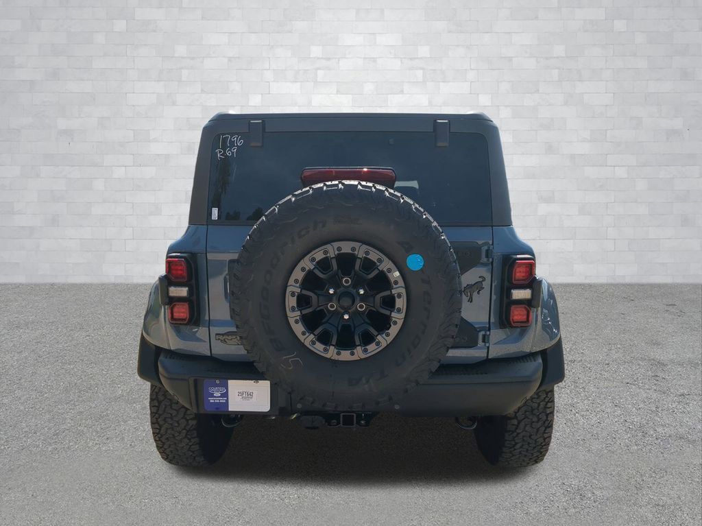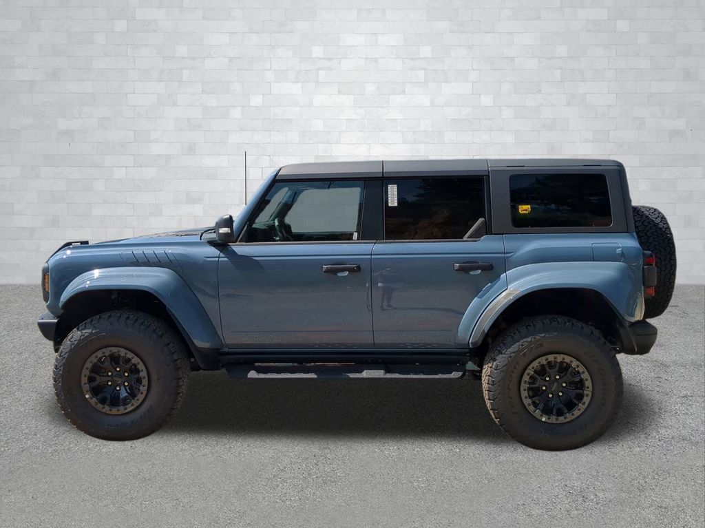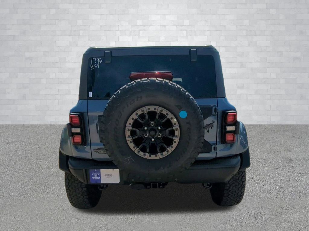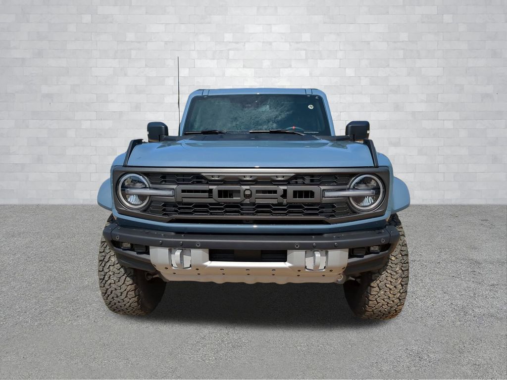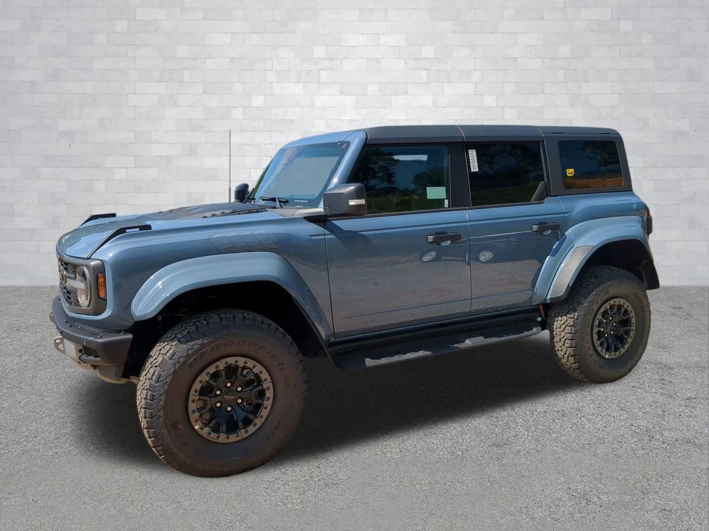 2025 Azure Gray Metallic Tri-Coat 2025 Ford Bronco Raptor 4WD 3.0L EcoBoost V6 12" LCD Productivity Touchscreen, 360-Degree Camera, Auto Emergency Braking, Auto LED Headlights, Backup Camera, Leather Seats, LED Foglights, Off Road Package, Pre Collision Assist w/ AEB, Skid Plate Package, 4D Sport Utility, 3.0L EcoBoost V6, 10-Speed Automatic, 4WD, Convertible HardTop, Equipment Group 374A Lux Package, Hard Top Sound Deadening Headliner, Navigation system: Connected Navigation, Wheels: 17" Black High Gloss-Painted Aluminum. Equipment Group 374A Lux Package, 4D Sport Utility, 3.0L EcoBoost V6, 10-Speed Automatic, 4WD, Convertible HardTop, Hard Top Sound Deadening Headliner, Navigation system: Connected Navigation, Wheels: 17" Black High Gloss-Painted Aluminum, 12 Speakers, 4-Wheel Disc Brakes, ABS brakes, Air Conditioning, Alloy wheels, AM/FM radio: SiriusXM with 360L, Auto High-beam Headlights, Auto-dimming Rear-View mirror, Automatic temperature control, Brake assist, Compass, Connected Navigation, Convertible roof lining, Delay-off headlights, Driver door bin, Driver vanity mirror, Dual front impact airbags, Dual front side impact airbags, Electronic Stability Control, Emergency communication system: 911 Assist, Exterior Parking Camera Rear, Front anti-roll bar, Front Bucket Seats, Front Center Armrest, Front dual zone A/C, Front fog lights, Front reading lights, Front wheel independent suspension, Fully automatic headlights, Garage door transmitter, Glass rear window, Heated door mirrors, Heated front seats, Heated steering wheel, Illuminated entry, Integrated roll-over protection, Leather Shift Knob, Low tire pressure warning, Marine Grade Vinyl Bucket Seats, Occupant sensing airbag, Outside temperature display, Overhead airbag, Overhead console, Panic alarm, Passenger door bin, Passenger vanity mirror, Power door mirrors, Power steering, Power windows, Radio data system, Radio: B&O Sound System by Bang & Olufsen, Rear anti-roll bar, Rear seat center armrest, Rear window defroster, Rear window wiper, Remote keyless entry, Security system, SiriusXM w/360L, Speed control, Split folding rear seat, Steering wheel mounted audio controls, SYNC 4, Tachometer, Telescoping steering wheel, Tilt steering wheel, Traction control, Trip computer, Turn signal indicator mirrors, Variably intermittent wipers, and Voltmeter Courtesy Ford and Lincoln of Rome 101 Hwy 411 E Rome, Ga 30161 ROMEFORDLINC.COM 706.235.4453.