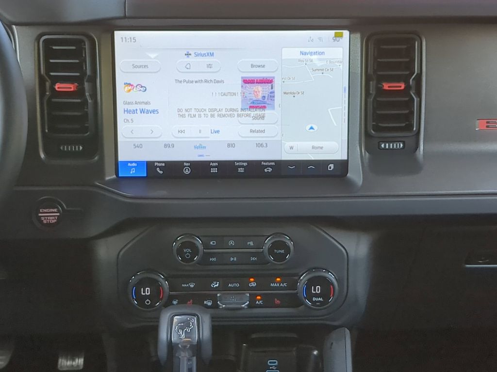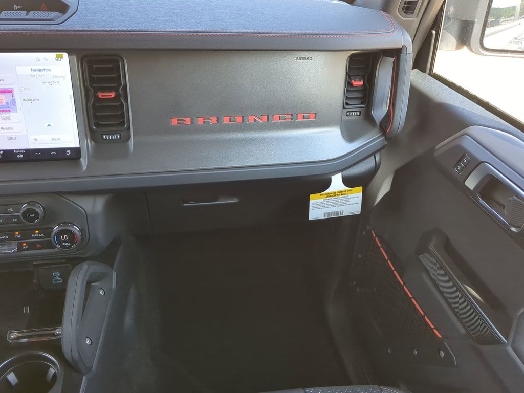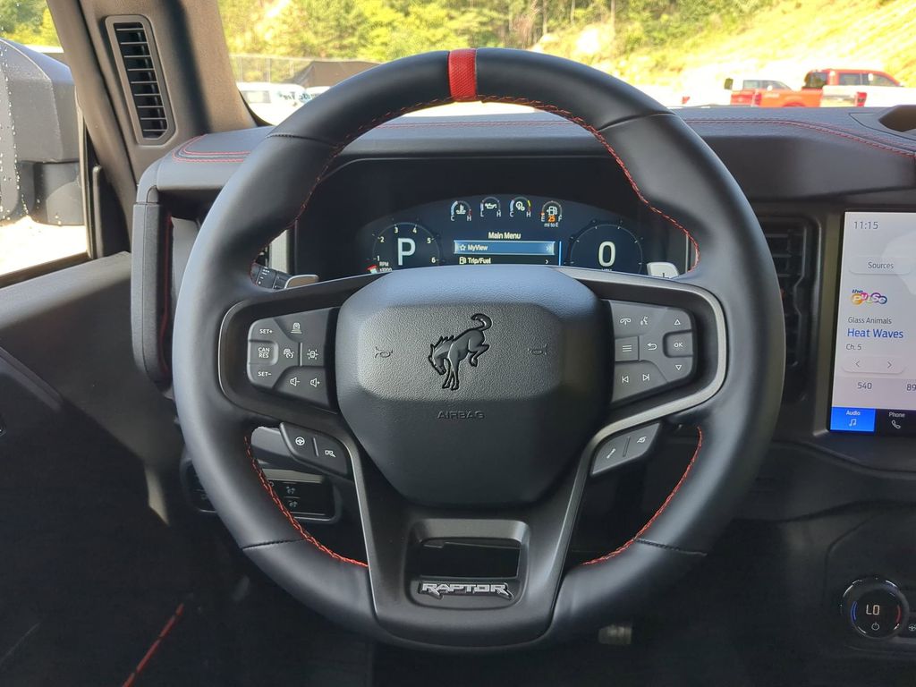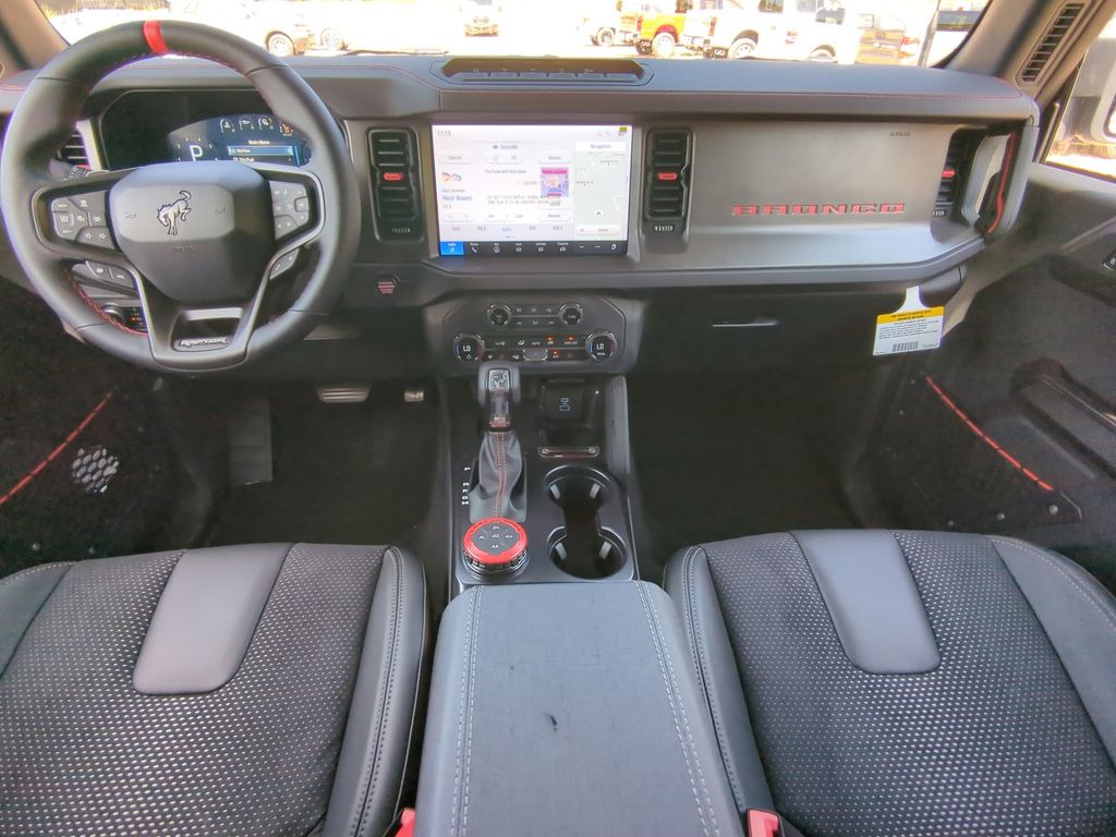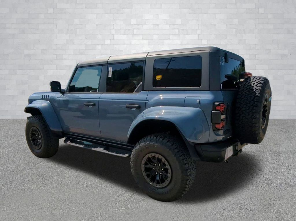 2025 Azure Gray Metallic Tri-Coat 2025 Ford Bronco Raptor 4WD 3.0L EcoBoost V6 12" LCD Productivity Touchscreen, 360-Degree Camera, Auto Emergency Braking, Auto LED Headlights, Backup Camera, Leather Seats, LED Foglights, Off Road Package, Pre Collision Assist w/ AEB, Skid Plate Package, 4D Sport Utility, 3.0L EcoBoost V6, 10-Speed Automatic, 4WD, Convertible HardTop, Equipment Group 374A Lux Package, Hard Top Sound Deadening Headliner, Navigation system: Connected Navigation, Wheels: 17" Black High Gloss-Painted Aluminum. Equipment Group 374A Lux Package, 4D Sport Utility, 3.0L EcoBoost V6, 10-Speed Automatic, 4WD, Convertible HardTop, Hard Top Sound Deadening Headliner, Navigation system: Connected Navigation, Wheels: 17" Black High Gloss-Painted Aluminum, 12 Speakers, 4-Wheel Disc Brakes, ABS brakes, Air Conditioning, Alloy wheels, AM/FM radio: SiriusXM with 360L, Auto High-beam Headlights, Auto-dimming Rear-View mirror, Automatic temperature control, Brake assist, Compass, Connected Navigation, Convertible roof lining, Delay-off headlights, Driver door bin, Driver vanity mirror, Dual front impact airbags, Dual front side impact airbags, Electronic Stability Control, Emergency communication system: 911 Assist, Exterior Parking Camera Rear, Front anti-roll bar, Front Bucket Seats, Front Center Armrest, Front dual zone A/C, Front fog lights, Front reading lights, Front wheel independent suspension, Fully automatic headlights, Garage door transmitter, Glass rear window, Heated door mirrors, Heated front seats, Heated steering wheel, Illuminated entry, Integrated roll-over protection, Leather Shift Knob, Low tire pressure warning, Marine Grade Vinyl Bucket Seats, Occupant sensing airbag, Outside temperature display, Overhead airbag, Overhead console, Panic alarm, Passenger door bin, Passenger vanity mirror, Power door mirrors, Power steering, Power windows, Radio data system, Radio: B&O Sound System by Bang & Olufsen, Rear anti-roll bar, Rear seat center armrest, Rear window defroster, Rear window wiper, Remote keyless entry, Security system, SiriusXM w/360L, Speed control, Split folding rear seat, Steering wheel mounted audio controls, SYNC 4, Tachometer, Telescoping steering wheel, Tilt steering wheel, Traction control, Trip computer, Turn signal indicator mirrors, Variably intermittent wipers, and Voltmeter Courtesy Ford and Lincoln of Rome 101 Hwy 411 E Rome, Ga 30161 ROMEFORDLINC.COM 706.235.4453.