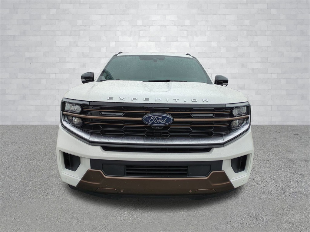 2025 White Metallic 2025 Ford Expedition King Ranch 4WD EcoBoost 3.5L V6 GTDi DOHC 24V Twin Turbocharged 4WD. Connectivity Package (One-Time Purchase), Equipment Group 400A Standard Package (BlueCruise Equipped (1-Year Plan)), 4WD, 22 Speakers, 3.73 Axle Ratio, 3rd row seats: split-bench, 4-Wheel Disc Brakes, ABS brakes, Adaptive suspension, Adjustable pedals, Air Conditioning, Alloy wheels, AM/FM radio: SiriusXM with 360L, Apple CarPlay/Android Auto, Auto High-beam Headlights, Auto-dimming door mirrors, Auto-dimming Rear-View mirror, Automatic temperature control, Brake assist, Bumpers: body-color, Compass, Delay-off headlights, Driver door bin, Driver vanity mirror, Dual front impact airbags, Dual front side impact airbags, Electronic Stability Control, Emergency communication system: 911 Assist, Exterior Parking Camera Rear, Floor Liners, Front & Second Rows, Four wheel independent suspension, Front anti-roll bar, Front Bucket Seats, Front Center Armrest, Front dual zone A/C, Front reading lights, Fully automatic headlights, Garage door transmitter, Genuine wood dashboard insert, Genuine wood door panel insert, Heated door mirrors, Heated front seats, Heated rear seats, Heated steering wheel, Heated/Vent Prem Del Rio Lthr Fr Captain's Chairs, Illuminated entry, Leather steering wheel, Low tire pressure warning, Memory seat, Navigation System, Occupant sensing airbag, Outside temperature display, Overhead airbag, Overhead console, Panic alarm, Passenger door bin, Passenger vanity mirror, Pedal memory, Power door mirrors, Power driver seat, Power moonroof: Vista Roof, Power passenger seat, Power steering, Power windows, Radio data system, Radio: B&O Unleashed Sound System by Bang & Olufsen, Rain sensing wipers, Rear air conditioning, Rear anti-roll bar, Rear reading lights, Rear window defroster, Rear window wiper, Reclining 3rd row seat, Remote keyless entry, Security system, SiriusXM w/360L, Speed control, Speed-sensing steering, Speed-Sensitive Wipers, Split folding rear seat, Spoiler, Steering wheel memory, Steering wheel mounted audio controls, Tachometer, Telescoping steering wheel, Tilt steering wheel, Traction control, Trip computer, Turn signal indicator mirrors, Variably intermittent wipers, Ventilated front seats, Voltmeter, and Wheels: 22" Sinister Brown w/Diamond Cut Face Alum Courtesy Ford and Lincoln of Rome 101 Hwy 411 E Rome, Ga 30161 ROMEFORDLINC.COM 706.235.4453.
