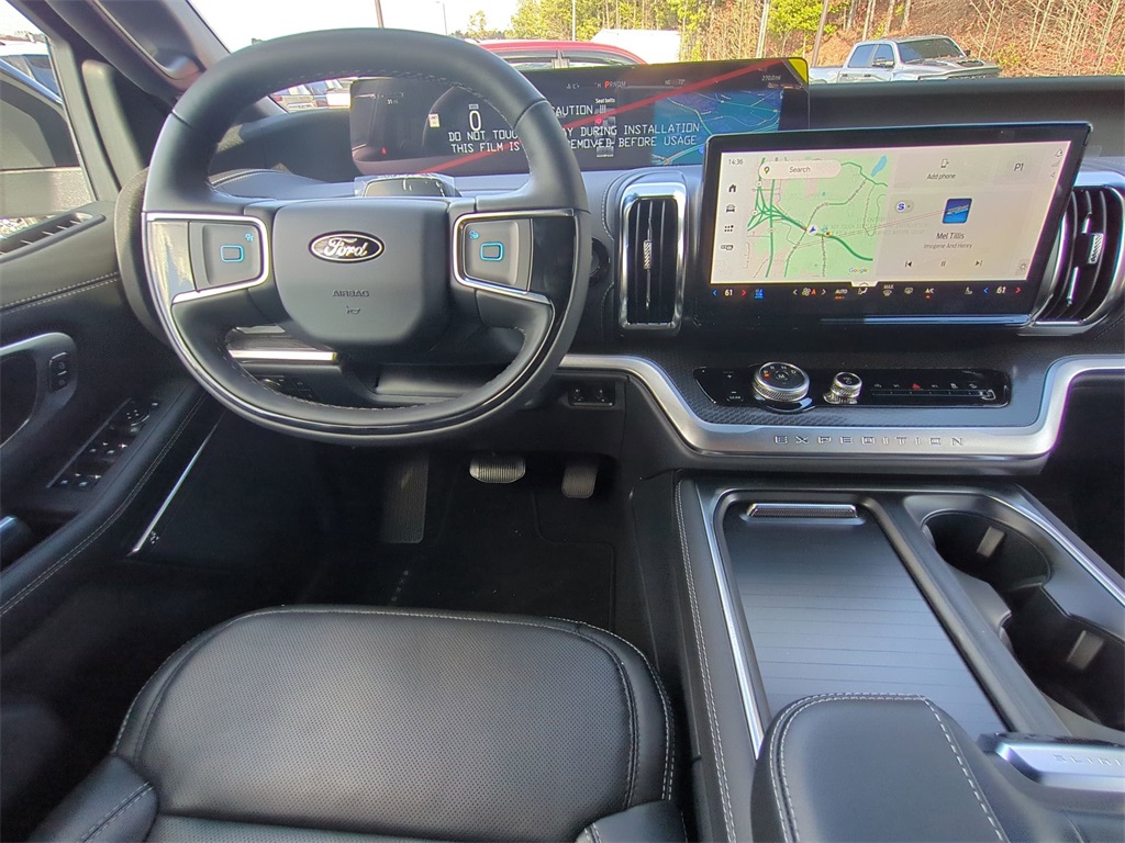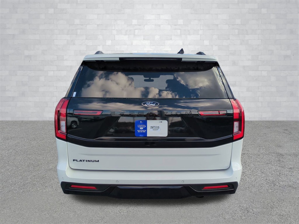 2025 Star White Metallic Tri-Coat 2025 Ford Expedition Platinum Stealth 4WD 3.5L V6 13.2" LCD Centerstack Touchscreen, 24" Cluster Pano Display, 3rd Row Seating, Adaptive Ride Package, Auto LED Headlights, Autoride Suspension Package, Bi Xenon Headlamp Package, Bluetooth w/ Audio Streaming, Hill Descent Control, Hill Start Assist, Intersection Assist, Memory Package, Multi Zone Climate Control, Panoramic Sunroof/Moonroof, Power Mirror Package, Power Package, Push Button Start, Remote Start, Wireless Charging Pad, 4D Sport Utility, 3.5L V6, 10-Speed Automatic, 4WD, 2nd Row Power-Folding Captain's Chairs, Black Belt Molding, Black Expedition Lettering On Hood, Black Headlamp Bezel w/Ebony Trim Applique, Black Platinum Badge On Tailgate, Black Roof Rails, Carbon Black Front Bumper/Fascia, Connectivity Package (One-Time Purchase), Continuous Control Damping Suspension, Driver's Package, Engine Sound Enhancer, Equipment Group 600A Standard Package, High Flow Exhaust System, Navigation System, Radio: B&O Unleashed Sound System by Bang & Olufsen, Rain sensing wipers, Rear Side Windows Laminated Glass, Rear window wiper, Red Brake Calipers, Signature Grille Lighting, SiriusXM w/360L, Speed-Sensitive Wipers, Stealth Appearance Package, Stealth Performance Package, Wheels: 22" Magnetite Painted Aluminum. Connectivity Package (One-Time Purchase), Driver's Package (Continuous Control Damping Suspension, Radio: B&O Unleashed Sound System by Bang & Olufsen, and SiriusXM w/360L), Equipment Group 600A Standard Package (2nd Row Power-Folding Captain's Chairs), Stealth Appearance Package (Black Belt Molding, Black Expedition Lettering On Hood, Black Headlamp Bezel w/Ebony Trim Applique, Black Platinum Badge On Tailgate, Black Roof Rails, Carbon Black Front Bumper/Fascia, Engine Sound Enhancer, Rear Side Windows Laminated Glass, and Signature Grille Lighting), Stealth Performance Package (High Flow Exhaust System, Red Brake Calipers, and Wheels: 22" Magnetite Painted Aluminum), 4D Sport Utility, 3.5L V6, 10-Speed Automatic, 4WD, Navigation System, Rain sensing wipers, Rear window wiper, Speed-Sensitive Wipers, 10 Speakers, 3.73 Axle Ratio, 3rd row seats: split-bench, 4-Wheel Disc Brakes, ABS brakes, Adjustable pedals, Air Conditioning, Alloy wheels, AM/FM radio: SiriusXM with 360L, Apple CarPlay/Android Auto, Auto High-beam Headlights, Auto-dimming door mirrors, Auto-dimming Rear-View mirror, Automatic temperature control, Brake assist, Bumpers: body-color, Compass, Delay-off headlights, Driver door bin, Driver vanity mirror, Dual front impact airbags, Dual front side impact airbags, Electronic Stability Control, Emergency communication system: 911 Assist, Exterior Parking Camera Rear, Four wheel independent suspension, Front anti-roll bar, Front Bucket Seats, Front Center Armrest, Front dual zone A/C, Front reading lights, Fully automatic headlights, Garage door transmitter, Genuine wood dashboard insert, Genuine wood door panel insert, Heated & Ventilated Leather Front Captain's Chairs, Heated door mirrors, Heated front seats, Heated rear seats, Heated steering wheel, Illuminated entry, Leather steering wheel, Low tire pressure warning, Memory seat, Occupant sensing airbag, Outside temperature display, Overhead airbag, Overhead console, Panic alarm, Passenger door bin, Passenger vanity mirror, Pedal memory, Power door mirrors, Power driver seat, Power moonroof: Vista Roof, Power passenger seat, Power steering, Power windows, Radio data system, Radio: B&O Sound System by Bang & Olufsen, Rear air conditioning, Rear anti-roll bar, Rear reading lights, Rear window defroster, Reclining 3rd row seat, Remote keyless entry, Security system, Speed control, Speed-sensing steering, Split folding rear seat, Spoiler, Steering wheel memory, Steering wheel mounted audio controls, Tachometer, Telescoping steering wheel, Tilt steering wheel, Traction control, Trip computer,