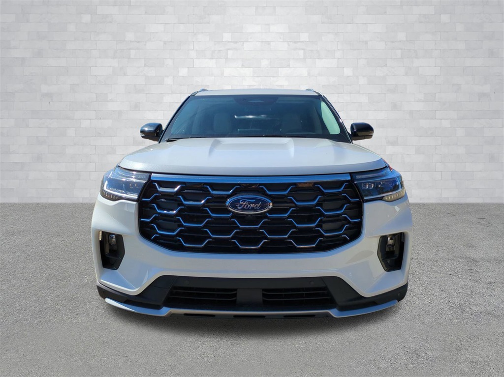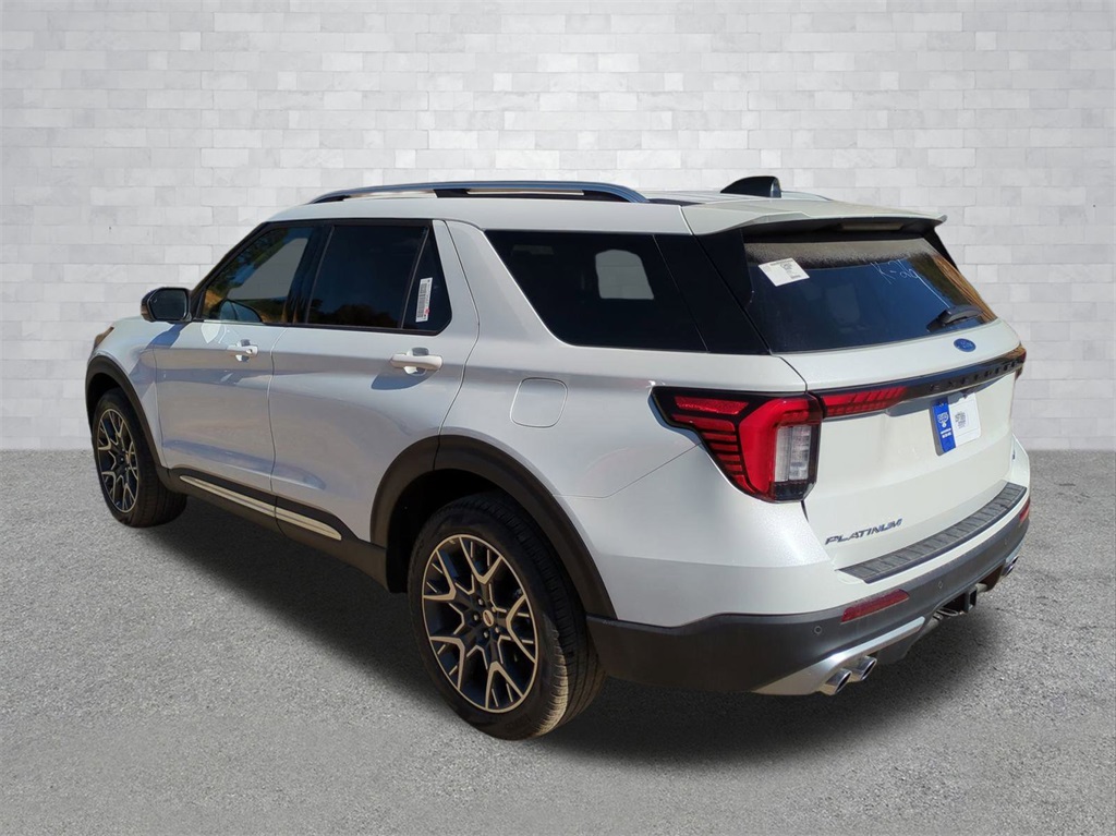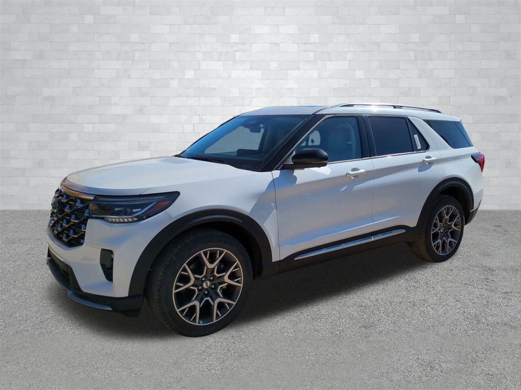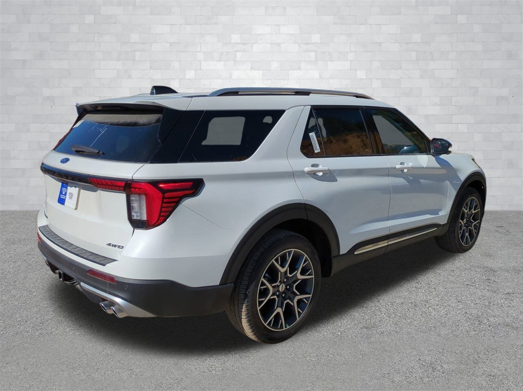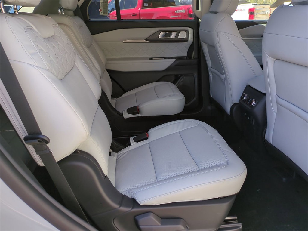2025 Star White Metallic Tri-Coat 2025 Ford Explorer Platinum 4WD 3.0L EcoBoost V6 4WD. 4WD, 14 Speakers, 3.58 Non-Limited Slip Rear Axle, 3rd row seats: bench, 4-Wheel Disc Brakes, ABS brakes, ActiveX Trimmed Sport Captain's Chairs, Air Conditioning, Alloy wheels, AM/FM radio: SiriusXM with 360L, Apple CarPlay/Android Auto, Auto High-beam Headlights, Auto-dimming door mirrors, Auto-dimming Rear-View mirror, Automatic temperature control, Brake assist, Bumpers: body-color, Compass, Delay-off headlights, Driver door bin, Driver vanity mirror, Dual front impact airbags, Dual front side impact airbags, Electronic Stability Control, Emergency communication system: 911 Assist, Exterior Parking Camera Rear, Four wheel independent suspension, Front anti-roll bar, Front Bucket Seats, Front Center Armrest, Front dual zone A/C, Front fog lights, Front reading lights, Fully automatic headlights, Garage door transmitter, Heated door mirrors, Heated front seats, Heated rear seats, Heated steering wheel, Illuminated entry, Knee airbag, Leather steering wheel, Low tire pressure warning, Memory seat, Navigation System, Occupant sensing airbag, Outside temperature display, Overhead airbag, Overhead console, Panic alarm, Passenger door bin, Passenger vanity mirror, Power door mirrors, Power driver seat, Power Liftgate, Power moonroof, Power passenger seat, Power steering, Power windows, Radio data system, Radio: B&O Sound System by Bang & Olufsen w/HD, Rain sensing wipers, Rear air conditioning, Rear anti-roll bar, Rear reading lights, Rear window defroster, Rear window wiper, Remote keyless entry, Security system, Speed control, Speed-sensing steering, Speed-Sensitive Wipers, Split folding rear seat, Spoiler, Steering wheel mounted audio controls, Tachometer, Telescoping steering wheel, Tilt steering wheel, Traction control, Trip computer, Turn signal indicator mirrors, Variably intermittent wipers, Ventilated front seats, and Wheels: 20" Luster Nickel-Painted Aluminum Courtesy Ford and Lincoln of Rome 101 Hwy 411 E Rome, Ga 30161 ROMEFORDLINC.COM 706.235.4453.
