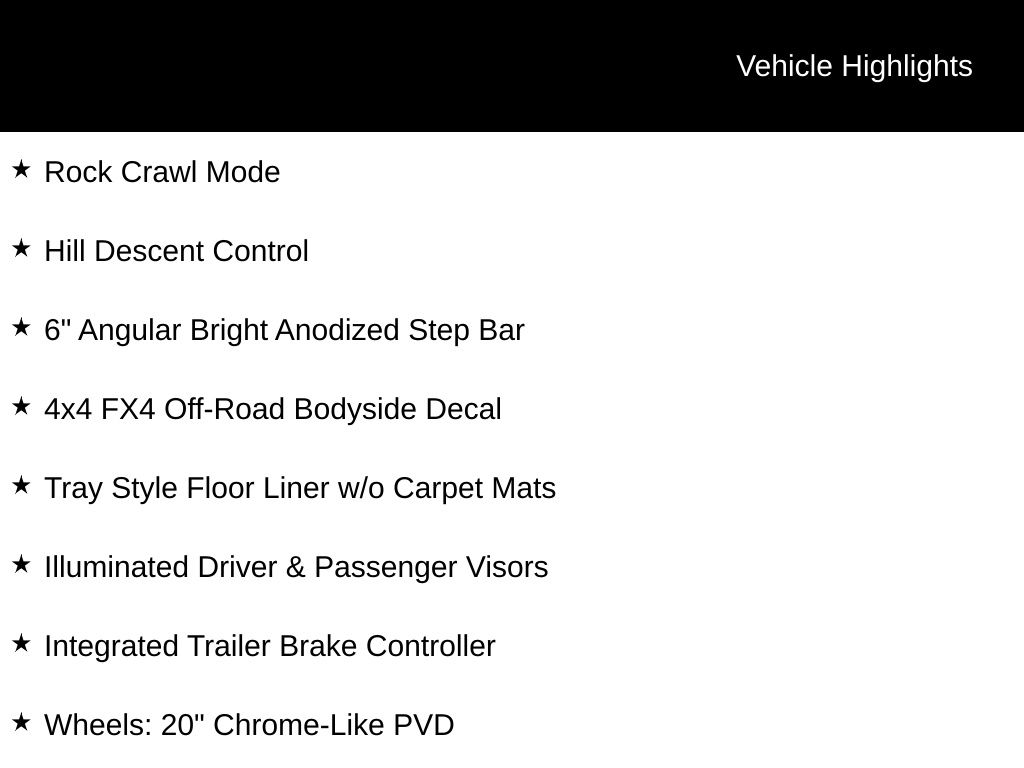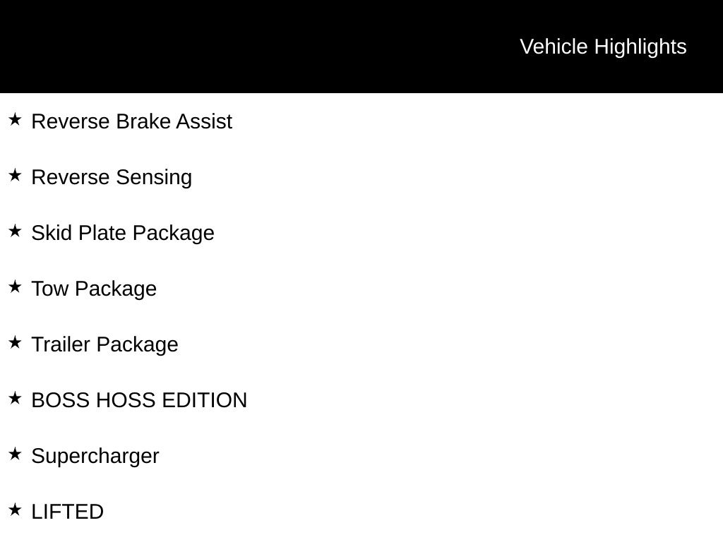 2025 Agate Black Metallic 2025 Ford F-150 Lariat 4WD 5.0L V8 12" LCD Productivity Touchscreen, 360-Degree Camera, 5G WiFi Hotspot Telematics, Adaptive Cruise Control, Auto Emergency Braking, Auto LED Headlights, Backup Camera, Blind Spot Monitoring, BLIS w/ Cross Traffic Alert, Bluetooth w/ Audio Streaming, Lane Keeping System, Lariat Package, Off Road Package, Parking Sensors, Post Collision Braking, Pre Collision Assist w/ AEB, Reverse Brake Assist, Reverse Sensing, Skid Plate Package, Tow Package, Trailer Package, BOSS HOSS EDITION, Supercharger, LIFTED, WHEELS AND TIRES, 6 inch Ready Lift, VISION BULLET 18X9 WHEELS, 4D SuperCrew, 5.0L V8, 10-Speed Automatic, 4WD, 4x4 FX4 Off-Road Bodyside Decal, 6" Angular Bright Anodized Step Bar, Electronic Locking w/3.31 Axle Ratio, Equipment Group 501A Mid, FX4 Off-Road Package, Hill Descent Control, Illuminated Driver & Passenger Visors, Integrated Trailer Brake Controller, Monotube Rear Shocks, Off-Road Tuned Front Shock Absorbers, Power-Sliding Rear Window, Rock Crawl Mode, Tow/Haul Package, Tray Style Floor Liner w/o Carpet Mats, Wheels: 20" Chrome-Like PVD. Equipment Group 501A Mid (6" Angular Bright Anodized Step Bar, Illuminated Driver & Passenger Visors, Power-Sliding Rear Window, and Wheels: 20" Chrome-Like PVD), FX4 Off-Road Package (4x4 FX4 Off-Road Bodyside Decal, Electronic Locking w/3.31 Axle Ratio, Hill Descent Control, Monotube Rear Shocks, Off-Road Tuned Front Shock Absorbers, Rock Crawl Mode, and Tray Style Floor Liner w/o Carpet Mats), Tow/Haul Package (Integrated Trailer Brake Controller), 4D SuperCrew, 5.0L V8, 10-Speed Automatic, 4WD, 4-Wheel Disc Brakes, 8 Speakers, ABS brakes, ActiveX Trimmed Bucket Seats, Adjustable pedals, Air Conditioning, Alloy wheels, AM/FM radio: SiriusXM with 360L, Auto High-beam Headlights, Auto-dimming door mirrors, Auto-dimming Rear-View mirror, Automatic temperature control, Brake assist, Bumpers: chrome, Chrome wheels, Compass, Delay-off headlights, Driver door bin, Driver vanity mirror, Dual front impact airbags, Dual front side impact airbags, Electronic Stability Control, Emergency communication system: SYNC 4 911 Assist, Front anti-roll bar, Front Bucket Seats, Front Center Armrest, Front dual zone A/C, Front fog lights, Front reading lights, Front wheel independent suspension, Fully automatic headlights, Garage door transmitter, Heated door mirrors, Heated front seats, Heated steering wheel, Illuminated entry, Low tire pressure warning, Memory seat, Navigation system: Connected Navigation, Occupant sensing airbag, Outside temperature display, Overhead airbag, Overhead console, Panic alarm, Passenger door bin, Passenger vanity mirror, Pedal memory, Power door mirrors, Power driver seat, Power passenger seat, Power steering, Power windows, Radio data system, Radio: B&O Sound System by Bang & Olufsen, Rain sensing wipers, Rear reading lights, Rear seat center armrest, Rear step bumper, Rear window defroster, Remote keyless entry, Security system, Speed control, Split folding rear seat, Steering wheel mounted audio controls, SYNC 4 w/Enhanced Voice Recognition, Tachometer, Telescoping steering wheel, Tilt steering wheel, Traction control, Trip computer, Turn signal indicator mirrors, Variably intermittent wipers, Ventilated front seats, Voltmeter, and Wheels: 18" Chrome-Like PVD Courtesy Ford and Lincoln of Rome 101 Hwy 411 E Rome, Ga 30161 ROMEFORDLINC.COM 706.235.4453. Price includes dealer added accessories.