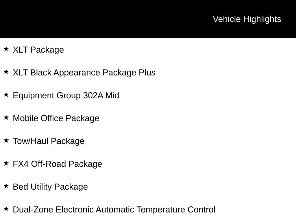 2025 Carbonized Gray Metallic 2025 Ford F-150 XLT 4WD 3.5L PowerBoost Full-Hybrid V6 12" LCD Productivity Touchscreen, 5G WiFi Hotspot Telematics, Auto LED Headlights, Backup Camera, Blind Spot Monitoring, BLIS w/ Cross Traffic Alert, Bluetooth w/ Audio Streaming, Lane Keeping System, Parking Sensors, Post Collision Braking, Power Sliding Rear Window, Pre Collision Assist w/ AEB, Reverse Brake Assist, Reverse Sensing, Tow Package, Trailer Package, XLT Package, 4D SuperCrew, 3.5L PowerBoost Full-Hybrid V6, 10-Speed Automatic, 4WD, 360 Degree Camera, 4 Pickup Box Tie-Down Plates, 400W Cab & Bed Outlets, 4x4 FX4 Off-Road Bodyside Decal, 6" Angular Bright Anodized Step Bar, Adaptive Cruise Control w/Stop & Go, Auto-Dimming Rear-View Mirror, Bed Utility Package, Black Painted Grille w/Chrome Center Bar, Chrome Door & Tailgate Handles, Chrome Single-Tip Exhaust, Cloth 40/Console/40 Front Seats, Connected Navigation, Console Worksurface, Driver State Detection, Dual Exhaust w/Black Tips, Dual-Zone Electronic Automatic Temperature Control, Electronic Locking w/3.73 Axle Ratio, Equipment Group 302A Mid, Evasive Steering Assist, Ford Co-Pilot360 Assist 2.0, Front Parking Sensors, FX4 Off-Road Package, Heated Front Seats, Hill Descent Control, Integrated Trailer Brake Controller, Intelligent Access w/Push Button Start, LED Box Lighting, Mobile Office Package, Monotube Rear Shocks, Off-Road Tuned Front Shock Absorbers, Partitioned Lockable Rear Storage, Power Glass Heated Sideview Mirrors, Power-Sliding Rear Window, Remote Start System w/Remote Tailgate Release, Rock Crawl Mode, Tailgate Step w/Tailgate Work Surface, Tow/Haul Package, Towing Technology, Tray Style Floor Liner w/o Carpet Mats, Wheels: 20" Gloss Black Painted Aluminum, Wrapped Steering Wheel, XLT Black Appearance Package Plus. Bed Utility Package (4 Pickup Box Tie-Down Plates, LED Box Lighting, and Tailgate Step w/Tailgate Work Surface), Equipment Group 302A Mid (360 Degree Camera, 400W Cab & Bed Outlets, 6" Angular Bright Anodized Step Bar, Adaptive Cruise Control w/Stop & Go, Auto-Dimming Rear-View Mirror, Black Painted Grille w/Chrome Center Bar, Chrome Door & Tailgate Handles, Chrome Single-Tip Exhaust, Cloth 40/Console/40 Front Seats, Connected Navigation, Driver State Detection, Dual-Zone Electronic Automatic Temperature Control, Evasive Steering Assist, Ford Co-Pilot360 Assist 2.0, Front Parking Sensors, Heated Front Seats, Intelligent Access w/Push Button Start, Power Glass Heated Sideview Mirrors, Power-Sliding Rear Window, Remote Start System w/Remote Tailgate Release, Towing Technology, and Wrapped Steering Wheel), FX4 Off-Road Package (4x4 FX4 Off-Road Bodyside Decal, Hill Descent Control, Monotube Rear Shocks, Off-Road Tuned Front Shock Absorbers, Rock Crawl Mode, and Tray Style Floor Liner w/o Carpet Mats), Mobile Office Package (Console Worksurface and Partitioned Lockable Rear Storage), Tow/Haul Package (Integrated Trailer Brake Controller), XLT Black Appearance Package Plus (Dual Exhaust w/Black Tips and Wheels: 20" Gloss Black Painted Aluminum), 4D SuperCrew, 3.5L PowerBoost Full-Hybrid V6, 10-Speed Automatic, 4WD, Electronic Locking w/3.73 Axle Ratio, 4-Wheel Disc Brakes, 6 Speakers, ABS brakes, Air Conditioning, Alloy wheels, Auto High-beam Headlights, Brake assist, Bumpers: chrome, Chrome wheels, Cloth 40/20/40 Front Seat, Compass, Delay-off headlights, Driver door bin, Driver vanity mirror, Dual front impact airbags, Dual front side impact airbags, Electronic Stability Control, Emergency communication system: SYNC 4 911 Assist, Front anti-roll bar, Front Center Armrest, Front fog lights, Front reading lights, Front wheel independent suspension, Fully automatic headlights, Heated door mirrors, Illuminated entry, Low tire pressure warning, Occupant sensing airbag, Outside temperature display, Overhead airbag, Overhead console, Panic Price includes dealer added acce