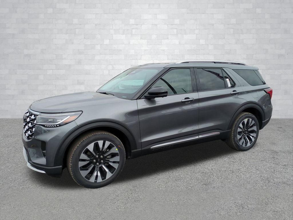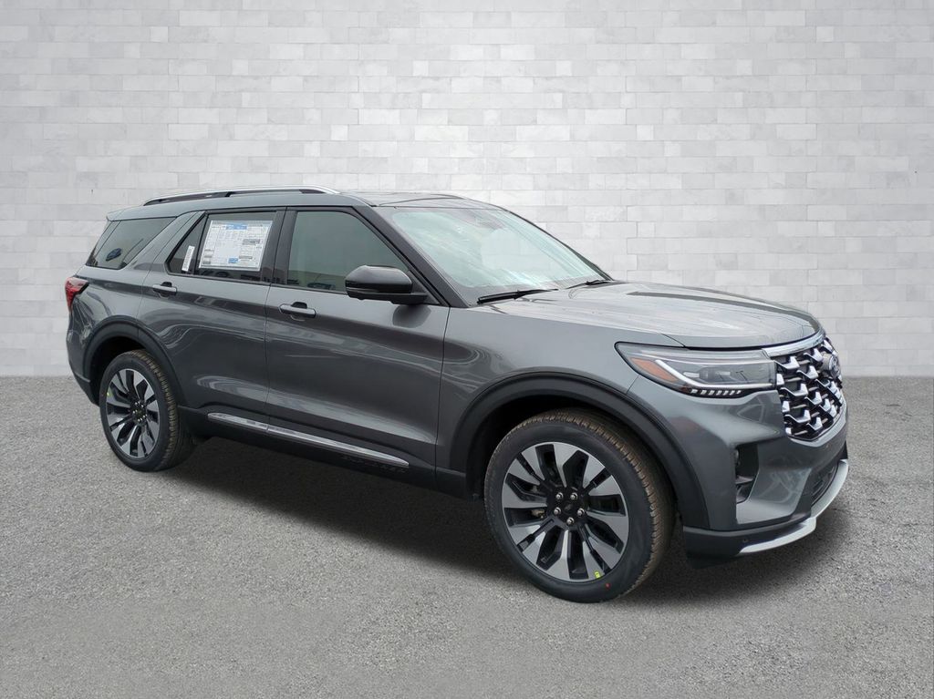 2026 Carbonized Gray Metallic 2026 Ford Explorer Platinum 4WD 2.3L EcoBoost I-4 4WD. 4WD, 14 Speakers, 3rd row seats: bench, 4-Wheel Disc Brakes, ABS brakes, ActiveX Trimmed Captain's Chairs, Air Conditioning, Alloy wheels, AM/FM radio: SiriusXM with 360L, Apple CarPlay/Android Auto, Auto High-beam Headlights, Auto-dimming door mirrors, Auto-dimming Rear-View mirror, Automatic temperature control, Brake assist, Bumpers: body-color, Compass, Delay-off headlights, Driver door bin, Driver vanity mirror, Dual front impact airbags, Dual front side impact airbags, Electronic Stability Control, Emergency communication system: 911 Assist, Exterior Parking Camera Rear, Four wheel independent suspension, Front anti-roll bar, Front Bucket Seats, Front Center Armrest, Front dual zone A/C, Front fog lights, Front reading lights, Fully automatic headlights, Garage door transmitter, Heated door mirrors, Heated front seats, Heated rear seats, Heated steering wheel, Illuminated entry, Knee airbag, Leather steering wheel, Low tire pressure warning, Memory seat, Navigation System, Occupant sensing airbag, Outside temperature display, Overhead airbag, Overhead console, Panic alarm, Passenger door bin, Passenger vanity mirror, Power door mirrors, Power driver seat, Power Liftgate, Power passenger seat, Power steering, Power windows, Radio data system, Radio: B&O Sound System by Bang & Olufsen with HD, Rain sensing wipers, Rear air conditioning, Rear anti-roll bar, Rear reading lights, Rear window defroster, Rear window wiper, Remote keyless entry, Security system, Speed control, Speed-sensing steering, Speed-Sensitive Wipers, Split folding rear seat, Spoiler, Steering wheel mounted audio controls, Tachometer, Telescoping steering wheel, Tilt steering wheel, Traction control, Trip computer, Turn signal indicator mirrors, Variably intermittent wipers, Ventilated front seats, and Wheels: 20" Luster Nickel-Painted Aluminum Courtesy Ford and Lincoln of Rome 101 Hwy 411 E Rome, Ga 30161 ROMEFORDLINC.COM 706.235.4453.