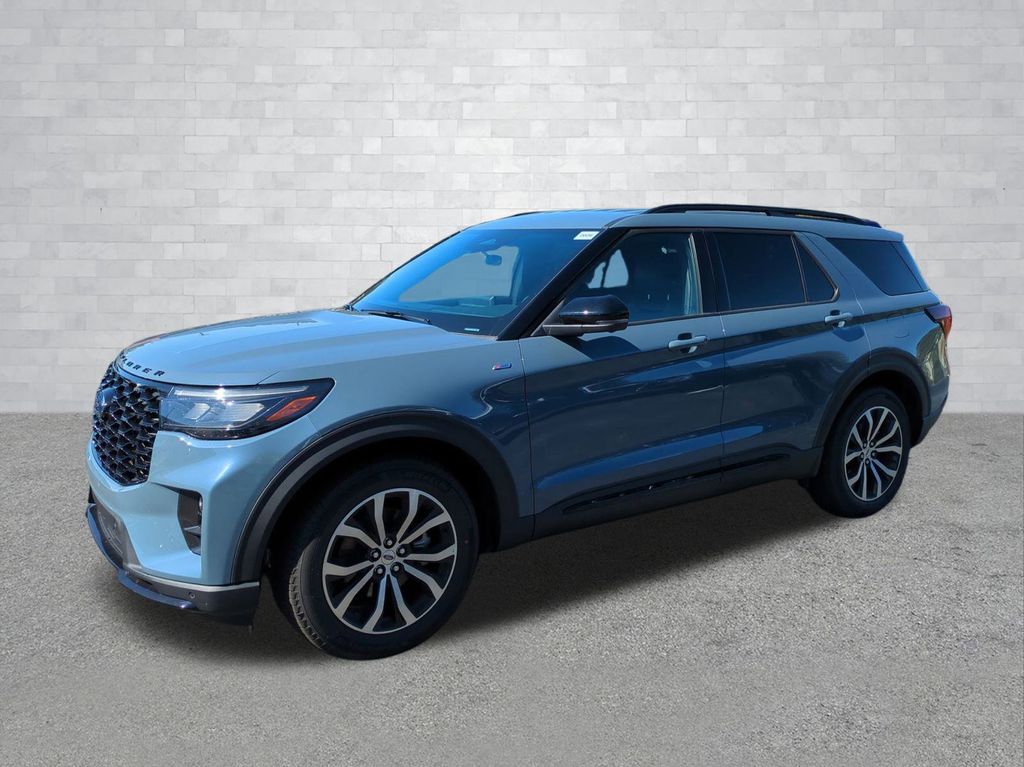 2026 Vapor Blue Metallic 2026 Ford Explorer ST-Line RWD 2.3L EcoBoost I-4 Equipment Group 300A Standard Package (Heated Unique Cloth Captain's Chairs, Radio: B&O Sound System by Bang and Olufsen, and Wheels: 20" Ebony-Painted Machined Aluminum), 10 Speakers, 3rd row seats: bench, 4-Wheel Disc Brakes, ABS brakes, Air Conditioning, Alloy wheels, AM/FM radio: SiriusXM with 360L, Apple CarPlay/Android Auto, Auto High-beam Headlights, Automatic temperature control, BlueCruise (equipment + 1-Year + 90-Day Plan), BlueCruise Hardware, Brake assist, Bumpers: body-color, Compass, Delay-off headlights, Driver door bin, Driver vanity mirror, Dual front impact airbags, Dual front side impact airbags, Electronic Stability Control, Emergency communication system: 911 Assist, Exterior Parking Camera Rear, Four wheel independent suspension, Front anti-roll bar, Front Bucket Seats, Front Center Armrest, Front dual zone A/C, Front fog lights, Front reading lights, Fully automatic headlights, Garage door transmitter, Heated door mirrors, Heated front seats, Heated steering wheel, Illuminated entry, Knee airbag, Leather steering wheel, Low tire pressure warning, Navigation System, Occupant sensing airbag, Outside temperature display, Overhead airbag, Overhead console, Panic alarm, Passenger door bin, Passenger vanity mirror, Power door mirrors, Power driver seat, Power Liftgate, Power passenger seat, Power steering, Power windows, Rear air conditioning, Rear anti-roll bar, Rear reading lights, Rear window defroster, Rear window wiper, Remote keyless entry, Security system, Speed control, Speed-sensing steering, Speed-Sensitive Wipers, Split folding rear seat, Spoiler, Steering wheel mounted audio controls, Tachometer, Telescoping steering wheel, Tilt steering wheel, Traction control, Trip computer, and Variably intermittent wipers Courtesy Ford and Lincoln of Rome 101 Hwy 411 E Rome, Ga 30161 ROMEFORDLINC.COM 706.235.4453.