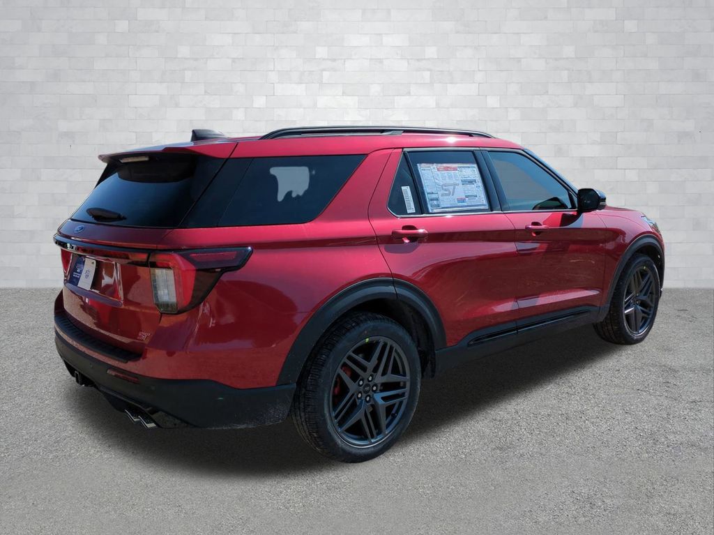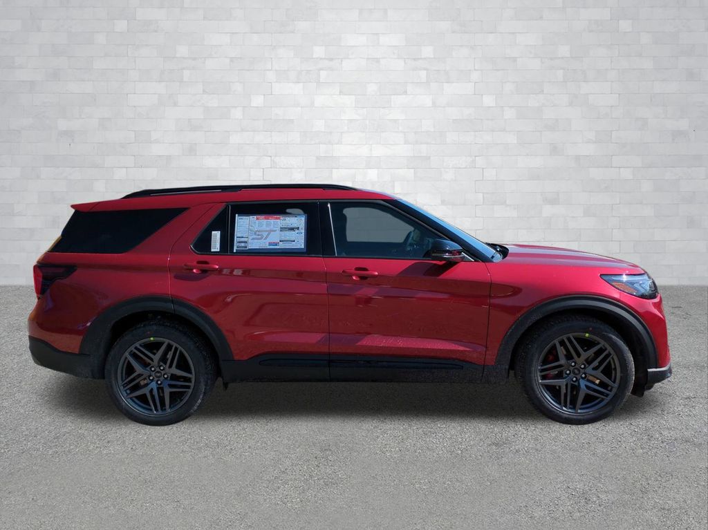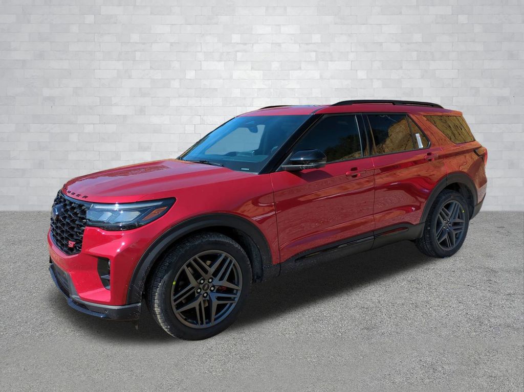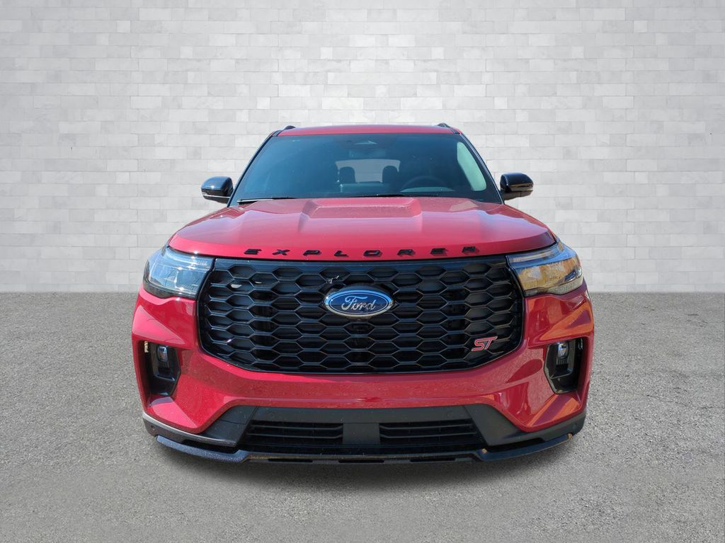 2026 Rapid Red Metallic Tinted Clearcoat 2026 Ford Explorer ST 4WD 3.0L EcoBoost V6 4WD. 4WD, 10 Speakers, 3rd row seats: bench, 4-Wheel Disc Brakes, ABS brakes, Air Conditioning, Alloy wheels, AM/FM radio: SiriusXM with 360L, Apple CarPlay/Android Auto, Auto High-beam Headlights, Auto-dimming door mirrors, Auto-dimming Rear-View mirror, Automatic temperature control, Brake assist, Bumpers: body-color, Compass, Delay-off headlights, Driver door bin, Driver vanity mirror, Dual front impact airbags, Dual front side impact airbags, Electronic Stability Control, Emergency communication system: 911 Assist, Exterior Parking Camera Rear, Four wheel independent suspension, Front anti-roll bar, Front Bucket Seats, Front Center Armrest, Front dual zone A/C, Front fog lights, Front reading lights, Fully automatic headlights, Garage door transmitter, Heated door mirrors, Heated front seats, Heated rear seats, Heated steering wheel, Heated/Ventilated Miko Suede Captain's Chairs, Illuminated entry, Knee airbag, Leather steering wheel, Low tire pressure warning, Memory seat, Navigation System, Occupant sensing airbag, Outside temperature display, Overhead airbag, Overhead console, Panic alarm, Passenger door bin, Passenger vanity mirror, Power door mirrors, Power driver seat, Power Liftgate, Power passenger seat, Power steering, Power windows, Radio: B&O Sound System by Bang and Olufsen, Rain sensing wipers, Rear air conditioning, Rear anti-roll bar, Rear reading lights, Rear window defroster, Rear window wiper, Remote keyless entry, Security system, Speed control, Speed-sensing steering, Speed-Sensitive Wipers, Split folding rear seat, Spoiler, Sport steering wheel, Steering wheel mounted audio controls, Tachometer, Telescoping steering wheel, Tilt steering wheel, Traction control, Trip computer, Turn signal indicator mirrors, Variably intermittent wipers, Ventilated front seats, and Wheels: 21" Magnetite-Painted Aluminum Courtesy Ford and Lincoln of Rome 101 Hwy 411 E Rome, Ga 30161 ROMEFORDLINC.COM 706.235.4453.