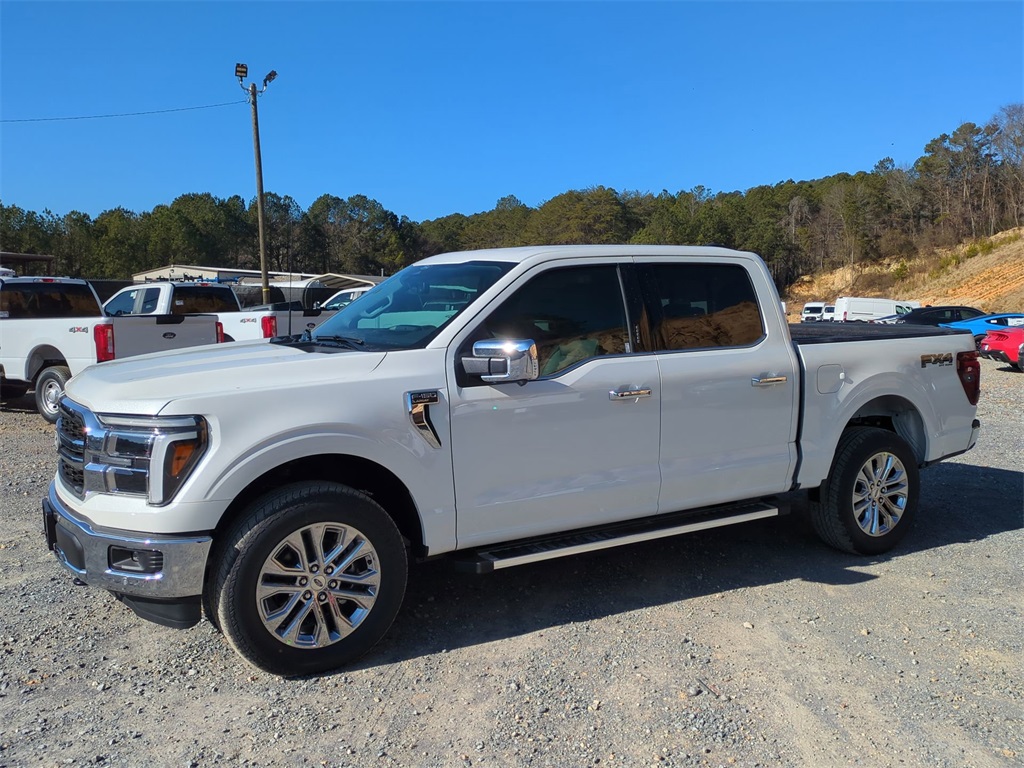 2026 Star White Metallic Tri-Coat 2026 Ford F-150 Lariat 4WD 5.0L V8 4WD. Ford Connectivity Package (1-Year Included), Internet access capable: 5G Modem - Ford Connectivity Package, 4WD, 3.31 Axle Ratio, 4-Wheel Disc Brakes, 8 Speakers, ABS brakes, Air Conditioning, Alloy wheels, AM/FM radio: SiriusXM with 360L, Auto High-beam Headlights, Auto-dimming door mirrors, Auto-dimming Rear-View mirror, Automatic temperature control, Brake assist, Bumpers: chrome, Chrome wheels, Compass, Delay-off headlights, Driver door bin, Driver vanity mirror, Dual front impact airbags, Dual front side impact airbags, Electronic Stability Control, Emergency communication system: SYNC 4 911 Assist, Front anti-roll bar, Front Bucket Seats, Front Center Armrest, Front dual zone A/C, Front fog lights, Front reading lights, Front wheel independent suspension, Fully automatic headlights, Garage door transmitter, Heated door mirrors, Heated front seats, Heated steering wheel, Illuminated entry, Low tire pressure warning, Memory seat, Navigation system: Connected Navigation, Occupant sensing airbag, Outside temperature display, Overhead airbag, Overhead console, Panic alarm, Passenger door bin, Passenger vanity mirror, Power door mirrors, Power driver seat, Power passenger seat, Power steering, Power windows, Radio data system, Radio: B&O Sound System by Bang and Olufsen, Rain sensing wipers, Rear reading lights, Rear seat center armrest, Rear step bumper, Rear window defroster, Remote keyless entry, Security system, Speed control, Split folding rear seat, Steering wheel mounted audio controls, SYNC 4 with Enhanced Voice Recognition, Tachometer, Telescoping steering wheel, Tilt steering wheel, Traction control, Trip computer, Turn signal indicator mirrors, Variably intermittent wipers, Ventilated front seats, and Wheels: 18" Chrome-Like PVD Courtesy Ford and Lincoln of Rome 101 Hwy 411 E Rome, Ga 30161 ROMEFORDLINC.COM 706.235.4453.
