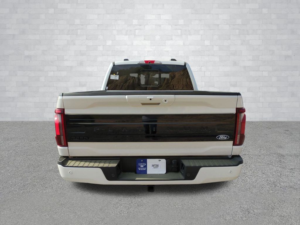 2026 Star White Metallic Tri-Coat 2026 Ford F-150 Platinum 4WD 3.5L V6 EcoBoost 4WD. Ford Connectivity Package (1-Year Included), GVWR: 7,400 lbs Payload Package, Internet access capable: 5G Modem - Ford Connectivity Package, 4WD, 4-Wheel Disc Brakes, 8 Speakers, ABS brakes, Adjustable pedals, Air Conditioning, Alloy wheels, AM/FM radio: SiriusXM with 360L, Auto High-beam Headlights, Auto tilt-away steering wheel, Auto-dimming door mirrors, Auto-dimming Rear-View mirror, Automatic temperature control, Brake assist, Bumpers: body-color, Compass, Delay-off headlights, Driver door bin, Driver vanity mirror, Dual front impact airbags, Dual front side impact airbags, Electronic Locking with 3.55 Axle Ratio, Electronic Stability Control, Emergency communication system: SYNC 4 911 Assist, Front anti-roll bar, Front Bucket Seats, Front Center Armrest, Front dual zone A/C, Front fog lights, Front reading lights, Front wheel independent suspension, Fully automatic headlights, Garage door transmitter, Heated door mirrors, Heated front seats, Heated rear seats, Heated steering wheel, Illuminated entry, Leather steering wheel, Low tire pressure warning, Memory seat, Navigation system: Connected Navigation, Occupant sensing airbag, Outside temperature display, Overhead airbag, Overhead console, Panic alarm, Passenger door bin, Passenger vanity mirror, Pedal memory, Power door mirrors, Power driver seat, Power passenger seat, Power steering, Power windows, Radio data system, Radio: B&O Sound System by Bang and Olufsen, Rain sensing wipers, Rear reading lights, Rear seat center armrest, Rear step bumper, Rear window defroster, Remote keyless entry, Security system, Speed control, Split folding rear seat, Steering wheel memory, Steering wheel mounted audio controls, SYNC 4 with Enhanced Voice Recognition, Tachometer, Telescoping steering wheel, Tilt steering wheel, Traction control, Trip computer, Turn signal indicator mirrors, Unique Multi-Contour Leather Bucket Seats, Variably intermittent wipers, Ventilated front seats, and Wheels: 20" Painted Gloss Ebony Black Courtesy Ford and Lincoln of Rome 101 Hwy 411 E Rome, Ga 30161 ROMEFORDLINC.COM 706.235.4453.