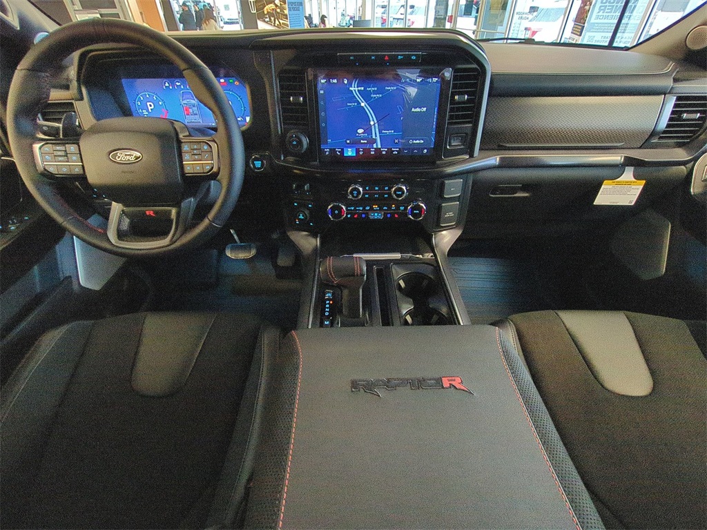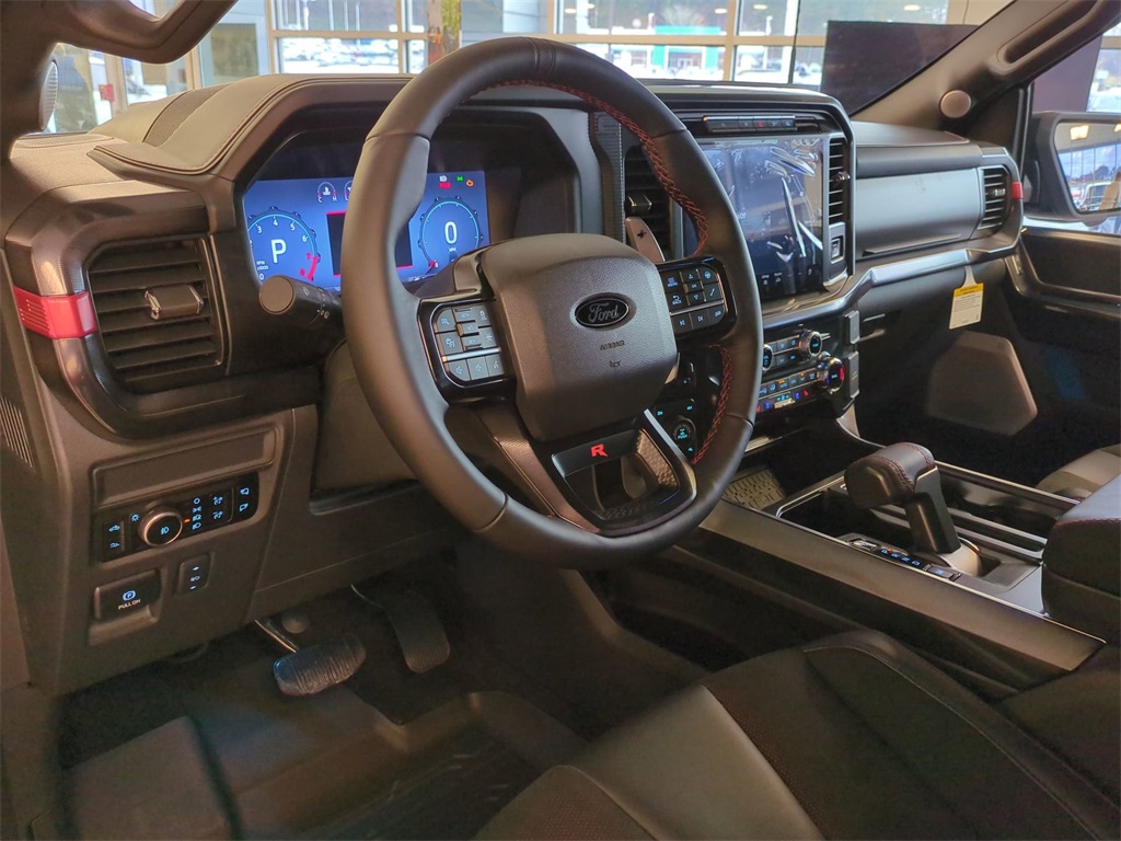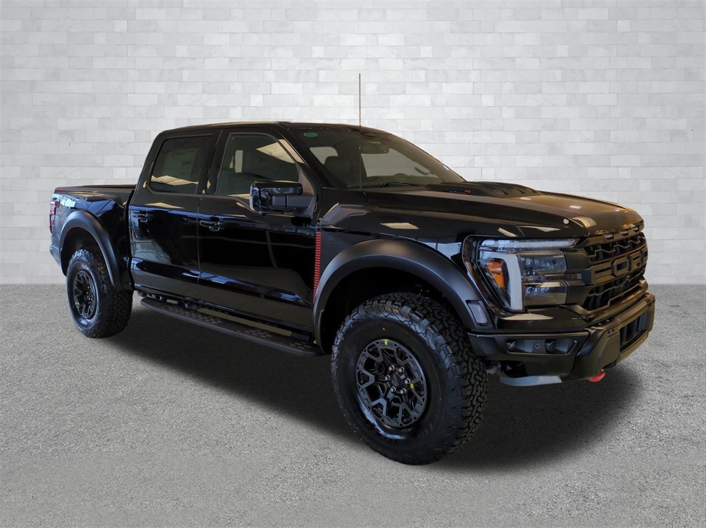 2026 Agate Black Metallic 2026 Ford F-150 Raptor 4WD 5.2L V8 4WD. Ford Connectivity Package (1-Year Included), Internet access capable: 5G Modem - Ford Connectivity Package, 4WD, 14 Speakers, 17" Cast Aluminum Wheels, 4-Wheel Disc Brakes, ABS brakes, Adjustable pedals, Air Conditioning, Alloy wheels, AM/FM radio: SiriusXM with 360L, Auto High-beam Headlights, Auto tilt-away steering wheel, Auto-dimming door mirrors, Auto-dimming Rear-View mirror, Automatic temperature control, Brake assist, Bumpers: body-color, Compass, Delay-off headlights, Driver door bin, Driver vanity mirror, Dual front impact airbags, Dual front side impact airbags, Electronic Locking with 4.10 Axle Ratio, Electronic Stability Control, Emergency communication system: SYNC 4 911 Assist, Front anti-roll bar, Front Bucket Seats, Front Center Armrest, Front dual zone A/C, Front fog lights, Front reading lights, Front wheel independent suspension, Fully automatic headlights, Garage door transmitter, Heated door mirrors, Heated front seats, Heated rear seats, Heated steering wheel, Illuminated entry, Lane Departure Warning System, Leather steering wheel, Leather Trimmed Seats, Low tire pressure warning, Memory seat, Navigation system: Connected Navigation, Occupant sensing airbag, Outside temperature display, Overhead airbag, Overhead console, Panic alarm, Passenger door bin, Passenger vanity mirror, Pedal memory, Power door mirrors, Power driver seat, Power passenger seat, Power steering, Power windows, Radio data system, Radio: B&O Unleashed Sound System by Bang & Olufsen, Rain sensing wipers, Rear reading lights, Rear step bumper, Rear window defroster, Remote keyless entry, Security system, Speed control, Speed-sensing steering, Split folding rear seat, Steering wheel memory, Steering wheel mounted audio controls, SYNC 4 with Enhanced Voice Recognition, Tachometer, Telescoping steering wheel, Tilt steering wheel, Traction control, Trip computer, Turn signal indicator mirrors, Variably intermittent wipers, and Ventilated front seats Courtesy Ford and Lincoln of Rome 101 Hwy 411 E Rome, Ga 30161 ROMEFORDLINC.COM 706.235.4453.