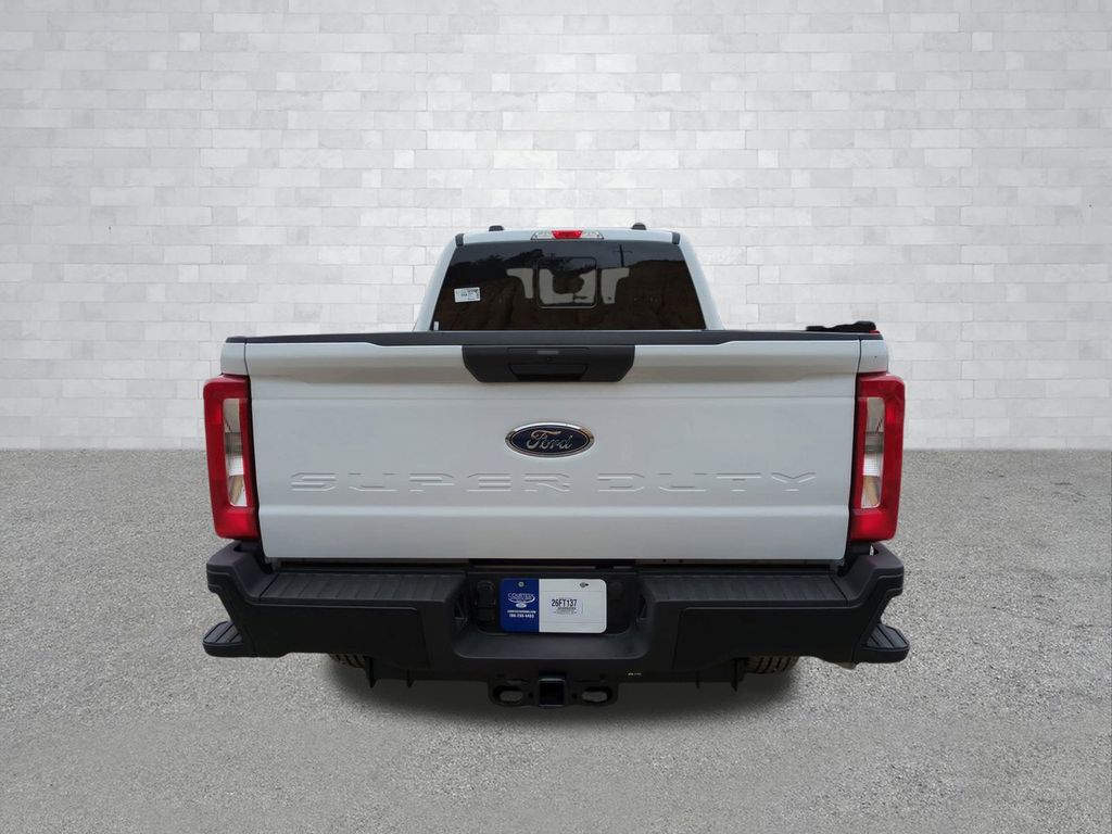 2026 Oxford White 2026 Ford F-250SD XL 4WD 6.8L V8 4WD. Ford Connectivity Package (1-Year Included), Internet access capable: 5G Modem - Ford Connectivity Package, 4WD, 3.73 Axle Ratio, 4-Wheel Disc Brakes, 6 Speakers, ABS brakes, Air Conditioning, AM/FM radio, Brake assist, Cloth 40/20/40 Split Bench Seat, Compass, Delay-off headlights, Dual front impact airbags, Dual front side impact airbags, Electronic Stability Control, Emergency communication system: SYNC 4 911 Assist, Exterior Parking Camera Rear, Front anti-roll bar, Front Center Armrest w/Storage, Front reading lights, Fully automatic headlights, Heated door mirrors, Illuminated entry, Low tire pressure warning, Outside temperature display, Overhead airbag, Overhead console, Panic alarm, Passenger cancellable airbag, Passenger vanity mirror, Power door mirrors, Power steering, Power windows, Privacy Glass, Rear step bumper, Remote keyless entry, Security system, Speed control, Split folding rear seat, Steering wheel mounted audio controls, SYNC 4, Tachometer, Telescoping steering wheel, Tilt steering wheel, Traction control, Trip computer, Turn signal indicator mirrors, and Variably intermittent wipers Courtesy Ford and Lincoln of Rome 101 Hwy 411 E Rome, Ga 30161 ROMEFORDLINC.COM 706.235.4453.
