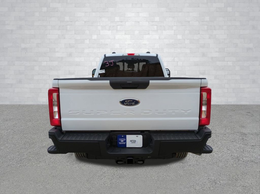 2026 Oxford White 2026 Ford F-250SD XL 4WD 6.8L V8 4WD. Ford Connectivity Package (1-Year Included), Internet access capable: 5G Modem - Ford Connectivity Package, 4WD, 3.73 Axle Ratio, 4-Wheel Disc Brakes, 6 Speakers, ABS brakes, Air Conditioning, AM/FM radio, Brake assist, Cloth 40/20/40 Split Bench Seat, Compass, Delay-off headlights, Dual front impact airbags, Dual front side impact airbags, Electronic Stability Control, Emergency communication system: SYNC 4 911 Assist, Exterior Parking Camera Rear, Front anti-roll bar, Front Center Armrest w/Storage, Front reading lights, Fully automatic headlights, Heated door mirrors, Illuminated entry, Low tire pressure warning, Outside temperature display, Overhead airbag, Overhead console, Panic alarm, Passenger cancellable airbag, Passenger vanity mirror, Power door mirrors, Power steering, Power windows, Privacy Glass, Rear step bumper, Remote keyless entry, Security system, Speed control, Split folding rear seat, Steering wheel mounted audio controls, SYNC 4, Tachometer, Telescoping steering wheel, Tilt steering wheel, Traction control, Trip computer, Turn signal indicator mirrors, and Variably intermittent wipers Courtesy Ford and Lincoln of Rome 101 Hwy 411 E Rome, Ga 30161 ROMEFORDLINC.COM 706.235.4453.