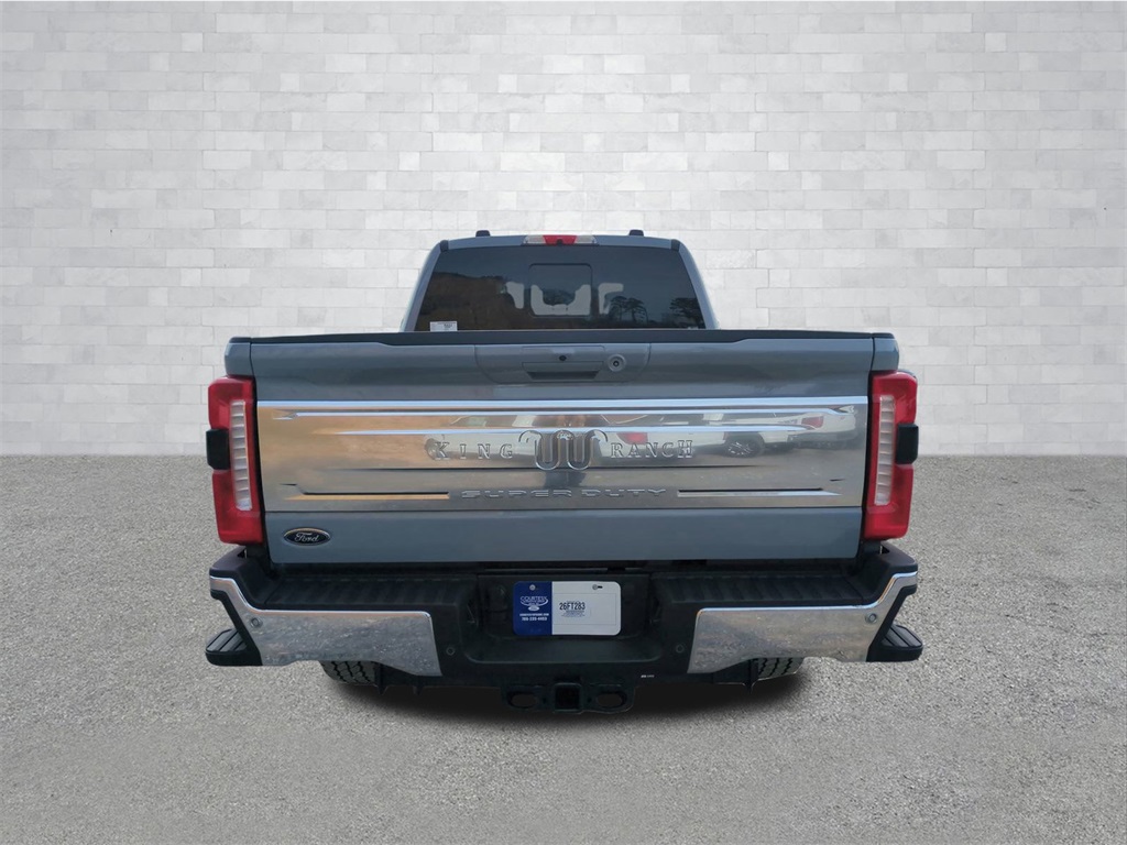 2026 Glacier Gray Metallic TriCoat 2026 Ford F-350SD King Ranch 4WD 6.7L High Output Power Stroke V8 Diesel 4WD, ABS brakes, Alloy wheels, Compass, Electronic Stability Control, Front dual zone A/C, Heated door mirrors, Heated front seats, Heated rear seats, Illuminated entry, Low tire pressure warning, Remote keyless entry, Traction control. Ford Connectivity Package (1-Year Included), Internet access capable: 5G Modem - Ford Connectivity Package, 4WD, ABS brakes, Alloy wheels, Compass, Electronic Stability Control, Front dual zone A/C, Heated door mirrors, Heated front seats, Heated rear seats, Illuminated entry, Low tire pressure warning, Remote keyless entry, Traction control, 14 Speakers, 4-Wheel Disc Brakes, Adjustable pedals, Air Conditioning, AM/FM radio: SiriusXM with 360L, Auto High-beam Headlights, Auto tilt-away steering wheel, Auto-dimming Rear-View mirror, Automatic temperature control, Brake assist, Delay-off headlights, Driver door bin, Driver vanity mirror, Dual front impact airbags, Dual front side impact airbags, Emergency communication system: SYNC 4 911 Assist, Flow-Through Console, Front anti-roll bar, Front Bucket Seats, Front Center Armrest, Front fog lights, Front reading lights, Fully automatic headlights, Garage door transmitter, Heads-Up Display, Heated steering wheel, Leather steering wheel, Memory seat, Navigation system: Connected Navigation, Outside temperature display, Overhead airbag, Overhead console, Panic alarm, Passenger door bin, Passenger vanity mirror, Pedal memory, Power door mirrors, Power driver seat, Power passenger seat, Power steering, Power windows, Radio: B&O Unleashed Sound System by Bang & Olufsen, Rain sensing wipers, Rear reading lights, Rear seat center armrest, Rear step bumper, Rear window defroster, Security system, Speed control, Split folding rear seat, Steering wheel memory, Steering wheel mounted A/C controls, Steering wheel mounted audio controls, Tachometer, Telescoping steering wheel, Tilt steering wheel, Trip computer, Turn signal indicator mirrors, Unique King Ranch Leather 40/Console/40 Seats, Variably intermittent wipers, Ventilated front seats, and Wheels: 20" Bright Machined Aluminum Courtesy Ford and Lincoln of Rome 101 Hwy 411 E Rome, Ga 30161 ROMEFORDLINC.COM 706.235.4453.