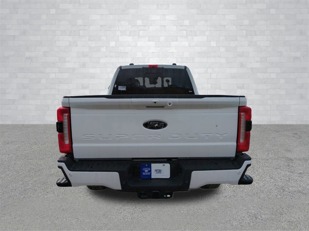 2026 Star White Metallic Tri-Coat 2026 Ford F-350SD Lariat 4WD Power Stroke 6.7L V8 DI 32V OHV Turbodiesel 12" LCD Productivity Touchscreen, 360-Degree Camera, 5G WiFi Hotspot Telematics, Auto Emergency Braking, Auto LED Headlights, Backup Camera, Blind Spot Monitoring, BLIS w/ Cross Traffic Alert, Bluetooth w/ Audio Streaming, Heavy Duty Trailer Package, Lane Departure Warning, Lariat Package, Memory Package, Parking Sensors, Power Mirror Package, Power Package, Power Sliding Rear Window, Pre Collision Assist w/ AEB, Preferred Equipment Package, Pro Trailer Backup Assist, Pro Trailer Hitch Assist, Reverse Brake Assist, Reverse Sensing, 4D Crew Cab, Power Stroke 6.7L V8 DI 32V OHV Turbodiesel, 10-Speed Automatic, 4WD, 410 Amp Dual Alternators, 5th Wheel/Gooseneck Hitch Prep Package, 6" Ebony Black Angular Running Boards, ABS brakes, Alloy wheels, Black Appearance Package, Black Painted Front Grille Surround, Compass, Dual AGM 68 AH Battery, Ebony Black Painted Mirror Caps, Electronic Stability Control, Ford Connectivity Package (1-Year Included), Front dual zone A/C, Heated door mirrors, Heated front seats, Heated rear seats, Illuminated entry, Internet access capable: 5G Modem - Ford Connectivity Package, Lariat Premium Package, Low tire pressure warning, Order Code 618A, Privacy Glass, Pro Trailer Backup Assist, Pro Trailer Hitch Assist, Rapid-Heat Supplemental Cab Heater, Remote keyless entry, Traction control, Wheels: 20" Ebony Black High Gloss. 5th Wheel/Gooseneck Hitch Prep Package, Black Appearance Package (6" Ebony Black Angular Running Boards, Black Painted Front Grille Surround, Ebony Black Painted Mirror Caps, and Wheels: 20" Ebony Black High Gloss), Ford Connectivity Package (1-Year Included), Internet access capable: 5G Modem - Ford Connectivity Package, Lariat Premium Package (Privacy Glass, Pro Trailer Backup Assist, and Pro Trailer Hitch Assist), Order Code 618A (3.73 Axle Ratio, Flow-Through Console, and Front ActiveX Trimmed 40/Console/40 Seats), 4D Crew Cab, Power Stroke 6.7L V8 DI 32V OHV Turbodiesel, 10-Speed Automatic, 4WD, 410 Amp Dual Alternators, ABS brakes, Alloy wheels, Compass, Dual AGM 68 AH Battery, Electronic Stability Control, Front dual zone A/C, Heated door mirrors, Heated front seats, Heated rear seats, Illuminated entry, Low tire pressure warning, Rapid-Heat Supplemental Cab Heater, Remote keyless entry, Traction control, 190 Amp Alternator, 4-Wheel Disc Brakes, 8 Speakers, Adjustable pedals, Air Conditioning, AM/FM radio: SiriusXM with 360L, Auto High-beam Headlights, Auto-dimming Rear-View mirror, Automatic temperature control, Brake assist, Bumpers: chrome, Delay-off headlights, Driver door bin, Driver vanity mirror, Dual front impact airbags, Dual front side impact airbags, Emergency communication system: SYNC 4 911 Assist, Front anti-roll bar, Front Bucket Seats, Front Center Armrest, Front fog lights, Front reading lights, Fully automatic headlights, Garage door transmitter, Heated steering wheel, Memory seat, Outside temperature display, Overhead airbag, Overhead console, Panic alarm, Passenger door bin, Passenger vanity mirror, Pedal memory, Power door mirrors, Power driver seat, Power passenger seat, Power steering, Power windows, Rain sensing wipers, Rear Parking Sensors, Rear reading lights, Rear seat center armrest, Rear step bumper, Rear window defroster, Security system, Speed control, Split folding rear seat, Steering wheel mounted audio controls, Tachometer, Telescoping steering wheel, Tilt steering wheel, Trip computer, Turn signal indicator mirrors, Variably intermittent wipers, and Ventilated front seats Courtesy Ford and Lincoln of Rome 101 Hwy 411 E Rome, Ga 30161 ROMEFORDLINC.COM 706.235.4453.