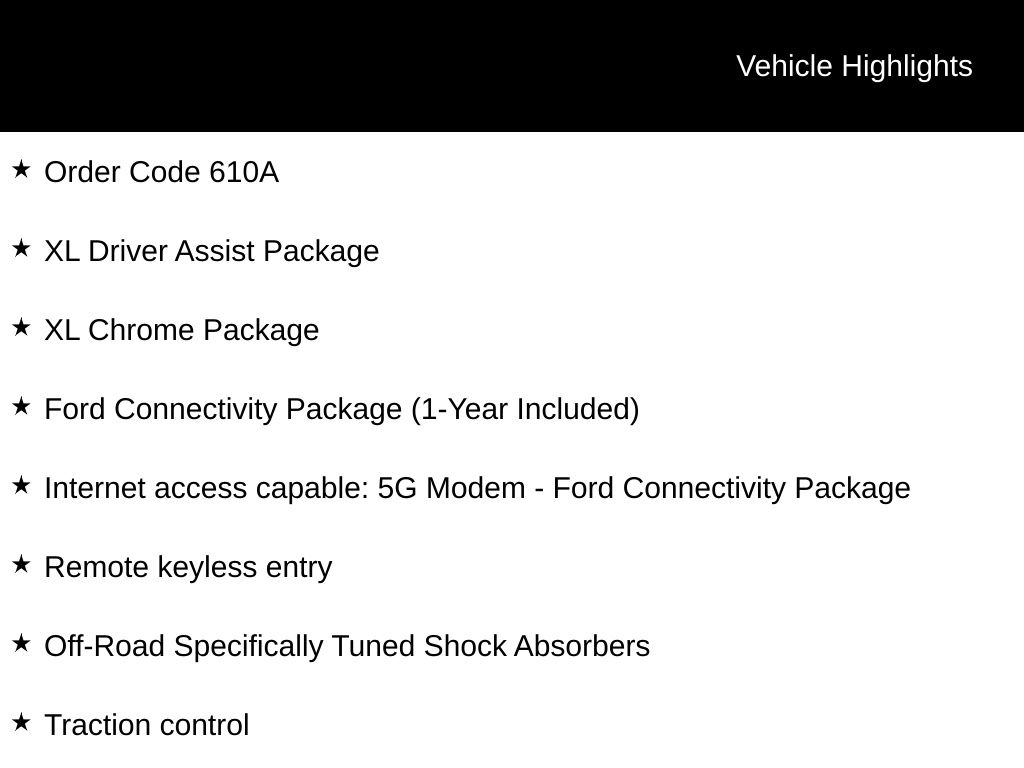 - Internet access capable: 5G Modem - Ford Connectivity Package
