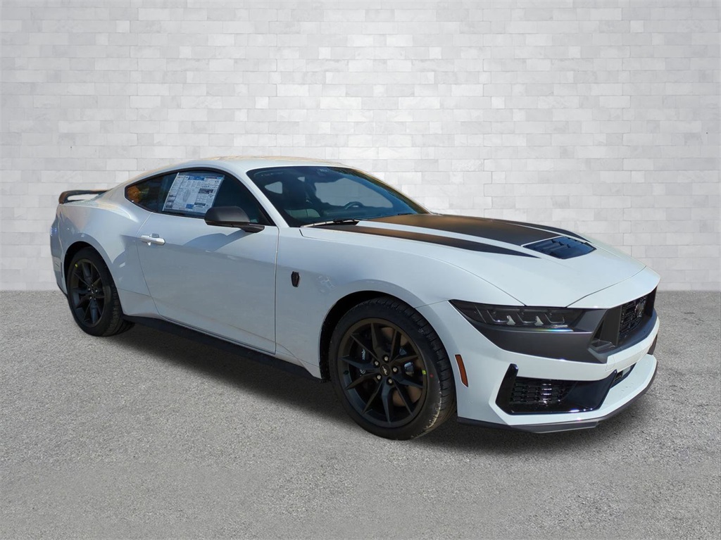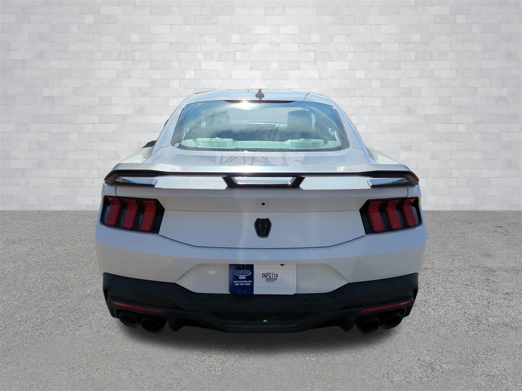 2026 Oxford White 2026 Ford Mustang Dark Horse RWD 5.0L V8 DOHC 32V 12" LCD Productivity Touchscreen, 12.4" LCD Digital Driver Cluster, 4G WiFi Hotspot Telematics, Auto LED Headlights, Backup Camera, Brembo Brakes w/ Performance Lingings, Mustang Dark Horse, 2D Coupe, 5.0L V8 DOHC 32V, RWD, Active Anti-Theft System, Aluminum Foot Pedals, Anti-Theft Package, Approach Detection, B&O Sound System by Bang & Olufsen, Cloth/Vinyl Climate-Controlled Bucket Seats, Equipment Group 700A Deluxe Package, Locking Center Console, Navigation system: Connected Navigation, Rain sensing wipers, Wheel Locking Kit. Anti-Theft Package (Active Anti-Theft System, Locking Center Console, and Wheel Locking Kit), Equipment Group 700A Deluxe Package (Aluminum Foot Pedals, Approach Detection, B&O Sound System by Bang & Olufsen, Cloth/Vinyl Climate-Controlled Bucket Seats, AM/FM Stereo, HD Radio, and SYNC 4), Mustang Dark Horse, 2D Coupe, 5.0L V8 DOHC 32V, RWD, Navigation system: Connected Navigation, Rain sensing wipers, 12 Speakers, 4-Wheel Disc Brakes, ABS brakes, Adaptive suspension, Air Conditioning, Alloy wheels, AM/FM radio: SiriusXM with 360L, Auto High-beam Headlights, Auto-dimming Rear-View mirror, Automatic temperature control, Brake assist, Bumpers: body-color, Cloth/Vinyl Heated Bucket Seats, Compass, Delay-off headlights, Driver door bin, Driver vanity mirror, Dual front impact airbags, Dual front side impact airbags, Electronic Stability Control, Emergency communication system: 911 Assist, Exterior Parking Camera Rear, Four wheel independent suspension, Front anti-roll bar, Front Bucket Seats, Front Center Armrest, Front dual zone A/C, Front reading lights, Fully automatic headlights, Heated front seats, Heated steering wheel, Illuminated entry, Knee airbag, Low tire pressure warning, Occupant sensing airbag, Outside temperature display, Overhead airbag, Overhead console, Panic alarm, Passenger door bin, Passenger vanity mirror, Power door mirrors, Power driver seat, Power passenger seat, Power steering, Power windows, Radio data system, Rear anti-roll bar, Rear Parking Sensors, Rear window defroster, Remote keyless entry, Speed control, Speed-sensing steering, Speed-Sensitive Wipers, Split folding rear seat, Spoiler, Sport steering wheel, Steering wheel mounted audio controls, Tachometer, Telescoping steering wheel, Tilt steering wheel, Traction control, Trip computer, and Voltmeter Courtesy Ford and Lincoln of Rome 101 Hwy 411 E Rome, Ga 30161 ROMEFORDLINC.COM 706.235.4453.