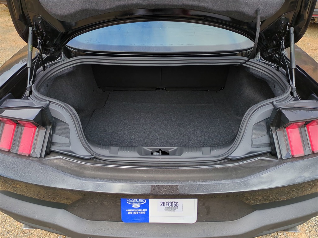 2026 Shadow Black 2026 Ford Mustang EcoBoost RWD EcoBoost 2.3L I4 GTDi DOHC Turbocharged VCT 12.4" LCD Digital Driver Cluster, 13.2" LCD Centerstack Touchscreen, Auto LED Headlights, Backup Camera, Parking Sensors, Power Mirror Package, Power Package, Push Button Start, Reverse Brake Assist, Reverse Sensing, 2D Coupe, EcoBoost 2.3L I4 GTDi DOHC Turbocharged VCT, 10-Speed Automatic, RWD, ABS brakes, Alloy wheels, Black Mirror Caps, Black Painted Wedge Decklid Spoiler, Compass, Electronic Stability Control, Equipment Group 100A Standard Package, Front dual zone A/C, Illuminated entry, Low tire pressure warning, Mustang Nite Pony Package, Painted Black Roof, Remote keyless entry, Traction control, Wheels: 19" x 8.5" Ebony Black-Painted Aluminum. Equipment Group 100A Standard Package (AM/FM Stereo, Cloth Bucket Seats, and SYNC 4), Mustang Nite Pony Package (Black Mirror Caps, Black Painted Wedge Decklid Spoiler, Painted Black Roof, and Wheels: 19" x 8.5" Ebony Black-Painted Aluminum), 2D Coupe, EcoBoost 2.3L I4 GTDi DOHC Turbocharged VCT, 10-Speed Automatic, RWD, ABS brakes, Alloy wheels, Compass, Electronic Stability Control, Front dual zone A/C, Illuminated entry, Low tire pressure warning, Remote keyless entry, Traction control, 4-Wheel Disc Brakes, 6 Speakers, Air Conditioning, AM/FM radio, Auto High-beam Headlights, Automatic temperature control, Brake assist, Bumpers: body-color, Delay-off headlights, Driver door bin, Driver vanity mirror, Dual front impact airbags, Dual front side impact airbags, Emergency communication system: 911 Assist, Exterior Parking Camera Rear, Four wheel independent suspension, Front anti-roll bar, Front Bucket Seats, Front Center Armrest, Front reading lights, Fully automatic headlights, Knee airbag, Leather Shift Knob, Occupant sensing airbag, Outside temperature display, Overhead airbag, Overhead console, Panic alarm, Passenger door bin, Passenger vanity mirror, Power door mirrors, Power steering, Power windows, Radio data system, Rain sensing wipers, Rear anti-roll bar, Rear Parking Sensors, Rear window defroster, Speed control, Speed-sensing steering, Speed-Sensitive Wipers, Split folding rear seat, Sport steering wheel, Steering wheel mounted audio controls, Tachometer, Telescoping steering wheel, Tilt steering wheel, Trip computer, and Voltmeter Courtesy Ford and Lincoln of Rome 101 Hwy 411 E Rome, Ga 30161 ROMEFORDLINC.COM 706.235.4453.