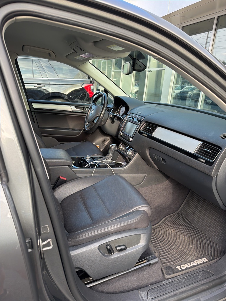 Canyon Gray Metallic 2016 Volkswagen Touareg VR6 FSI Sport AWD VR6 FSI Sport **LOCAL TRADE**, Backup Camera, Multi Zone Climate Control, Power Mirror Package, Power Package, 4D Sport Utility, 3.6L VR6, 8-Speed Automatic with Tiptronic, AWD, 4-Wheel Disc Brakes, 8 Speakers, ABS brakes, AM/FM radio: SiriusXM, Auto-dimming Rear-View mirror, Automatic temperature control, Brake assist, CD player, Compass, Delay-off headlights, Electronic Stability Control, Four wheel independent suspension, Front dual zone A/C, Front fog lights, Fully automatic headlights, Garage door transmitter: HomeLink, Heated door mirrors, Heated Front Comfort Seats w/Manual Lumbar Support, Heated front seats, High intensity discharge headlights: Bi-Xenon, Illuminated entry, Leather Shift Knob, Low tire pressure warning, Monster Mats Rubber Mat Kit (Set of 4), Outside temperature display, Overhead console, Panic alarm, Power door mirrors, Power driver seat, Power Liftgate, Power passenger seat, Power steering, Power windows, Radio data system, Rain sensing wipers, Rear seat center armrest, Rear window wiper, Remote keyless entry, Roof rack: rails only, Security system, Speed-sensing steering, Split folding rear seat, Spoiler, Steering wheel mounted audio controls, Telescoping steering wheel, Tilt steering wheel, Traction control, Trailer Hitch, Trip computer, Turn signal indicator mirrors, V-Tex Leatherette Seating Surfaces, Wheels: 18" Arica Alloy.