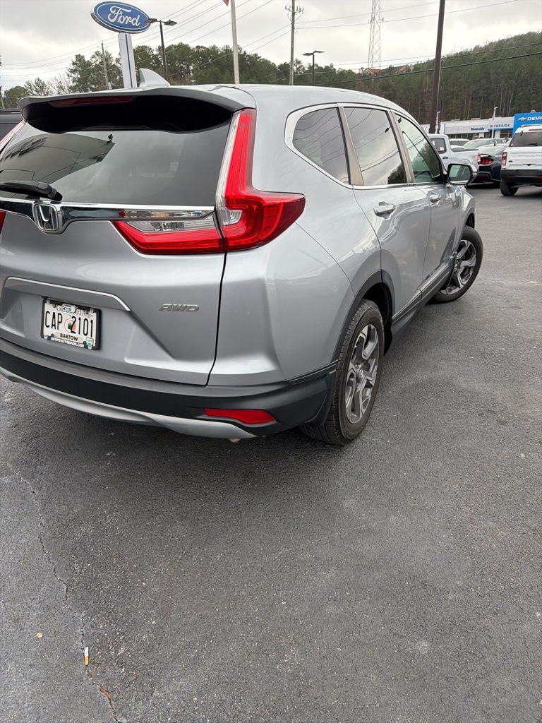 Lunar Silver Metallic 2018 Honda CR-V EX AWD AWD EX AWD 7" Color Touchscreen, Adaptive Cruise Control, Android Auto, Apple Carplay, Auto Emergency Braking, Backup Camera, Bluetooth w/ Audio Streaming, Driver Attention Warning, Parking Sensors, Power Mirror Package, Power Package, Rear Cross Traffic Alert, Reverse Sensing, Safety Package, 4D Sport Utility, 1.5L I4 DOHC 16V, CVT, AWD, 18" Alloy Wheels, 4-Wheel Disc Brakes, ABS brakes, AM/FM radio: SiriusXM, Apple CarPlay/Android Auto, Auto High-beam Headlights, Automatic temperature control, Blind Spot Information (BSI) System warning, Brake assist, Compass, Delay-off headlights, Electronic Stability Control, Exterior Parking Camera Rear, Four wheel independent suspension, Front Center Armrest, Front dual zone A/C, Front fog lights, Fully automatic headlights, Heated door mirrors, Heated Front Bucket Seats, Heated front seats, Illuminated entry, Low tire pressure warning, Outside temperature display, Overhead console, Panic alarm, Power door mirrors, Power driver seat, Power steering, Power windows, Radio data system, Radio: AM/FM Audio System w/6 Speakers, Rear seat center armrest, Rear window wiper, Remote keyless entry, Security system, Speed control, Speed-sensing steering, Speed-Sensitive Wipers, Split folding rear seat, Spoiler, Steering wheel mounted audio controls, Telescoping steering wheel, Tilt steering wheel, Traction control, Trip computer, Turn signal indicator mirrors.