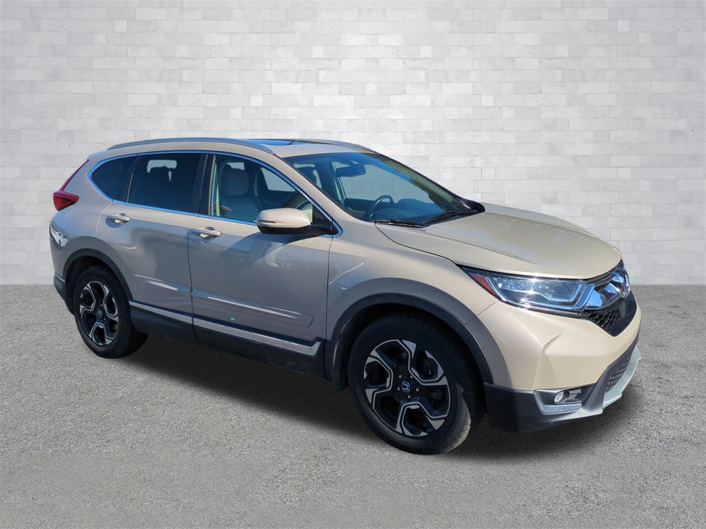 Sandstorm Metallic 2018 Honda CR-V Touring FWD Touring **LOCAL TRADE**, 7" Color Touchscreen, Adaptive Cruise Control, Android Auto, Apple Carplay, Auto Emergency Braking, Backup Camera, Blind Spot Monitoring, Bluetooth w/ Audio Streaming, Foward Collison Alert, Leather Seats, Parking Sensors, Power Mirror Package, Power Package, Premium Audio Package, Premium Sound Package, Rear Cross Traffic Alert, Reverse Brake Assist, Reverse Sensing, Safety Package, 330-Watt 9-speaker Premium Sound System, 4D Sport Utility, 1.5L I4 DOHC 16V, CVT, FWD, 18" Alloy Wheels, 4-Wheel Disc Brakes, 9 Speakers, ABS brakes, AM/FM radio: SiriusXM, Apple CarPlay/Android Auto, Auto High-beam Headlights, Auto-dimming Rear-View mirror, Automatic temperature control, Blind Spot Information (BSI) System warning, Brake assist, Delay-off headlights, Electronic Stability Control, Exterior Parking Camera Rear, Four wheel independent suspension, Front Center Armrest, Front dual zone A/C, Front fog lights, Fully automatic headlights, Garage door transmitter: HomeLink, Heated Front Bucket Seats, Heated front seats, Illuminated entry, Leather Seat Trim, Leather Shift Knob, Low tire pressure warning, Memory seat, Navigation System, Outside temperature display, Overhead console, Panic alarm, Power door mirrors, Power driver seat, Power Liftgate, Power moonroof, Power passenger seat, Power steering, Power windows, Radio data system, Rain sensing wipers, Rear seat center armrest, Rear window wiper, Remote keyless entry, Roof rack: rails only, Security system, Speed control, Speed-sensing steering, Speed-Sensitive Wipers, Split folding rear seat, Spoiler, Telescoping steering wheel, Tilt steering wheel, Traction control, Trip computer, Turn signal indicator mirrors.