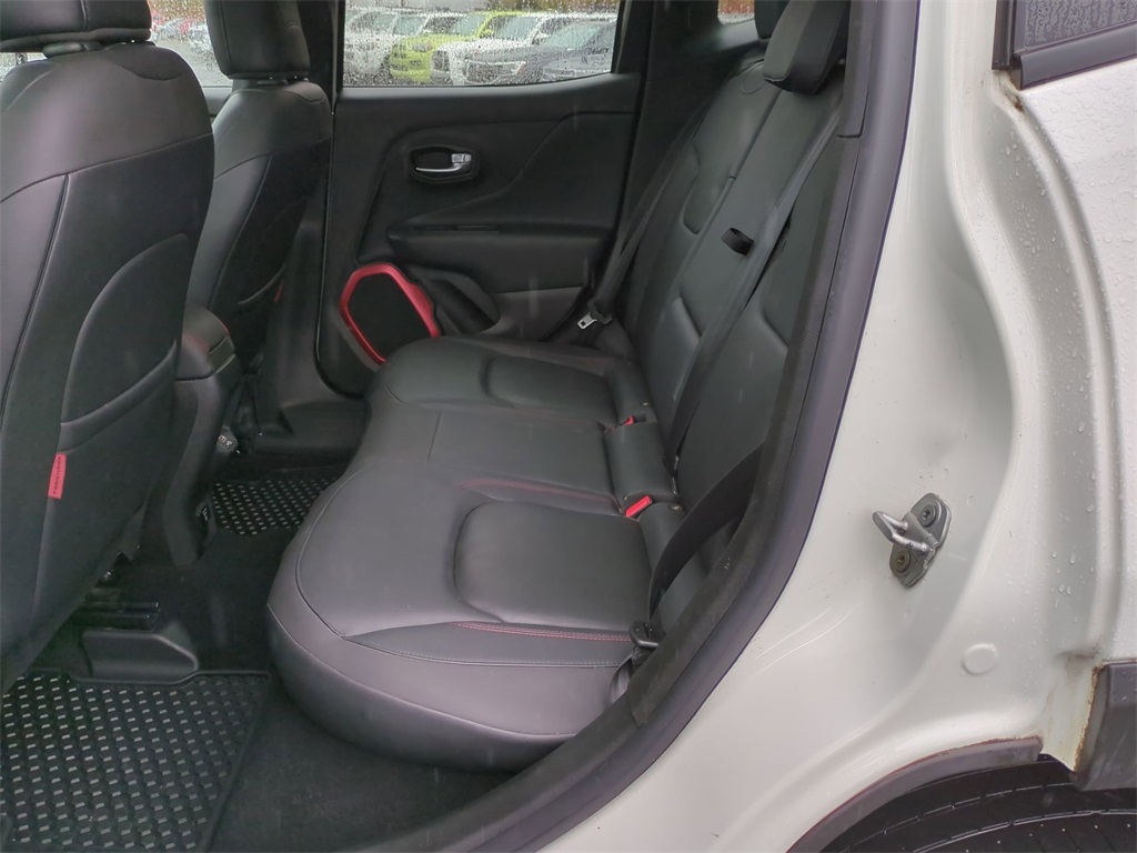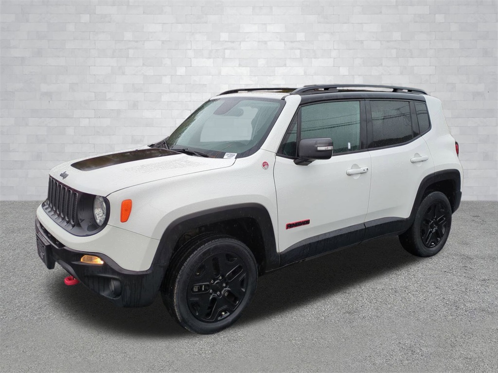 Alpine White 2018 Jeep Renegade Trailhawk 4WD 4WD Trailhawk 4WD Android Auto, Apple Carplay, Backup Camera, Bi Xenon Headlamp Package, Blind Spot Monitoring, Bluetooth w/ Audio Streaming, Cold Weather Package, Hill Descent Control, Hill Start Assist, Leather Seats, Panoramic Sunroof/Moonroof, Parking Sensors, Power Mirror Package, Power Package, Preferred Equipment Package, Rear Cross Traffic Alert, Remote Start, Reverse Brake Assist, Reverse Sensing, Skid Plate Package, 4D Sport Utility, 2.4L I4, 9-Speed 948TE Automatic, 4WD, 4-Wheel Disc Brakes, 40/20/40 Rear Seat w/Trunk Pass-Thru, 8.4" Touchscreen Display, ABS brakes, AM/FM radio: SiriusXM, Apple CarPlay/Android Auto, Auto-Dimming Rear-View Mirror, Automatic temperature control, Blind Spot & Cross Path Detection, Brake assist, Cluster 7" TFT Color Display, Compass, Delay-off headlights, Dual-Pane Panoramic Power Sunroof, Electronic Stability Control, Engine Oil Cooler, Four wheel independent suspension, Front Center Armrest, Front dual zone A/C, Front fog lights, Front Seat Back Map Pockets, Fully automatic headlights, GPS Navigation, HD Radio, Heated door mirrors, Heated Front Seats, Heated Steering Wheel, High-Intensity Discharge Headlamps, Illuminated entry, Leather Shift Knob, Leather steering wheel, Low tire pressure warning, Navigation System, Outside temperature display, Panic alarm, ParkView Rear Back-Up Camera, Passive Entry Remote Start Package, Passive Entry/Keyless Go, Power 8-Way Driver Manual 4-Way Passenger Seats, Power door mirrors, Power steering, Power windows, Premium Cloth Low-Back Bucket Seats, Premium Leather Group For Trailhawk, Premium Leather Trimmed Bucket Seats, Quick Order Package 2EE, Radio data system, Radio: Uconnect 4C Nav w/8.4" Display, Rain sensing wipers, Rear window wiper, Remote keyless entry, Roof rack: rails only, Safety & Security Group, Security Alarm, SiriusXM Traffic Plus, SiriusXM Travel Link, Speed control, Split folding rear seat, Spoiler, Steering wheel mounted audio controls, Telescoping steering wheel, Tilt steering wheel, Tonneau Cover, Traction control, Trip computer, Turn signal indicator mirrors, Uconnect 8.4 Nav Group, Wheels: 17" x 6.5" Semi-Gloss Black Aluminum, Windshield Wiper De-Icer.