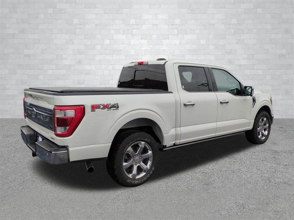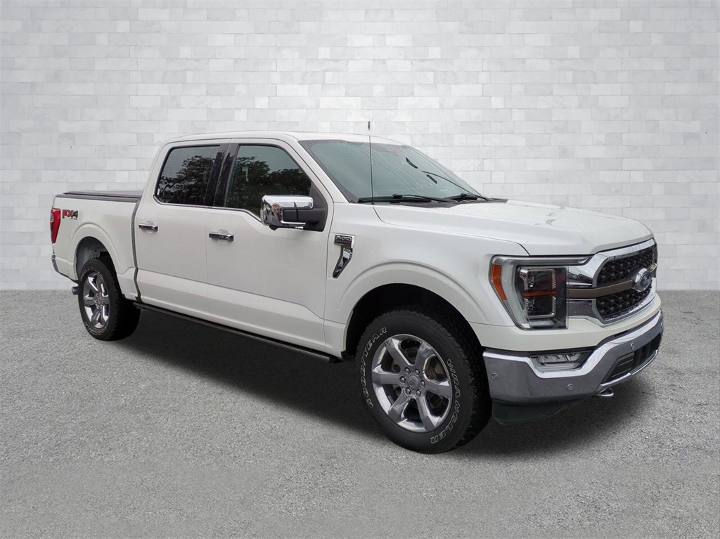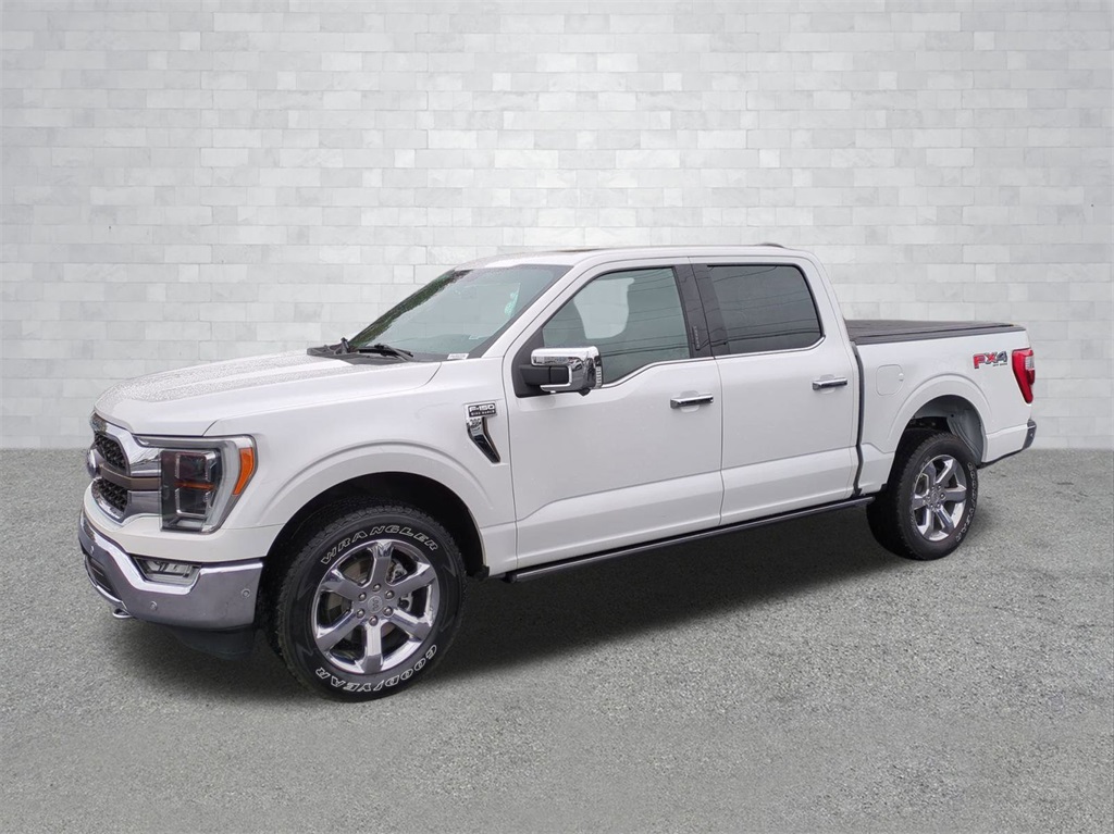 Star White Metallic Tri-Coat 2021 Ford F-150 King Ranch 4WD 4WD King Ranch 4WD **LOCAL TRADE**, 12" LCD Productivity Touchscreen, 360-Degree Camera, 4G WiFi Hotspot Telematics, Active Park Assist, Adaptive Cruise Control, Adaptive Steering, Auto Emergency Braking, Backup Camera, Bluetooth w/ Audio Streaming, Cold Weather Package, Evasive Steering Assist, King Ranch Package, Lane Keeping System, Leather Seats, LED Foglights, LED Projector Headlights, Memory Package, Off Road Package, Panoramic Sunroof/Moonroof, Parking Sensors, Post Collision Braking, Power Mirror Package, Power Package, Power Running Boards, Power Sliding Rear Window, Pre Collision Assist w/ AEB, Premium Audio Package, Premium Sound Package, Reverse Brake Assist, Reverse Sensing, Skid Plate Package, Tow Package, Trailer Package, Wireless Charging Pad, 4D SuperCrew, 3.5L V6 EcoBoost, 10-Speed Automatic, 4WD, 20" Machined-Aluminum Wheels, 360 Degree Camera, 4-Wheel Disc Brakes, 4x4 FX4 Off-Road Bodyside Decal, ABS brakes, Active Park Assist 2.0, Adjustable pedals, AM/FM radio: SiriusXM with 360L, Auto High-beam Headlights, Auto tilt-away steering wheel, Auto-dimming door mirrors, Auto-dimming Rear-View mirror, Automatic temperature control, BlueCruise Hands-Free Driving, Brake assist, Bright Belt Moldings, Chrome Door Handles w/Body-Color Strap, Chrome Skull Caps on Exterior Mirrors, Class IV Trailer Hitch Receiver, Compass, Delay-off headlights, Electronic Locking w/3.31 Axle Ratio, Electronic Stability Control, Emergency communication system: SYNC 4 911 Assist, Equipment Group 601A High, Extended Range 36 Gallon Fuel Tank, Exterior Parking Camera Rear, Ford Co-Pilot360 Active 2.0 Package, Front Center Armrest, Front dual zone A/C, Front fog lights, Front wheel independent suspension, Fully automatic headlights, FX4 Off-Road Package, Garage door transmitter, Genuine wood console insert, Genuine wood dashboard insert, Genuine wood door panel insert, Heated door mirrors, Heated front seats, Heated rear seats, Heated steering wheel, Hill Descent Control, Illuminated entry, Integrated Trailer Brake Controller, Interior Work Surface, King Ranch Chrome Appearance Package, King Ranch Leather Bucket Seats, King Ranch Monochromatic Paint Package, LED Sideview Mirror Spotlights, Low tire pressure warning, Max Trailer Tow Package, Memory seat, Monotube Rear Shocks, Navigation system: Connected Navigation (90-Day Trial), Off-Road Tuned Front Shock Absorbers, Outside temperature display, Overhead console, Painted Body-Color Wheellip Molding, Panic alarm, Pedal memory, Power door mirrors, Power passenger seat, Power Tailgate, Power-Deployable Running Boards, Pro Trailer Backup Assist, Radio: B&O Sound System by Bang & Olufsen, Radio: B&O Unleashed Sound System by Bang & Olufsen, Rain sensing wipers, Rear seat center armrest, Rear step bumper, Remote keyless entry, Rock Crawl Mode, Security system, Speed-sensing steering, Split folding rear seat, Steering wheel memory, Steering wheel mounted audio controls, SYNC 4 w/Enhanced Voice Recognition, Telescoping steering wheel, Tilt steering wheel, Traction control, Tray Style Floor Liner, Trip computer, Turn signal indicator mirrors, Twin Panel Moonroof, Ventilated front seats, Wheels: 20" Chrome-Like PVD.