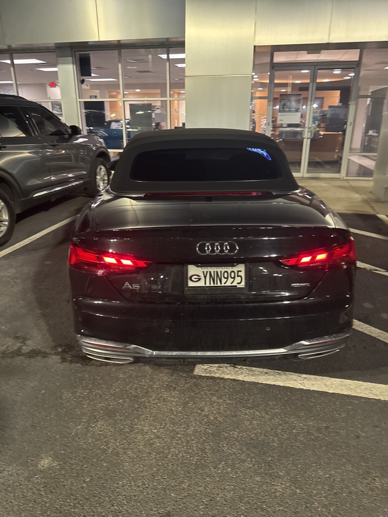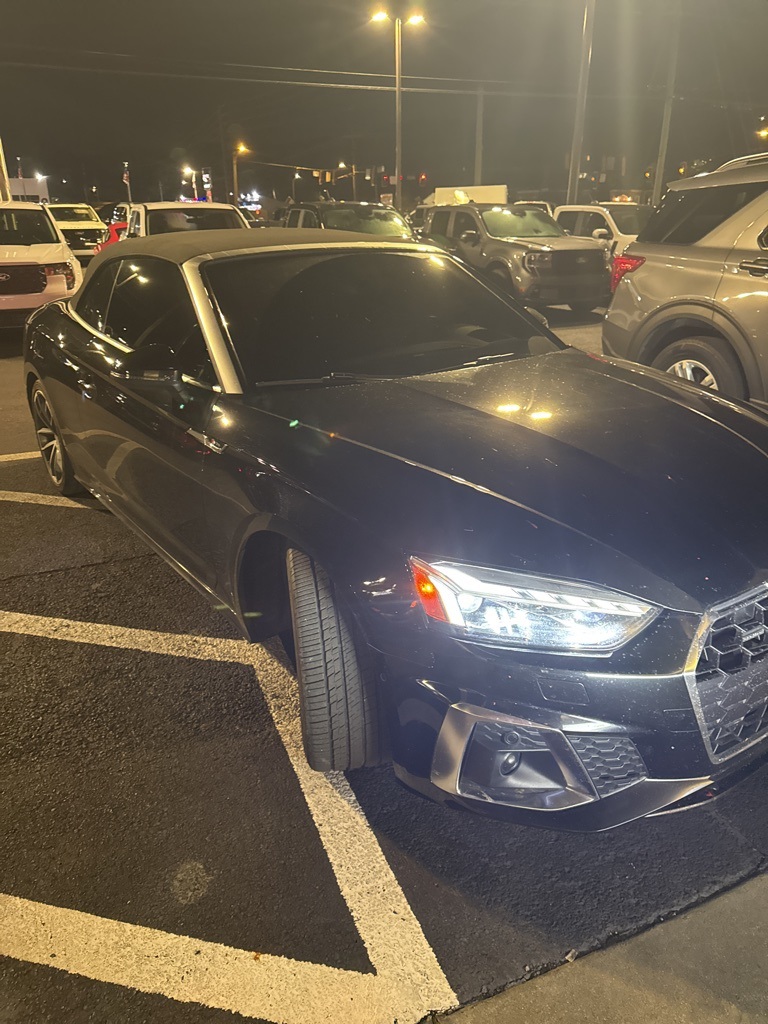 Mythos Black Metallic/Black Roof 2023 Audi A5 45 S line Prestige Convertible quattro 45 S line Prestige Convertible **LOCAL TRADE**, 360-Degree Camera, Adaptive Cruise Control, Android Auto, Apple Carplay, Auto LED Headlights, Backup Camera, Blind Spot Monitoring, Bluetooth w/ Audio Streaming, Cold Weather Package, Lane Departure Warning, Lane Keeping System, Leather Seats, Memory Package, Multi Zone Climate Control, Parking Sensors, Power Mirror Package, Premium Audio Package, Premium Sound Package, Push Button Start, Rear Cross Traffic Alert, Reverse Brake Assist, Reverse Sensing, Safety Package, WiFi Hotspot Capable, 2D Convertible, 2.0L 4-Cylinder TFSI, 7-Speed Automatic S tronic, quattro, 10 Speakers, 4-Wheel Disc Brakes, ABS brakes, Adaptive Cruise Control, Alarm System w/Motion Sensor, Animation for Headlights & Taillights, Audi Active Lane Assist, Audi Advanced Key, Audi Connect PLUS, Audi Laser Light w/Headlight Washers, Audi Phone Box, Audi Side Assist w/Pre Sense Rear, Audi Virtual Cockpit Plus, Auto High-beam Headlights, Auto-Dimming Exterior Mirrors w/Memory, Auto-dimming Rear-View mirror, Automatic temperature control, Bang & Olufsen Sound System w/3D Sound, Brake assist, Compass, Convenience Package, Convertible roof lining, Convertible roof wind blocker, Delay-off headlights, Driver Seat Memory, Electronic Stability Control, Emergency communication system: Audi connect CARE, Exterior Parking Camera Rear, Four wheel independent suspension, Front Center Armrest, Front dual zone A/C, Front fog lights, Garage door transmitter: HomeLink, Genuine wood console insert, Genuine wood dashboard insert, Genuine wood door panel insert, Glass rear window, Hands-On Detection Steering Wheel, Head-Up Display, Heated door mirrors, Heated Front Sport Seats, Heated Steering Wheel, Illuminated entry, Integrated roll-over protection, Leather Seating Surfaces, Leather Shift Knob, Leather steering wheel, Leatherette Covered Center Console & Door Armrests, LED Interior Lighting Plus Package, Low tire pressure warning, MMI Navigation Plus, Navigation Package, Navigation System, Neck-Level Heating System, Outside temperature display, Panic alarm, Park Assist, Parking System Plus (Front/Rear Acoustic Sensors), Power convertible roof, Power door mirrors, Power Folding Exterior Mirrors, Power passenger seat, Prestige, Radio data system, Radio: Audi Sound System, Rain sensing wipers, Rear air conditioning, Remote keyless entry, SiriusXM w/360L, Speed-sensing steering, Speed-Sensitive Wipers, Split folding rear seat, Steering wheel mounted audio controls, Telescoping steering wheel, Tilt steering wheel, Top View Camera System, Traction control, Traffic Jam Assist, Traffic Sign Recognition, Trip computer, Ventilated Front Seats, Warm Weather Package, Wheels: 18" 5-Double-Spoke Design.