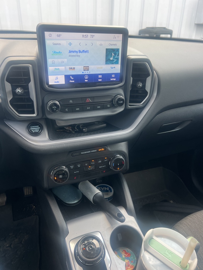 Iconic Silver Metallic 2023 Ford Bronco Sport Big Bend 4WD 4WD Big Bend 4WD 8" Color Touchscreen, Auto LED Headlights, Backup Camera, LED Foglights, Parking Sensors, Power Mirror Package, Power Package, Reverse Brake Assist, Reverse Sensing, Sunroof/Moonroof, Tow Package, Trailer Package, Wireless Charging Pad, 4D Sport Utility, 1.5L EcoBoost, 8-Speed Automatic, 4WD, 4-Wheel Disc Brakes, ABS brakes, AM/FM radio: SiriusXM, AM/FM Stereo, Auto High-beam Headlights, Automatic temperature control, Brake assist, Class II Trailer Tow Package w/Trailer Sway Control, Compass, Convenience Package, Delay-off headlights, Electronic Stability Control, Emergency communication system: SYNC 3 911 Assist, Equipment Group 200A, Evasive Steering Assist, Ford Co-Pilot360 Assist+, Four wheel independent suspension, Front Center Armrest, Front Driver & Passenger Seatback Zipper Pockets, Fully automatic headlights, Heated door mirrors, Heated Front Bucket Seats, Illuminated entry, Intelligent Access (Lock/Unlock), Intelligent Adaptive Cruise Control w/Stop & Go, Leather-Wrapped Steering Wheel, LED Fog Lamps, Low tire pressure warning, Outside temperature display, Overhead console, Power door mirrors, Power Moonroof, Power steering, Power windows, Radio data system, Rear Parking Sensors, Rear seat center armrest, Remote keyless entry, SiriusXM, Speed-sensing steering, Speed-Sensitive Wipers, Split folding rear seat, Steering wheel mounted audio controls, SYNC 3 Communications & Entertainment System, SYNC 3/Apple CarPlay/Android Auto, Telescoping steering wheel, Tilt steering wheel, Traction control, Trip computer, Universal Garage Door Opener (UGDO), Voice-Activated Touchscreen Navigation System, Wheels: 17" Carbonized Gray-Painted Aluminum, Wireless Charging Pad.
