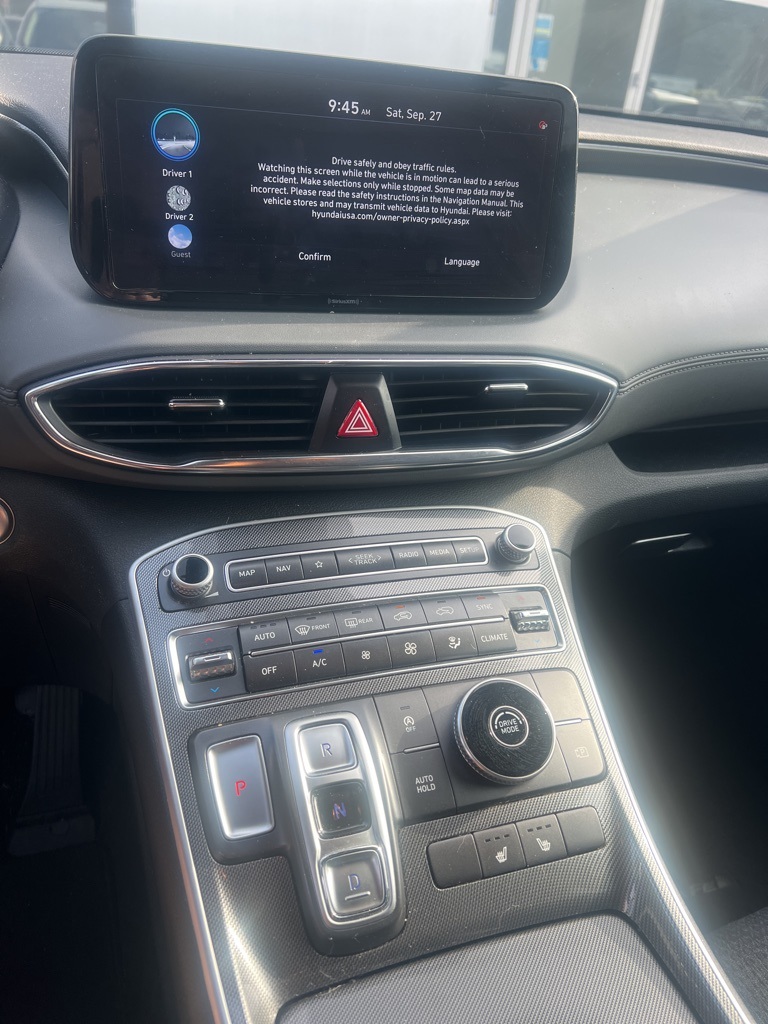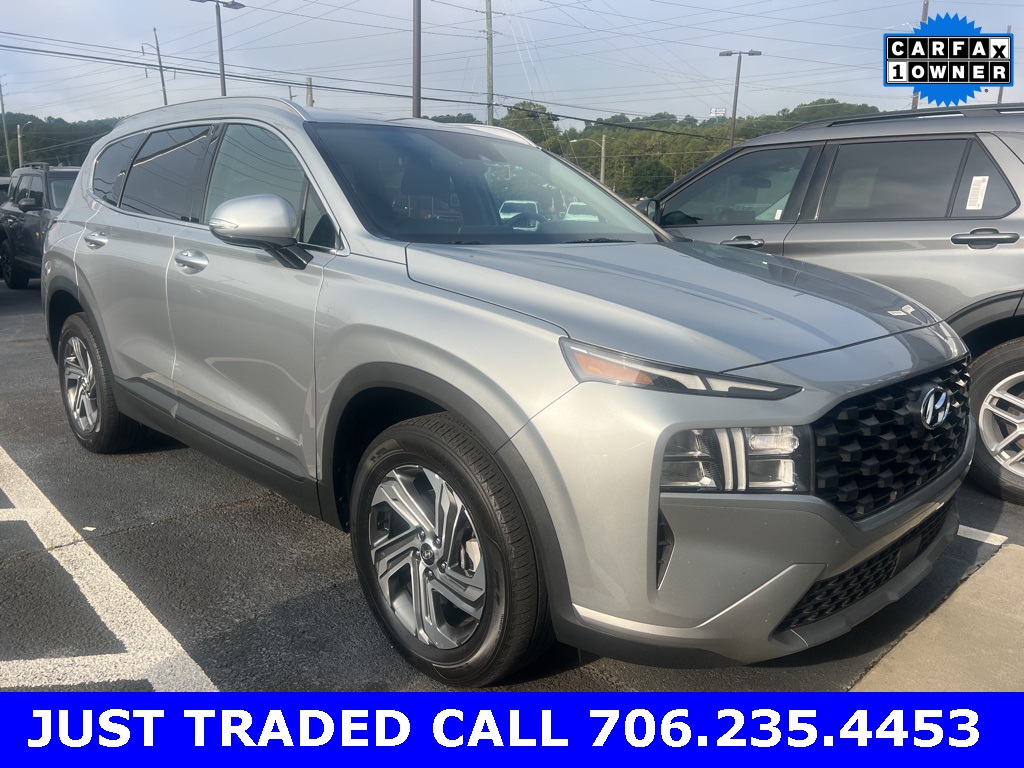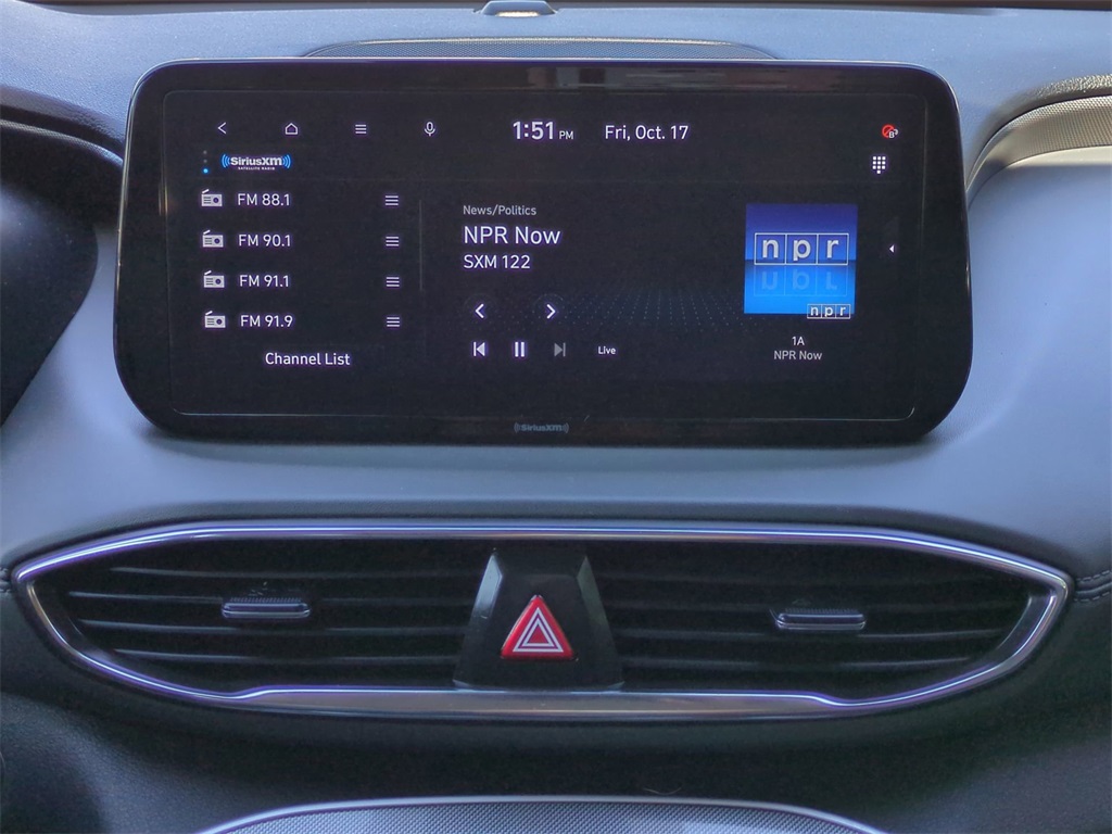 Shimmering Silver Pearl 2023 Hyundai Santa Fe SEL FWD SEL **LOCAL TRADE**, 10.25" Color Touchscreen, Android Auto, Apple Carplay, Auto LED Headlights, Backup Camera, Blind Spot Monitoring, Bluetooth w/ Audio Streaming, Driver Attention Warning, Lane Keeping System, Multimedia Package, Parking Sensors, Power Mirror Package, Power Package, Push Button Start, Rear Cross Traffic Alert, Reverse Brake Assist, Reverse Sensing, Safety Package, Wireless Charging Pad, 4D Sport Utility, 2.5L I4, 8-Speed Automatic with SHIFTRONIC, FWD, 18" x 7.5J Alloy Wheels, 4-Wheel Disc Brakes, ABS brakes, AM/FM radio: SiriusXM, Apple CarPlay & Android Auto, Auto High-beam Headlights, Automatic temperature control, Brake assist, Delay-off headlights, Electronic Stability Control, Emergency communication system, Exterior Parking Camera Rear, First Aid Kit, Four wheel independent suspension, Front Center Armrest, Front dual zone A/C, Fully automatic headlights, Heated door mirrors, Heated Front Bucket Seats, Illuminated entry, Low tire pressure warning, Navigation System, Option Group 01, Outside temperature display, Overhead console, Panic alarm, Power door mirrors, Power driver seat, Power Liftgate, Power steering, Power windows, Radio: AM/FM Display Audio, Rear seat center armrest, Rear window wiper, Remote keyless entry, Security system, Speed control, Speed-sensing steering, Split folding rear seat, Spoiler, Stain-Resistant Cloth Seat Trim, Steering wheel mounted audio controls, Telescoping steering wheel, Tilt steering wheel, Traction control, Trip computer, Turn signal indicator mirrors, Variably intermittent wipers.