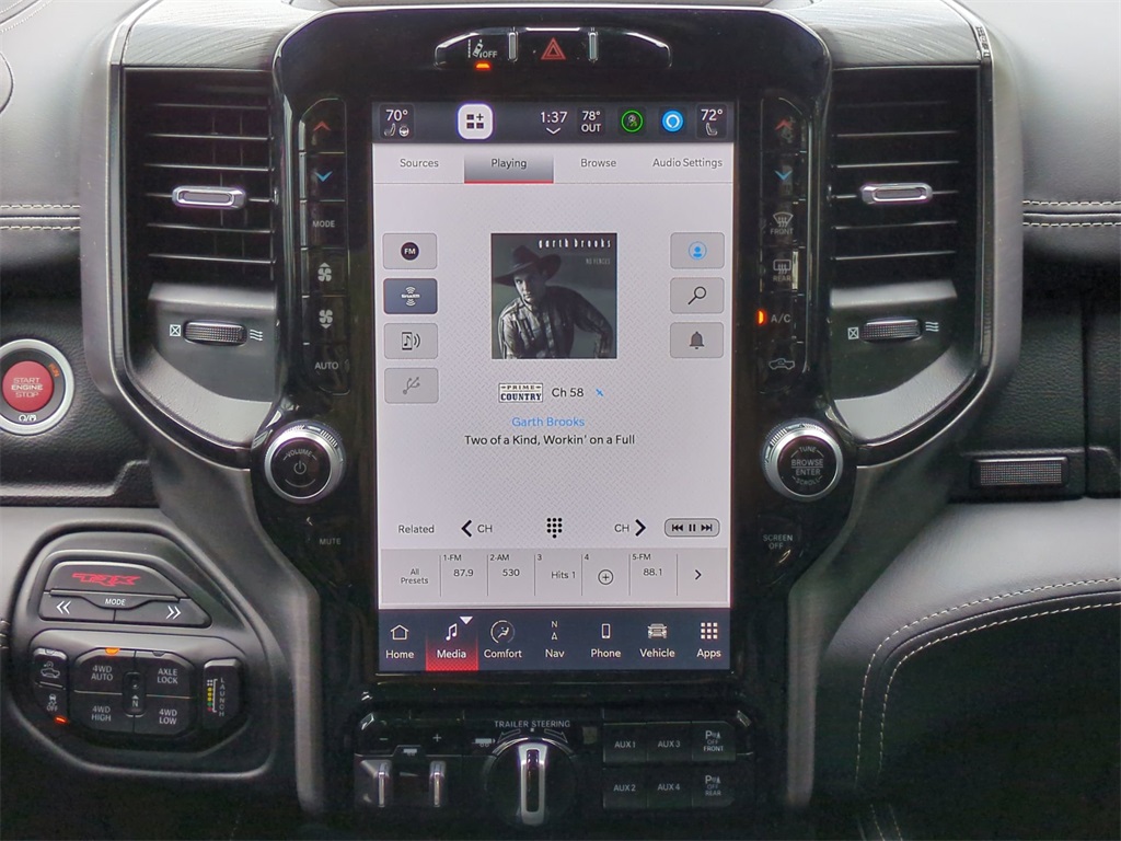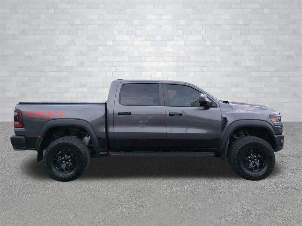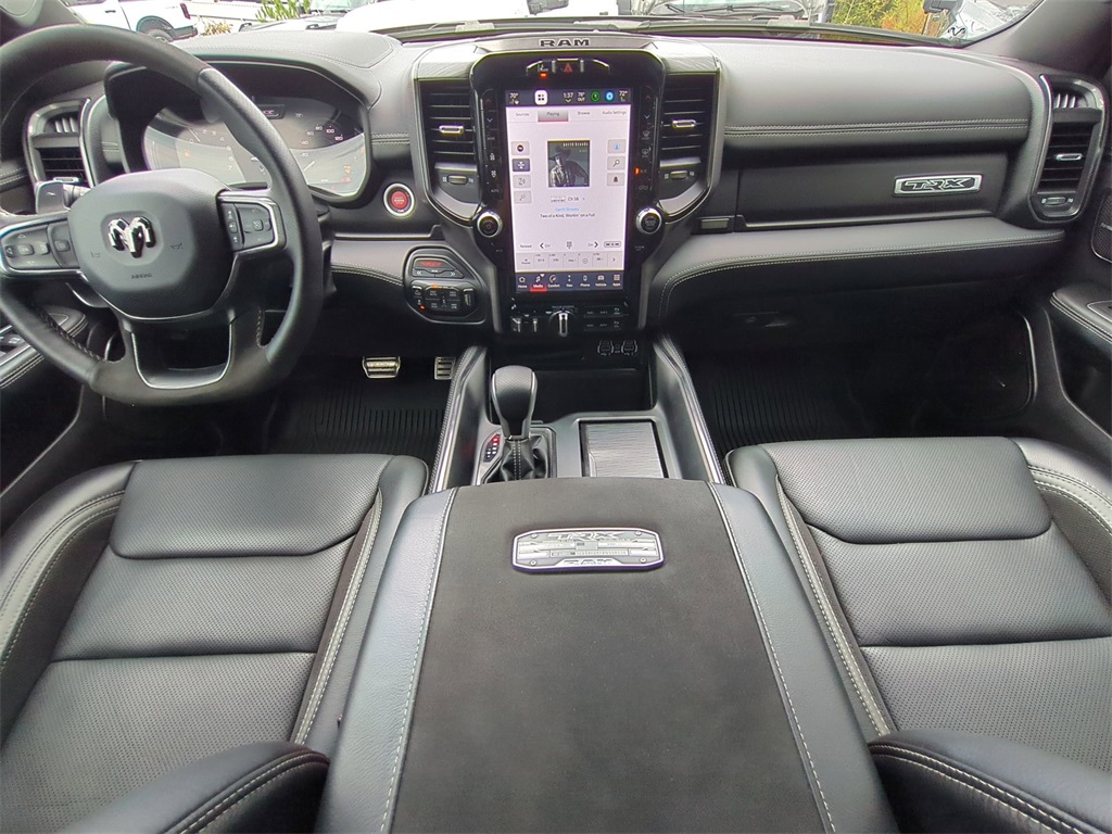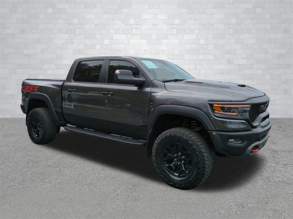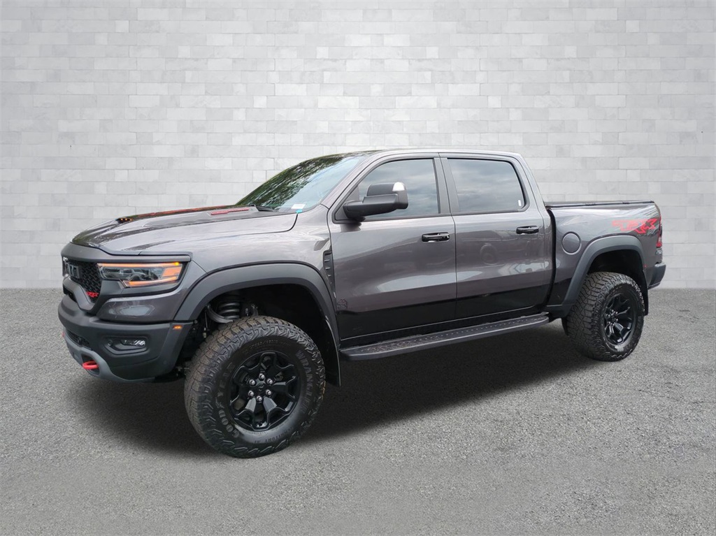 Granite Crystal Metallic Clearcoat 2023 Ram 1500 TRX 4WD 4WD TRX 4WD 12" LCD Productivity Touchscreen, Adaptive Suspension, Android Auto, Apple Carplay, Backup Camera, Blind Spot Monitoring, Bluetooth w/ Audio Streaming, Cold Weather Package, Front & Rear Park Assist, Front Pedestrian Braking, Hill Descent Control, Lane Keeping System, Leather Seats, LED Foglights, Memory Package, Multimedia Package, Off Road Package, Parking Sensors, Performance Handling Package, Performance Package, Power Mirror Package, Power Package, Power Sliding Rear Window, Preferred Equipment Package, Premium Audio Package, Premium Sound Package, Pro Trailer Backup Assist, Pro Trailer Hitch Assist, Push Button Start, Rear Cross Traffic Alert, Remote Start, Reverse Brake Assist, Reverse Sensing, Safety Package, Skid Plate Package, Tow Package, Trailer Package, TUNER, Upgraded Exhaust, 4D Crew Cab, 6.2L Supercharged HEMI V8 SRT, 8-Speed Automatic, 4WD, #2 Seat Foam Cushion, 2-Door Passive Entry, Front Door Locks, 4 Way Front Headrests, 4-Wheel Disc Brakes, ABS brakes, Accent Color Door Handles, Adaptive Cruise Control w/Stop & Go, Advanced Safety Group, Apple CarPlay/Android Auto, Auto High-beam Headlights, Auto-dimming door mirrors, Auto-dimming Rear-View mirror, Automatic temperature control, Black Exterior Mirrors, Black Power-Fold Trailer Tow Mirrors, Blind Spot & Cross Path Detection, Bucket Seats, Center Console Parts Module, Compass, Delay-off headlights, Digital Rearview Mirror, Driver Seat Memory, Driver/Passenger Wrapped Assist Handles, Electronic Stability Control, Exterior Mirrors Courtesy Lamps, Exterior Mirrors w/Heating Element, Exterior Mirrors w/Memory, Exterior Mirrors w/Supplemental Signals, Front Center Armrest w/Storage, Front Door Accent Lighting, Front dual zone A/C, Front fog lights, Front Seat Back Map Pockets, Front wheel independent suspension, Full Length Premium Upgraded Floor Console, Fully automatic headlights, harman/kardon 19 Speaker Premium Sound, Heads-Up Display, Heated door mirrors, Heated Front Seats, Heated Second Row Seats, Heated Steering Wheel, Illuminated entry, IP LED Ambient Light Pipe, Lane Keep Assist, Leather Shift Knob, Leather steering wheel, Leather Trimmed Bucket Seats, Leather/Suede Flat-Bottom Steering Wheel, LED CHMSL Lamp, Low tire pressure warning, Luxury Front Door Trim Panel, Mirror Clearance/Running Lights, Mirror-Mounted Aux Reverse Lamps, MOPAR Bright Pedal Kit, MOPAR Off-Road Style Running Boards, Navigation System, Outside temperature display, Overhead console, ParkSense Front/Rear Park Assist w/Stop, ParkView Rear Back-Up Camera, Pedestrian Emergency Braking, Pick-Up Box Lighting, Power 4-Way Driver Lumbar Adjust, Power 4-Way Passenger Lumbar Adjust, Power 8-Way Driver & Passenger Seats, Power Adjustable Pedals w/Memory, Power door mirrors, Power-Folding Mirrors, Premium Wrapped IP Bezel, Quick Order Package 29Y, Radio data system, Radio: Uconnect 5 Nav w/12.0" Display, Radio/Driver Seat/Mirrors/Pedals Memory, Rain Sensitive Windshield Wipers, Rear 60/40 Folding Seat, Rear 60/40 Folding Split Recline Seat, Rear Door Accent Lighting, Rear seat center armrest, Rear step bumper, Rear Underseat Compartment Storage, Rear Window Defroster, Remote keyless entry, Remote Tailgate Release, Sport steering wheel, Steering wheel mounted audio controls, Sun Visors w/Illuminated Vanity Mirrors, Surround View Camera System, Tailgate Ajar Warning Lamp, Telescoping steering wheel, Tilt steering wheel, Traction control, Trailer Brake Control, Trailer Reverse Steering Control, Trailer Tow Mirrors, Trip computer, TRX Level 2 Equipment Group, Turn signal indicator mirrors, Universal Garage Door Opener, Ventilated Front Seats, Ventilated Rear Seats, Wheels: 18" x 9" Black Paint/Polish Aluminum, Wireless Charging Pad.