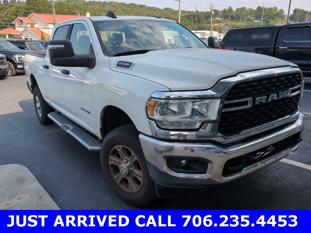 Bright White Clearcoat 2023 Ram 2500 Big Horn 4WD 4WD Big Horn 4WD **LOCAL TRADE**, 4G WiFi Hotspot Telematics, Android Auto, Apple Carplay, Backup Camera, Bluetooth w/ Audio Streaming, Hill Start Assist, Power Mirror Package, Power Package, Preferred Equipment Package, Tow Package, Trailer Package, 4D Crew Cab, 6.4L V8, 8-Speed Automatic, 4WD, 2 Way Rear Headrest Seat, 2nd Row In Floor Storage Bins, 4 Way Front Headrests, 4-Wheel Disc Brakes, 40/20/40 Split Bench Seat, 4G LTE Wi-Fi Hot Spot, 6 Speakers, 8.4" Touchscreen Display, ABS brakes, Active Noise Control System, Apple CarPlay, Auto Power-Folding Mirrors, Auto-dimming Rear-View mirror, Big Horn IP Badge, Black Exterior Mirrors, Bluetooth Handsfree Phone & Audio, Brake assist, Chrome Flat Cab-Length Side Steps, Connectivity - US/Canada, Delay-off headlights, Dual Glove Boxes, Electronic Stability Control, Emergency communication system: SiriusXM Guardian, Exterior Mirrors Courtesy Lamps, Exterior Mirrors w/Heating Element, Exterior Mirrors w/Supplemental Signals, Foam Bottle Insert (Door Trim Panel), Footwell Courtesy Lamp, Forward & Reverse Utility Lights, Front Armrest w/Cupholders, Front Center Armrest w/Storage, Front Center Seat Cushion Storage, Front Fog Lamps, Front Seat Back Map Pockets, Fully automatic headlights, Global Telematics Box Module (TBM), Glove Box Lamp, Google Android Auto, GPS Antenna Input, Heated door mirrors, Illuminated entry, Integrated Center Stack Radio, Integrated Voice Command w/Bluetooth, Leather Wrapped Steering Wheel, Level 1 Equipment Group, Locking Lower Glove Box, Low tire pressure warning, Manual Adjust 4-Way Front Passenger Seat, Mirror Running Lights, Outside temperature display, Overhead console, Panic alarm, ParkView Rear Back-Up Camera, Power 2-Way Driver Lumbar Adjust, Power Adjust 8-Way Driver Seat, Power Adjust Mirrors, Power Adjustable Convex Aux Mirrors, Power door mirrors, Power Heated Fold Telescope Mirrors, Power steering, Power Telescoping Mirrors, Power windows, Premium Cloth 40/20/40 Bench Seat, Quick Order Package 2GZ Big Horn, Radio data system, Radio: Uconnect 5 W w/8.4" Display, Rear 60/40 Folding Seat, Rear Dome w/On/Off Switch Lamp, Rear Folding Seat, Rear step bumper, Remote keyless entry, Selectable Tire Fill Alert, SiriusXM Radio Service, SiriusXM Satellite Radio, Speed control, Steering Wheel Mounted Audio Controls, Storage Tray, Tilt steering wheel, Tip Start, Traction control, Trip computer, Turn signal indicator mirrors, Variably intermittent wipers, Wheels: 18" x 8.0" Polished Aluminum.