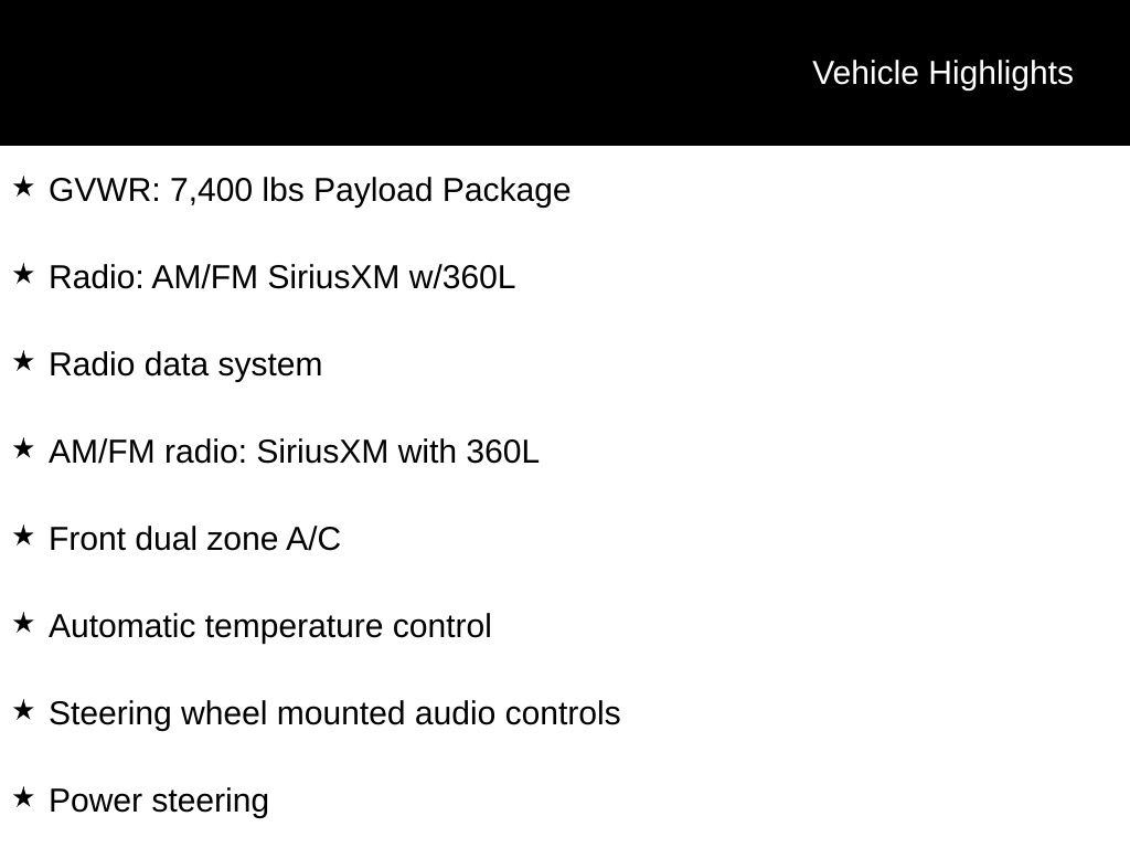 - 3.5L V6 Hybrid Twin Turbocharged (PowerBoost) (FULL-HYBRID) (Includes Pro Power Onboard 2.4KW and Removes 36 Gallon Fuel Tank, GVWR: 7,350 lbs Payload Package & Electronic Locking with 3.73 Axle Ratio) (*GROSS*)