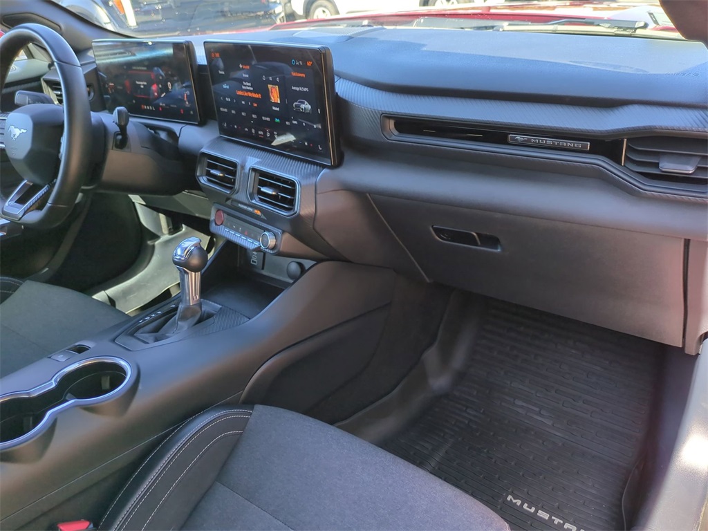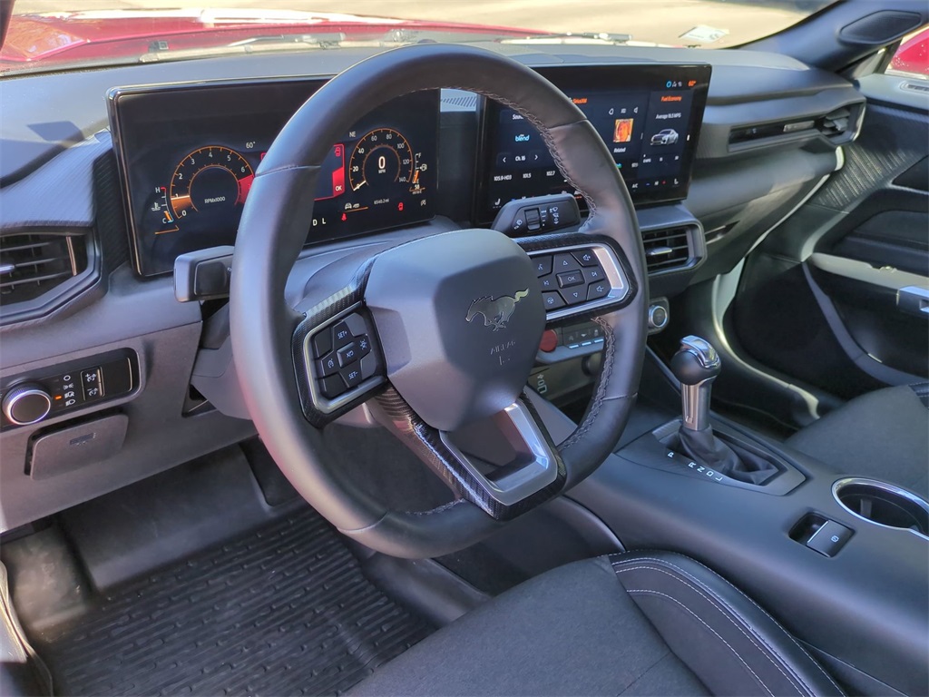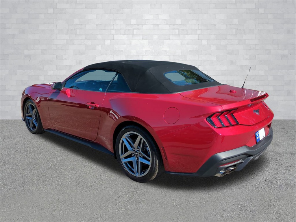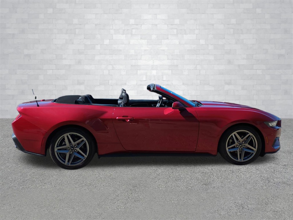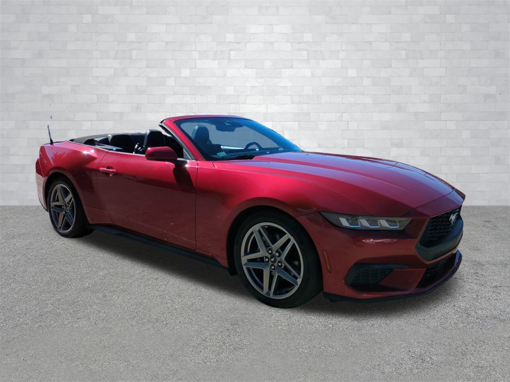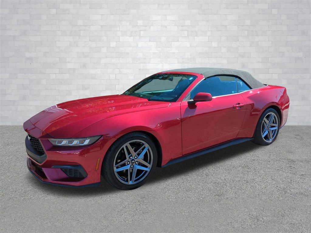 Rapid Red Metallic Tinted Clearcoat 2024 Ford Mustang EcoBoost Convertible RWD EcoBoost Convertible 12.4" LCD Digital Driver Cluster, 13.4" HD Color Touchscreen, 4G WiFi Hotspot Telematics, Active Valve Performance Exhaust, Auto LED Headlights, Backup Camera, Power Mirror Package, Power Package, Push Button Start, 2D Convertible, EcoBoost 2.3L I4 GTDi DOHC Turbocharged VCT, 10-Speed Automatic, RWD, 4-Wheel Disc Brakes, 9-Speaker Stereo System, ABS brakes, Active Valve Performance Exhaust, AM/FM radio: SiriusXM with 360L, Auto High-beam Headlights, Automatic temperature control, Brake assist, Compass, Convertible roof lining, Delay-off headlights, Dual-Zone Electronic Automatic Temperature Control, Electronic Stability Control, Emergency communication system: 911 Assist, Equipment Group 101A High Package, Exterior Parking Camera Rear, Four wheel independent suspension, Front Bucket Seats, Front Center Armrest, Front dual zone A/C, Fully automatic headlights, Glass rear window, Heated front seats, Illuminated entry, Leather Shift Knob, Low tire pressure warning, Outside temperature display, Overhead console, Panic alarm, Power door mirrors, Power driver seat, Power steering, Power windows, Premium Floor Liners Front & Rear, Radio data system, Rain sensing wipers, Rear Parking Sensors, Remote keyless entry, Security system, SiriusXM w/360L & HD Radio, Speed control, Speed-sensing steering, Speed-Sensitive Wipers, Sport steering wheel, Steering wheel mounted audio controls, SYNC 4.0 QNX, Telescoping steering wheel, Tilt steering wheel, Traction control, Trip computer, Wheels: 19" x 8.5" Premier Polished Aluminum.