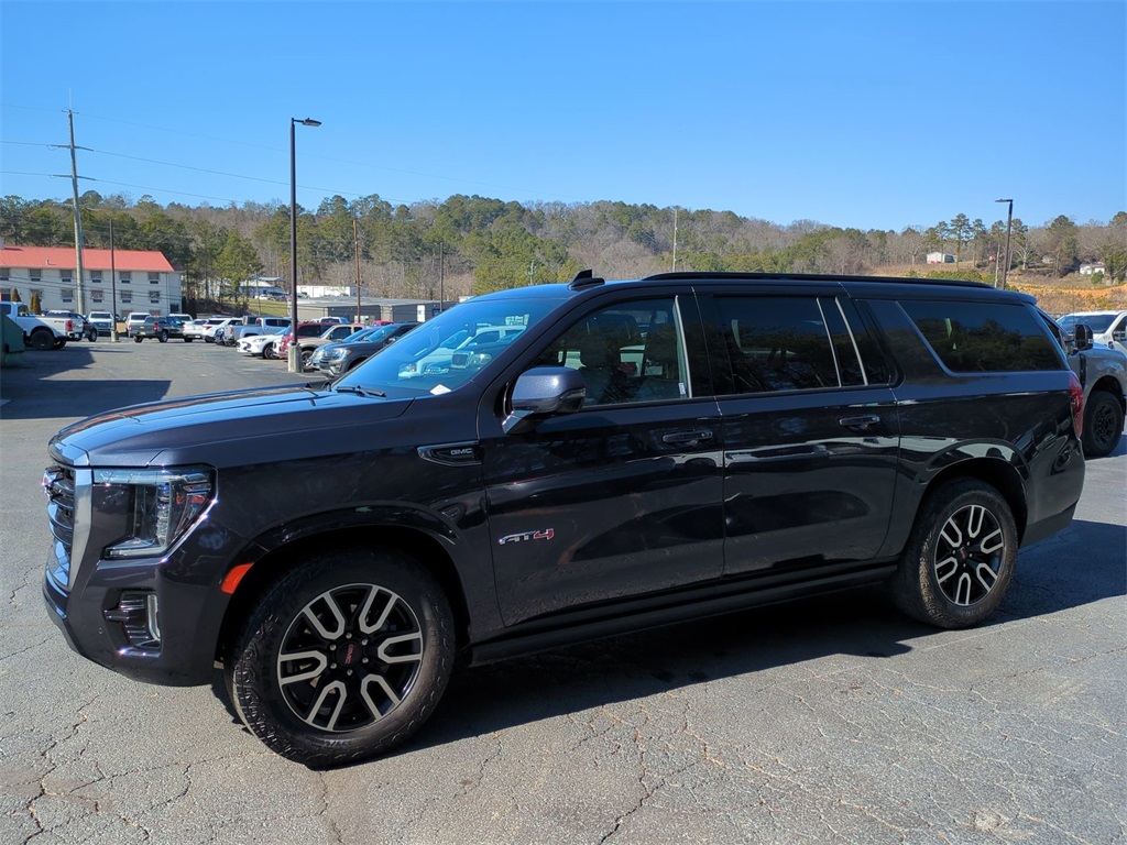 Titanium Rush Metallic 2024 GMC Yukon XL AT4 AWD 4WD AT4 AWD 10.25" Color Touchscreen, Adaptive Ride Package, Adaptive Suspension, Android Auto, Apple Carplay, Auto Emergency Braking, Auto LED Headlights, Backup Camera, Blind Spot Monitoring, Bluetooth w/ Audio Streaming, Bose High End Sound Package, Cold Weather Package, Following Distance Indicator, Foward Collison Alert, Front Pedestrian Braking, HD Surround Vision, Hill Descent Control, Hitch Guidance w/ Hitch View, Lane Departure Warning, Lane Keeping System, Leather Seats, LED Foglights, Memory Package, Off Road Package, Panoramic Sunroof/Moonroof, Parking Sensors, Power Mirror Package, Power Package, Power Running Boards, Preferred Equipment Package, Premium Audio Package, Premium Sound Package, Push Button Start, Rear Cross Traffic Alert, Remote Start, Reverse Brake Assist, Reverse Sensing, Safety Package, Skid Plate Package, Trailer Side Blind Zone Alert, 4D Sport Utility, EcoTec3 6.2L V8, 10-Speed Automatic with Overdrive, 4WD, 12-Way Power Seat Adjusters, 15" Diagonal Multi-Color Head-Up Display, 2 Presets For Outside Rearview Mirrors, 3rd Row 60/40 Power-Folding Split-Bench Seat, 4-Wheel Disc Brakes, 9 Speakers, ABS brakes, Adaptive suspension, Air Ride Adaptive Suspension, AM/FM radio: SiriusXM with 360L, Apple CarPlay/Android Auto, AT4 Premium Plus Package, Auto High-beam Headlights, Auto-dimming door mirrors, Auto-dimming Rear-View mirror, Auto-leveling suspension, Automatic Emergency Braking, Automatic temperature control, Black Roof-Mounted Luggage Rack Side Rails, Bose 9-Speaker Stereo Audio System Feature, Brake assist, Bright Front & Rear Door Sill Plates, Compass, Delay-off headlights, Dual-Pane Panoramic Power Sunroof, Electronic Limited Slip Differential (eLSD), Electronic Stability Control, Emergency communication system: OnStar and GMC connected services capable, Enhanced Trailering Technology Package, Extra Capacity Cooling System, Following Distance Indicator, Forward Collision Alert, Four wheel independent suspension, Front & Rear Park Assist, Front Center Armrest, Front dual zone A/C, Front fog lights, Front High-Approach Angle Fascia, Front Pedestrian Braking, Fully automatic headlights, Garage door transmitter, Hands-Free Power Programmable Rear Liftgate, HD Surround Vision, Heated 2nd Row Outboard Position Seats, Heated door mirrors, Heated Driver & Front Passenger Seats, Heated front seats, Heated Steering Wheel, Heated steering wheel, Heavy-Duty Air Filter, Hill Descent Control, Hitch View, Illuminated entry, Inside Rear-View Auto-Dimming Mirror, Integrated Trailer Brake Controller, IntelliBeam Automatic High Beam On/Off, Lane Change Alert w/Side Blind Zone Alert, Lane Keep Assist w/Lane Departure Warning, Low tire pressure warning, Magnetic Ride Control Suspension, Max Trailering Package, Memory seat, Navigation System, Outside Heated Power-Adjustable Mirrors, Outside temperature display, Overhead console, Panic alarm, Perforated Heated & Ventilated Dr & Frt Pass Seats, Perforated Leather Seating Surfaces, Power door mirrors, Power driver seat, Power Liftgate, Power Release 2nd Row 60/40 Split-Folding Bench Seat, Power Release 2nd Row Bucket Seats, Power steering, Power Tilt & Telescopic Steering Column, Power windows, Power-Retractable Assist Steps, Preferred Equipment Group 4SB, Premium Capability Package w/Active Response 4WD, Rain sensing wipers, Rear air conditioning, Rear Pedestrian Alert, Rear seat center armrest, Rear window wiper, Red Horizontal-Mounted Recovery Hooks, Remote keyless entry, Safety Alert Seat, Security system, SiriusXM w/360L, Smart Trailer Integration Indicator, Speed-sensing steering, Split folding rear seat, Spoiler, Steering wheel memory, Steering wheel mounted audio controls, Technology Package, Telescoping steering wheel, Tilt steering wh