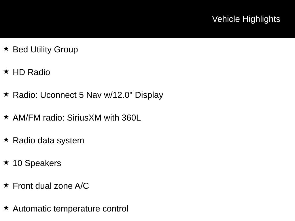- Radio: Uconnect 5 Nav w/12.0" Display