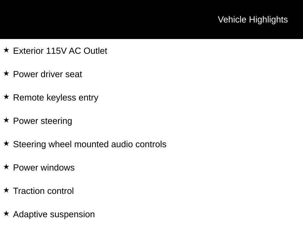 - Wheels: 18" x 9" Black Paint/Polish Aluminum
